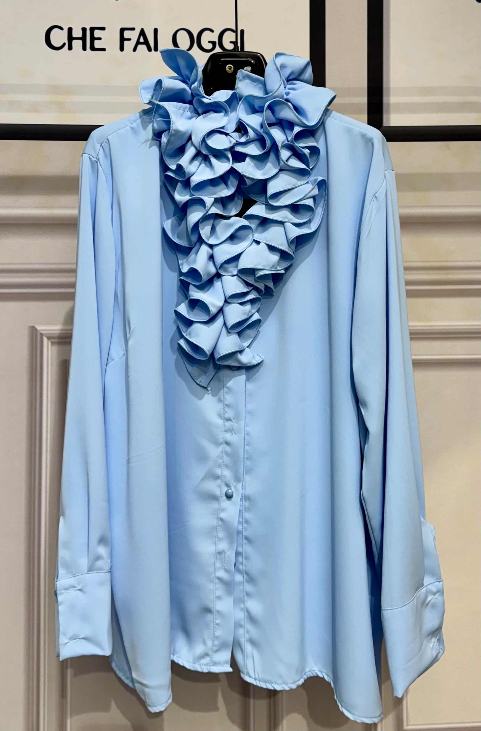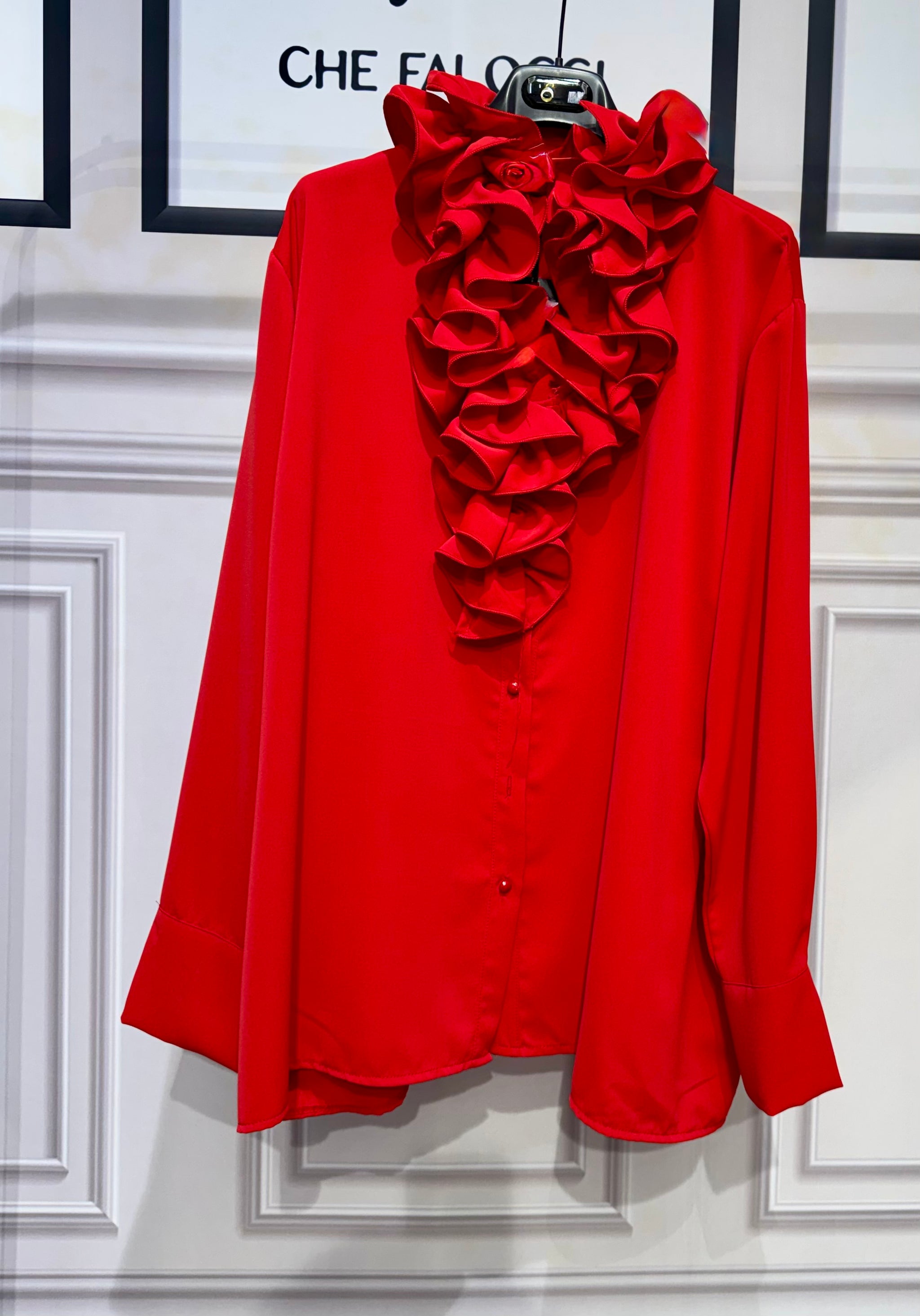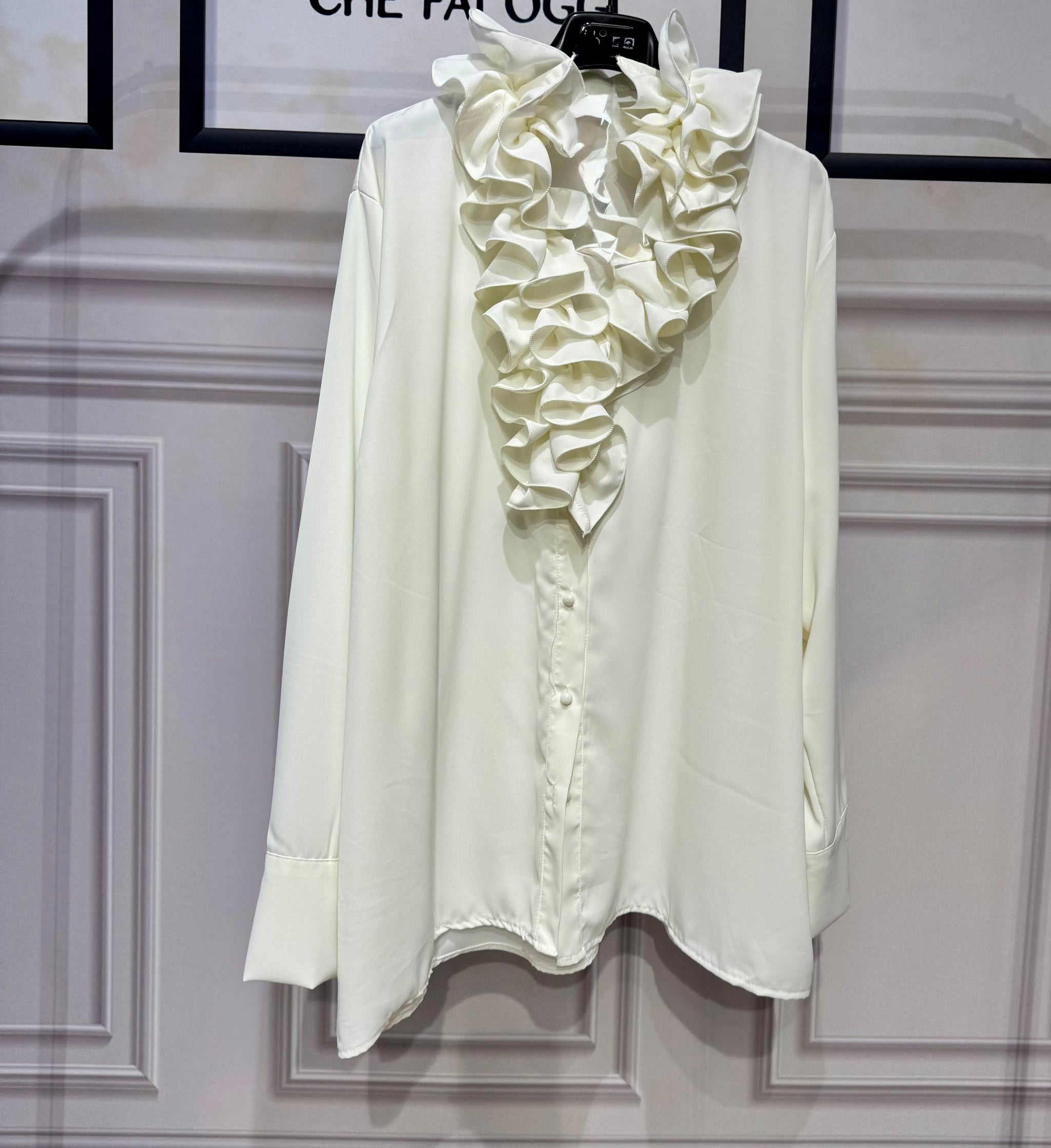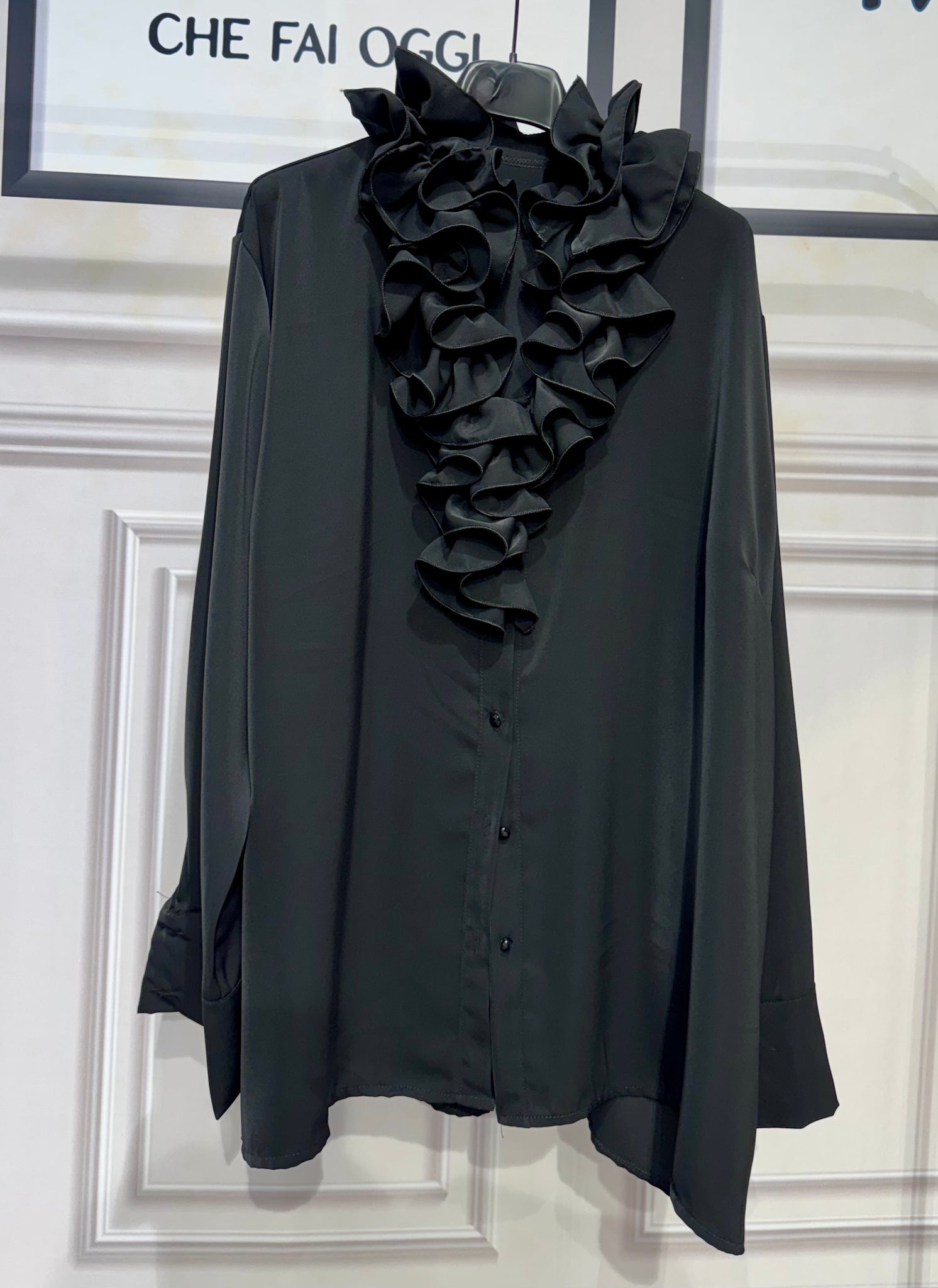 Camicia realizzata in tessuto morbido e scivoloso, piacevole al tatto e dalla vestibilità fluida. Il collo boccoloso dona movimento e un’eleganza naturale al capo, valorizzando il décolleté con un effetto raffinato e femminile. Una camicia versatile e confortevole, ideale per creare look curati sia per il giorno che per la sera. Vestibilità 144cm di giroseno