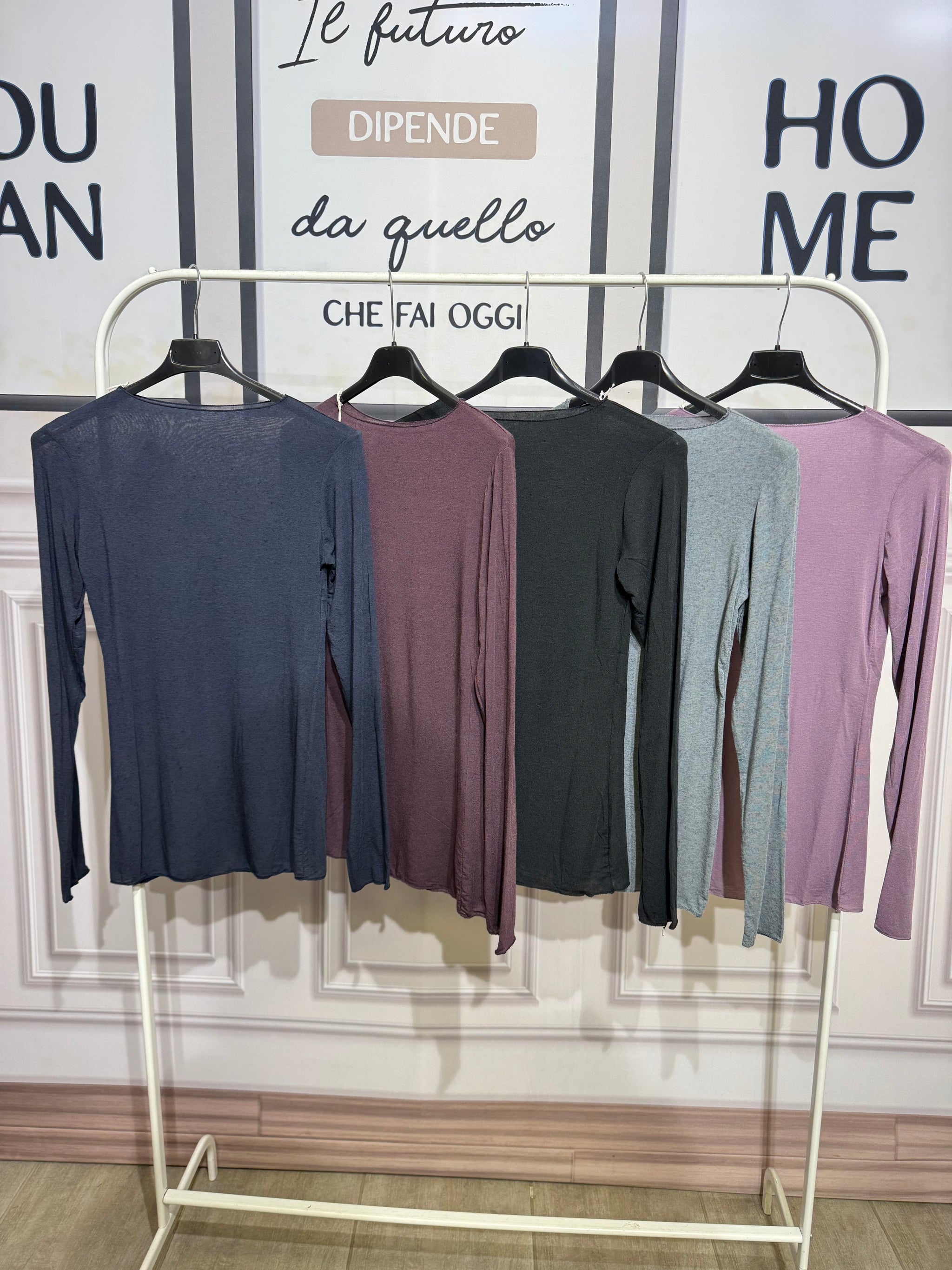 Maglia manica lunga morbida ed elasticizzata, girocollo
