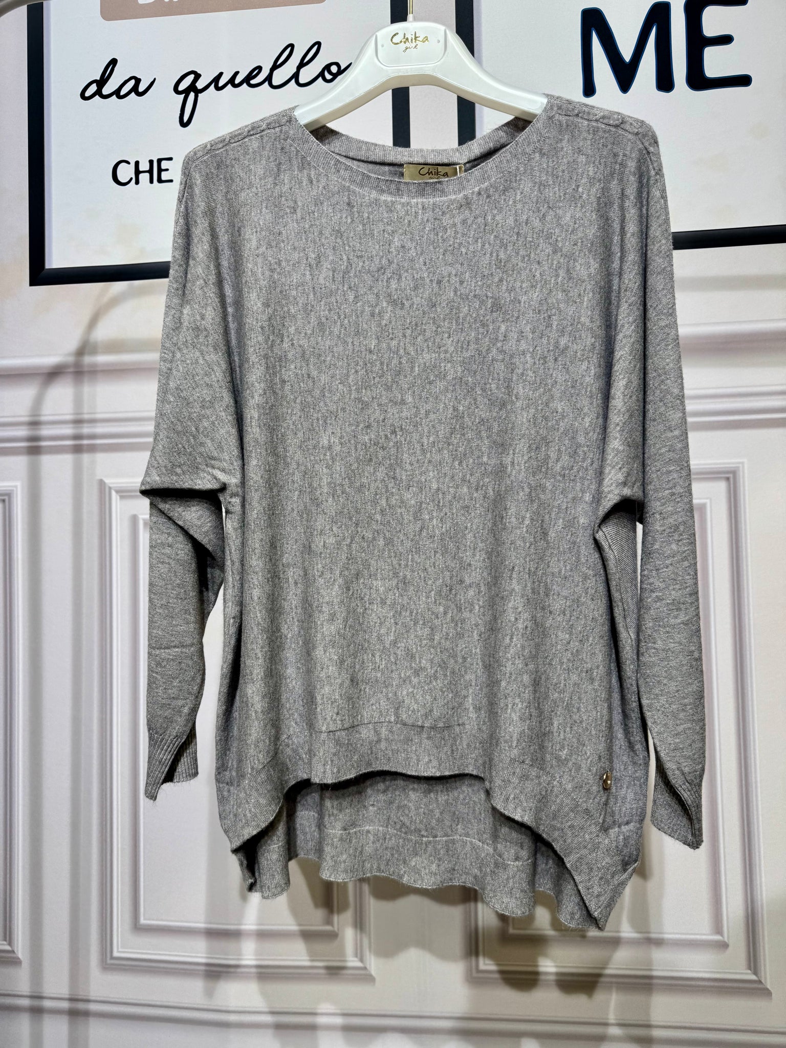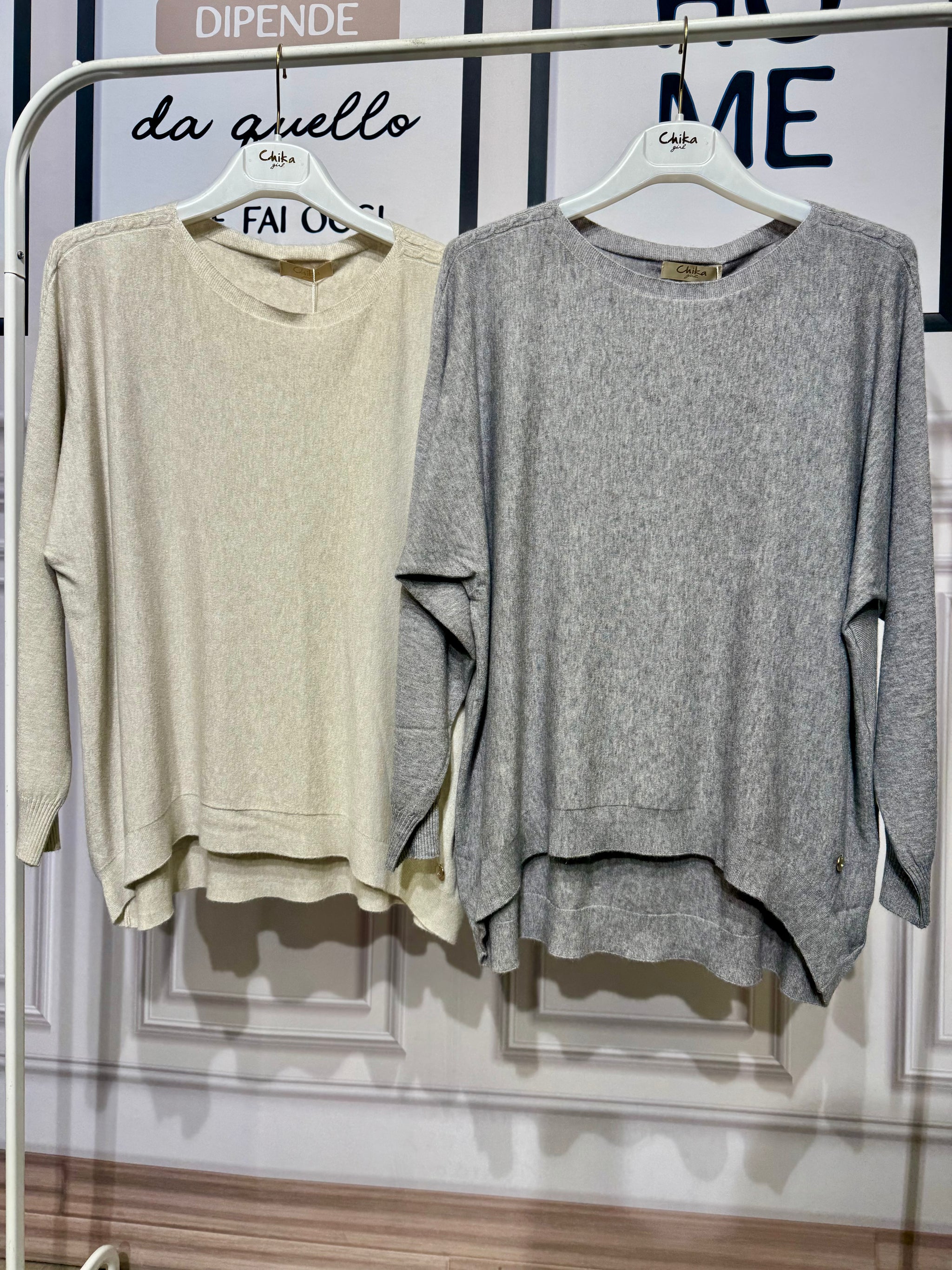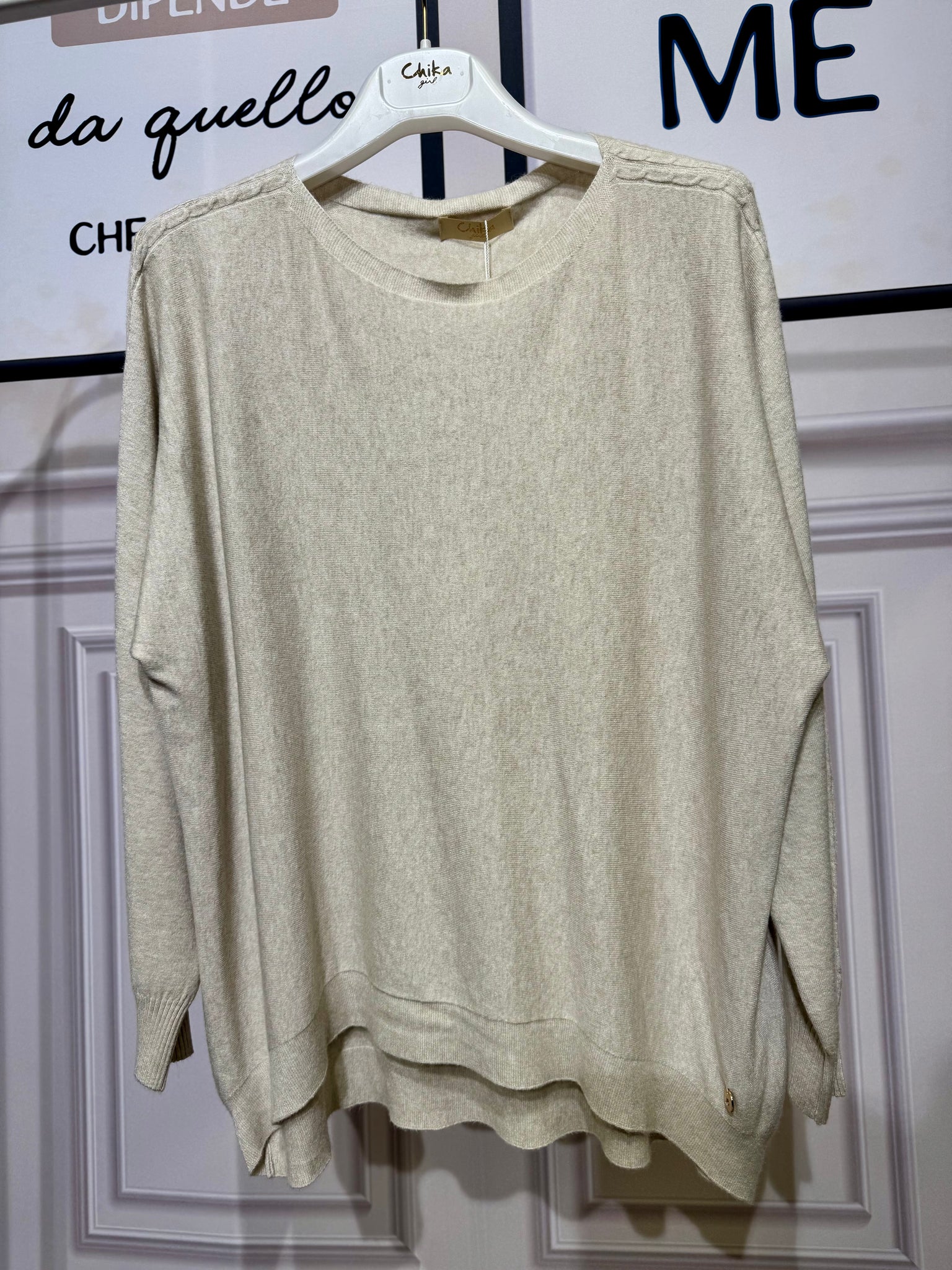 Maglioncino in lana morbida, elasticizzato con trama treccia sulle spalle