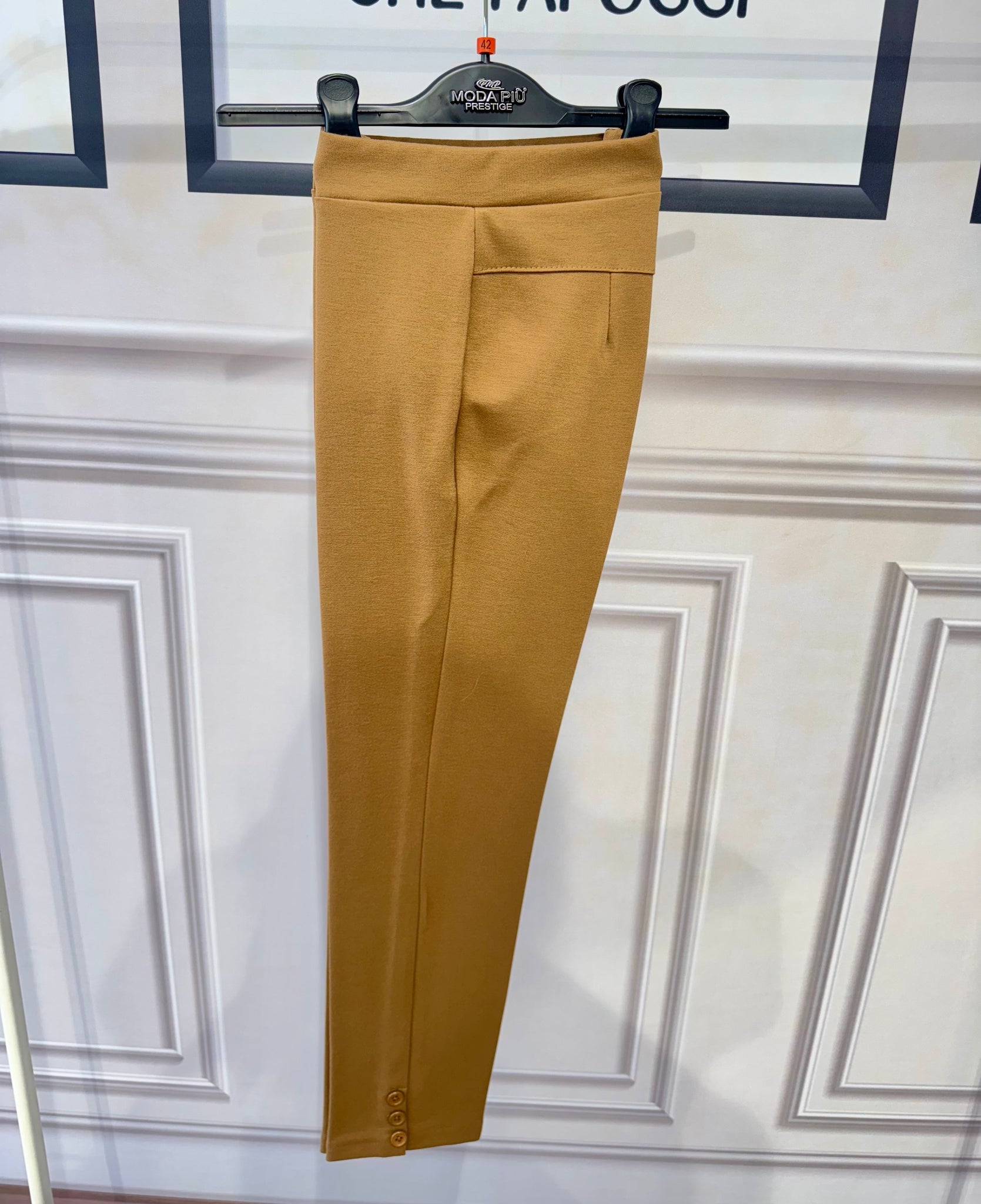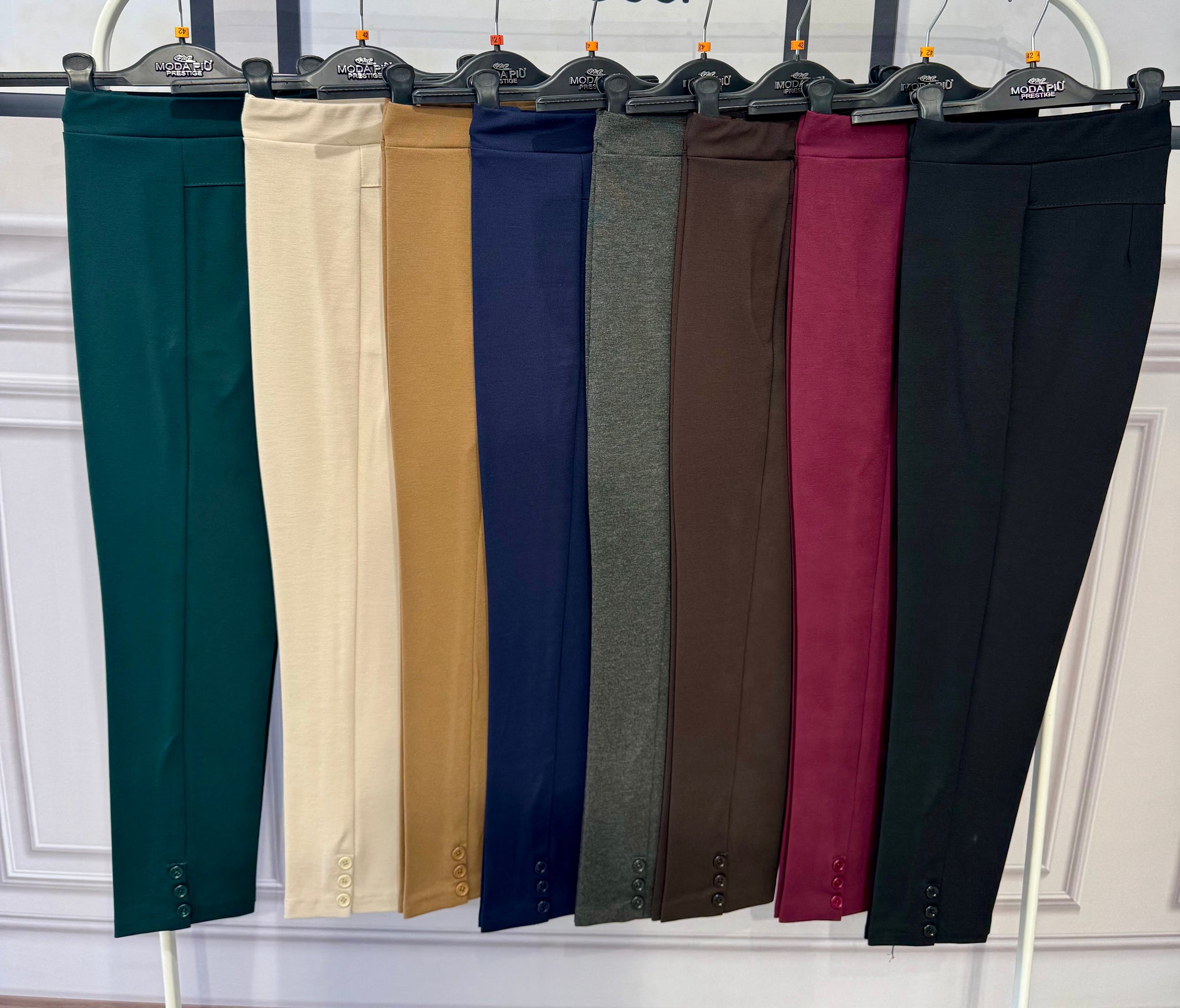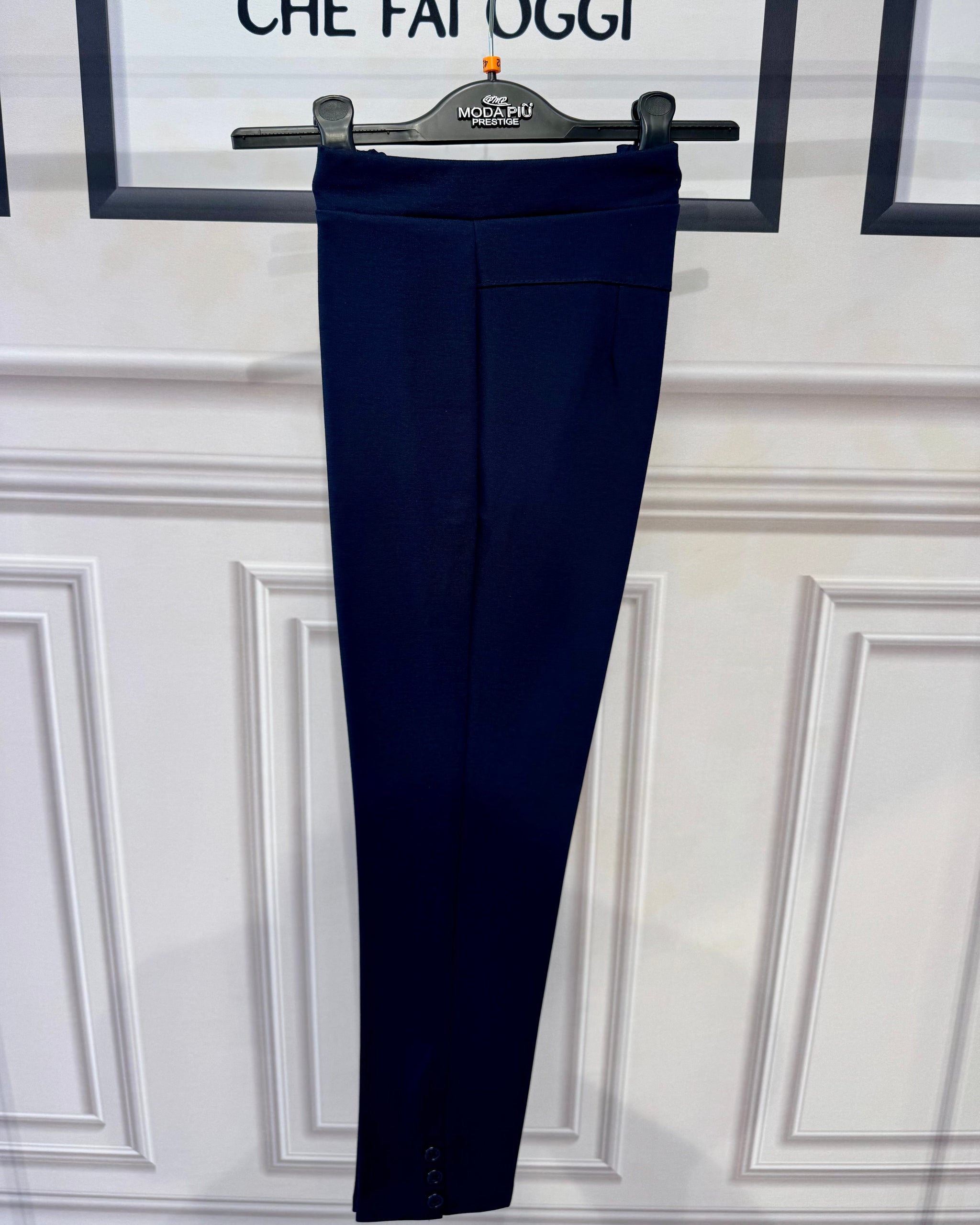 Pantaloni elasticizzati con elastico in vita e dettaglio bottoncini in punto milano