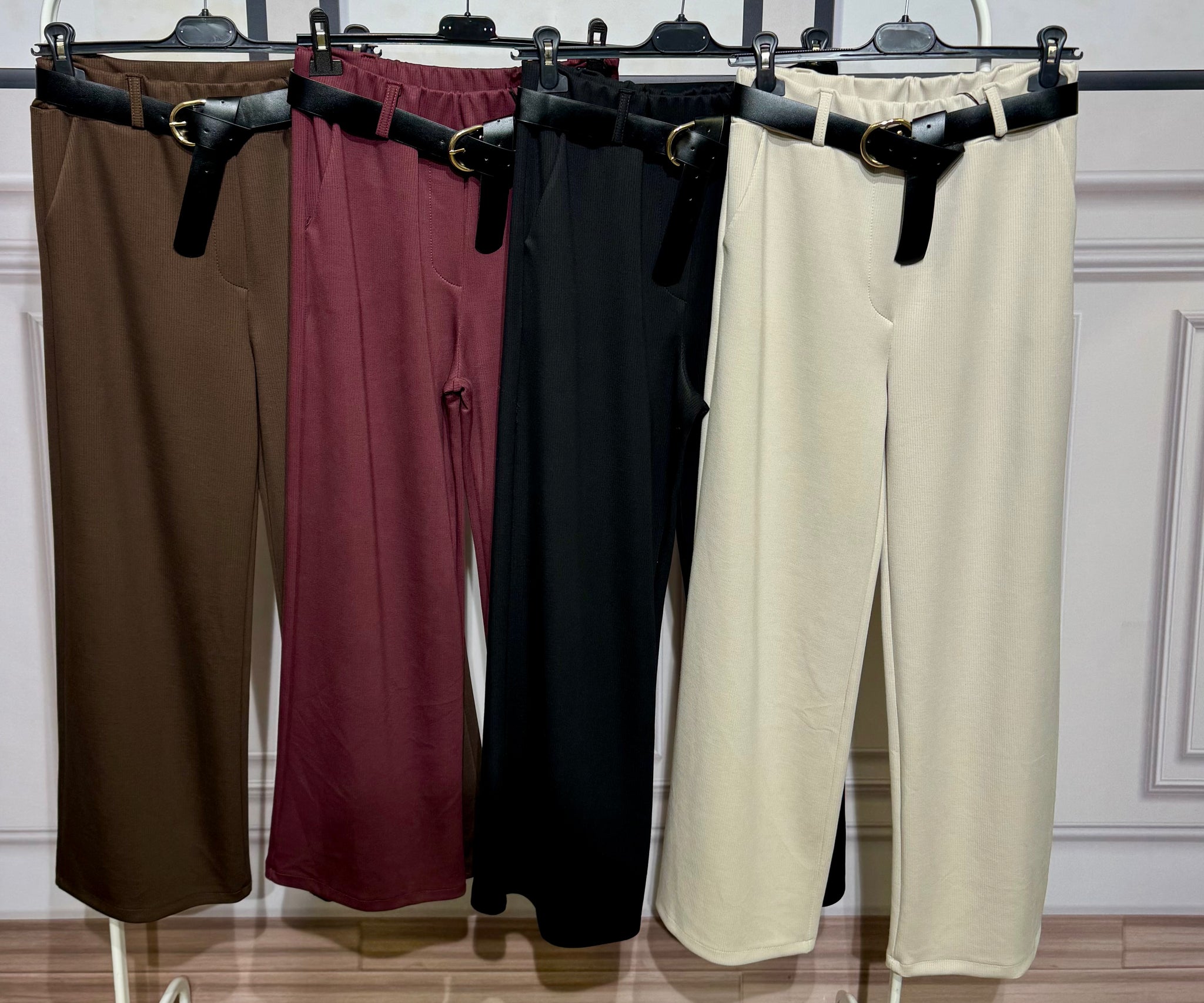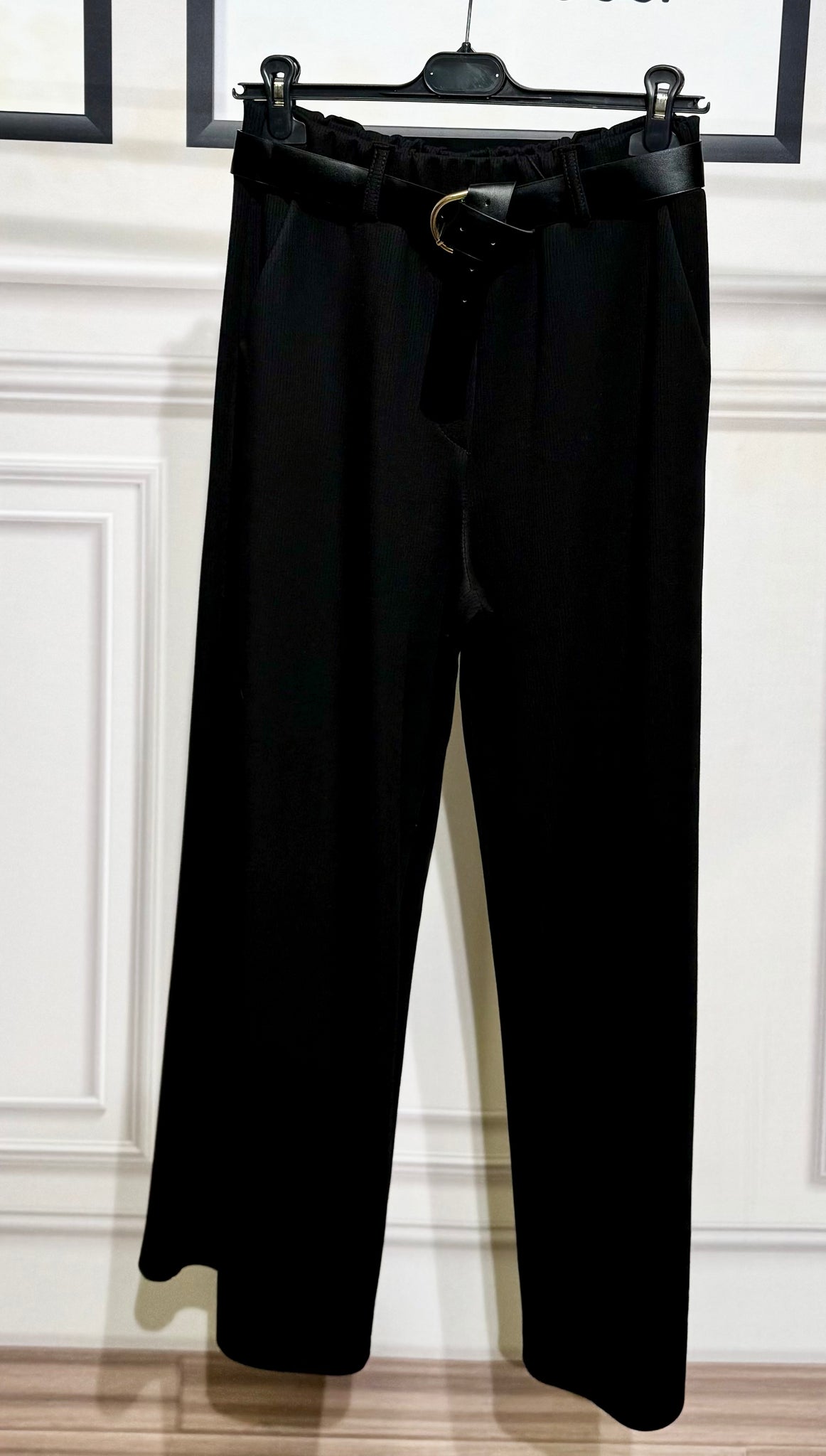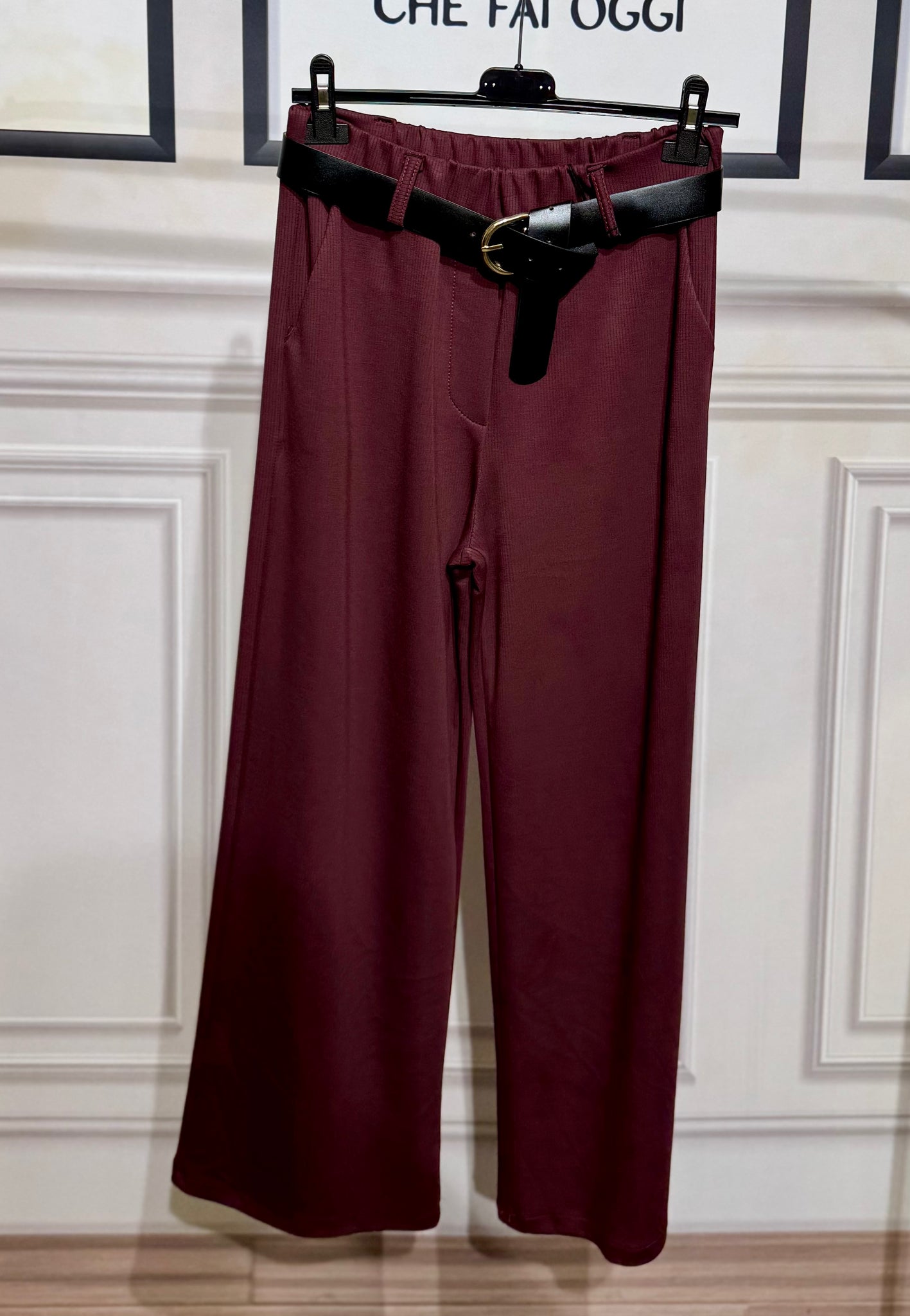 Pantaloni palazzo elastico in vita con cintura e tasche