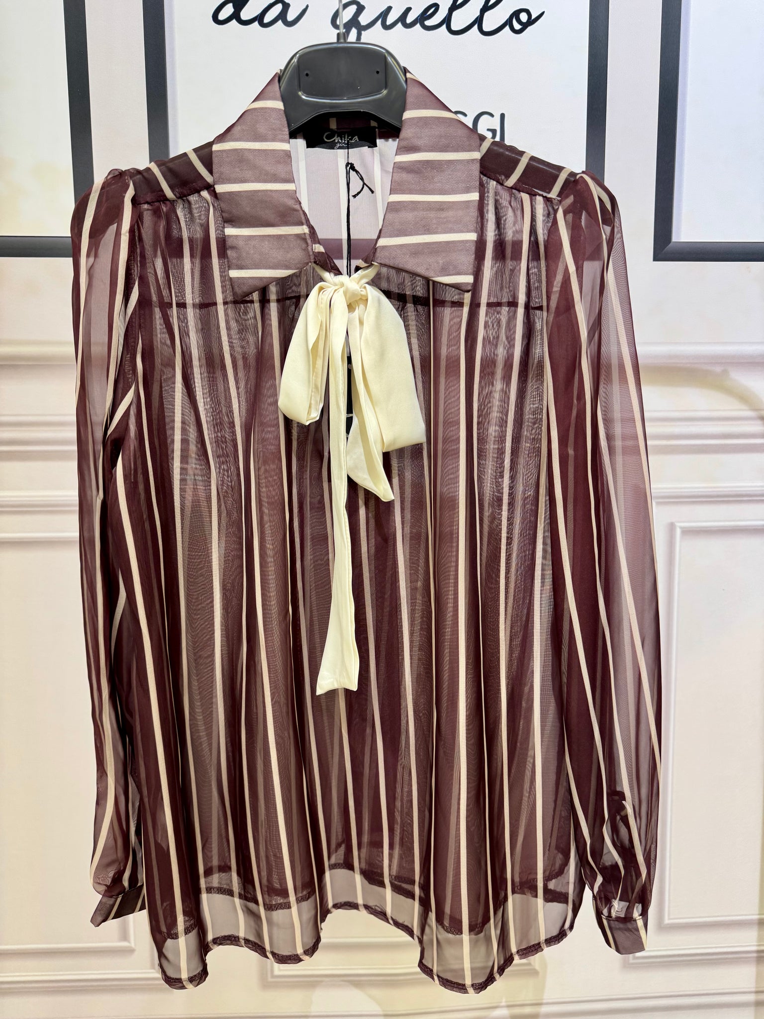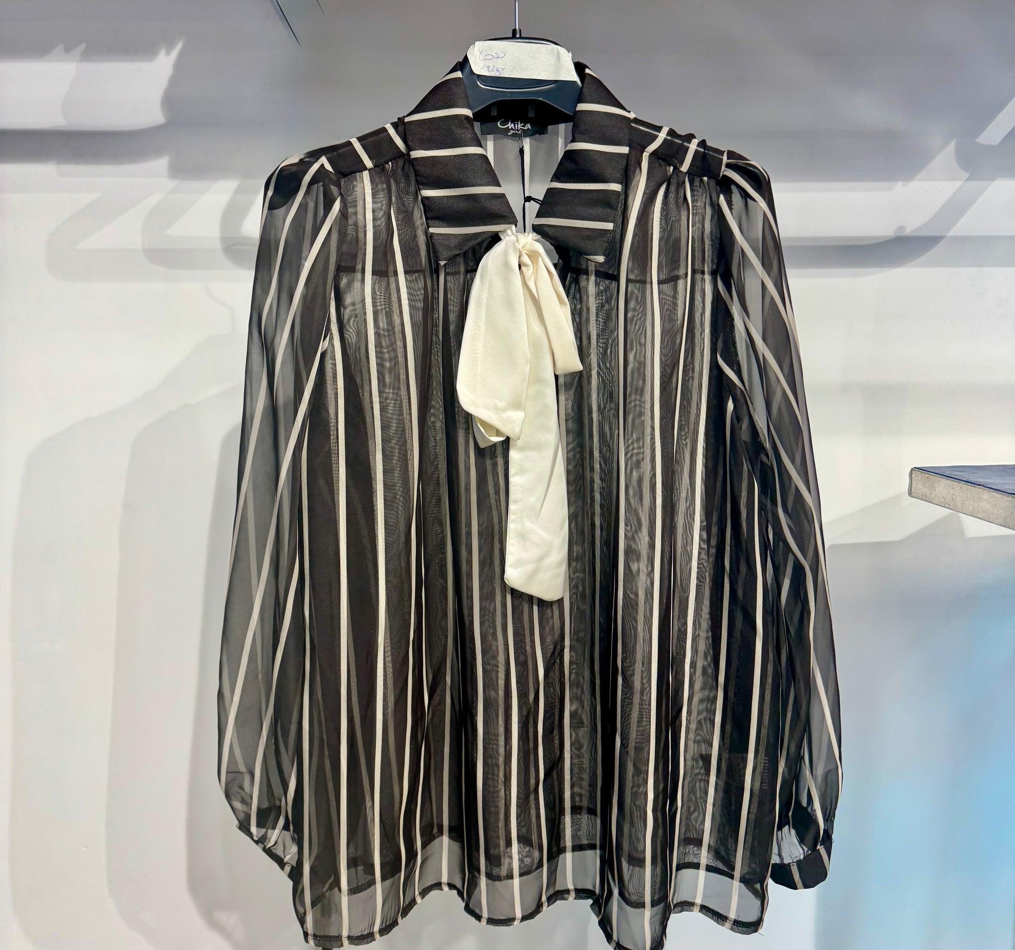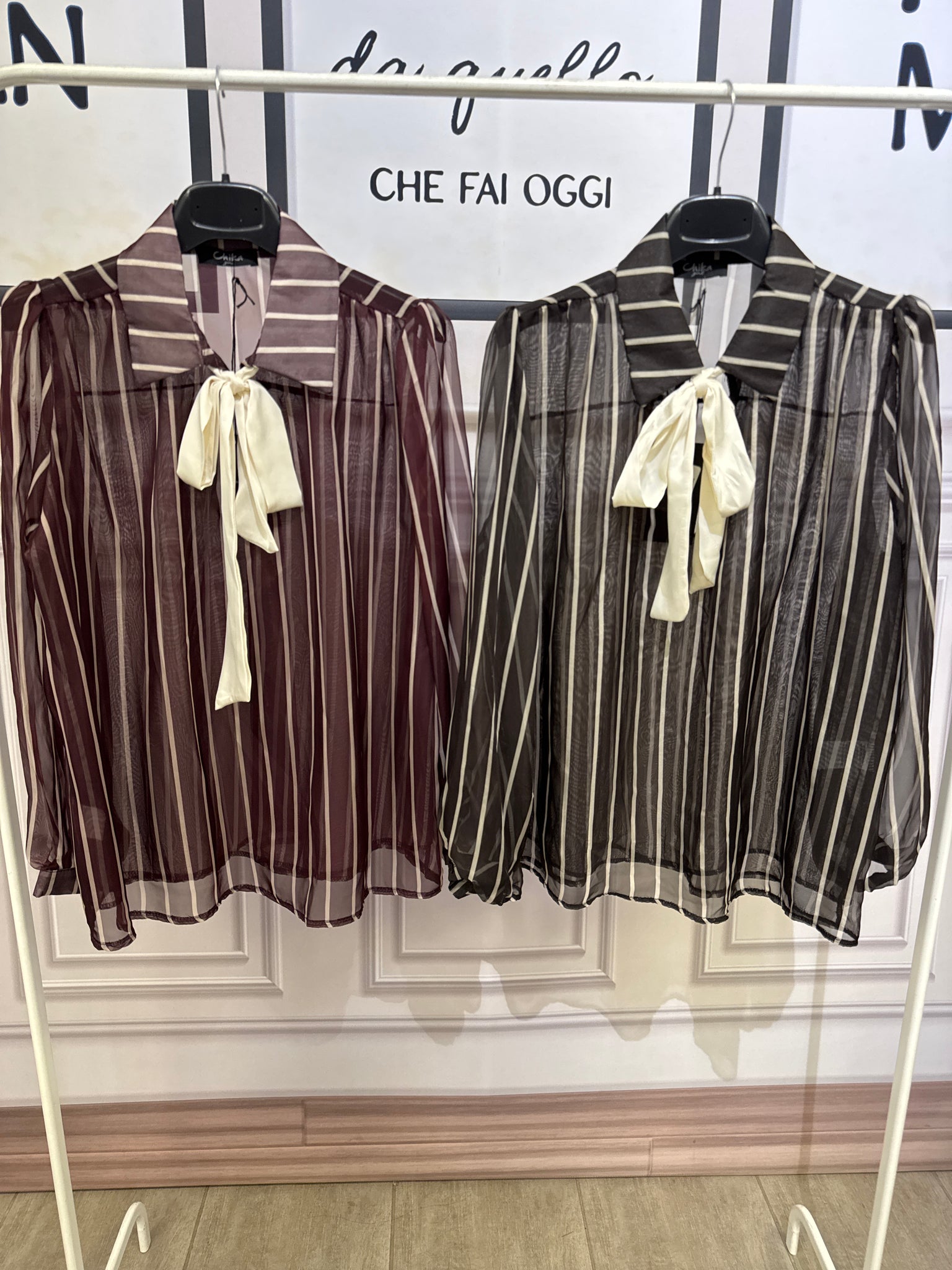 Casacca effetto vedo non vedo a righe con fiocco al collo