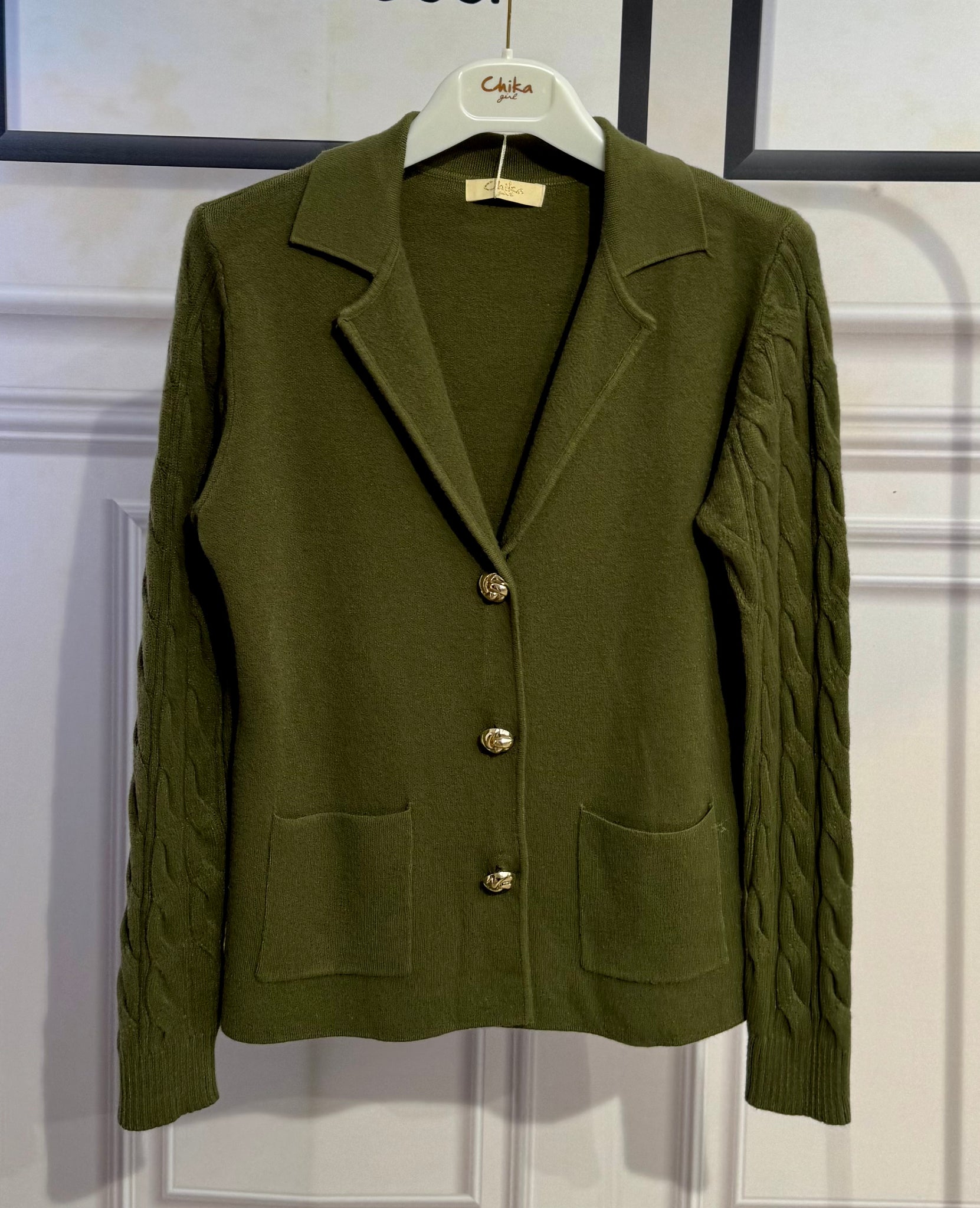 Giacca in lana con bottoni gioiello, tasche e manica con dettaglio intrecciato a rilievo