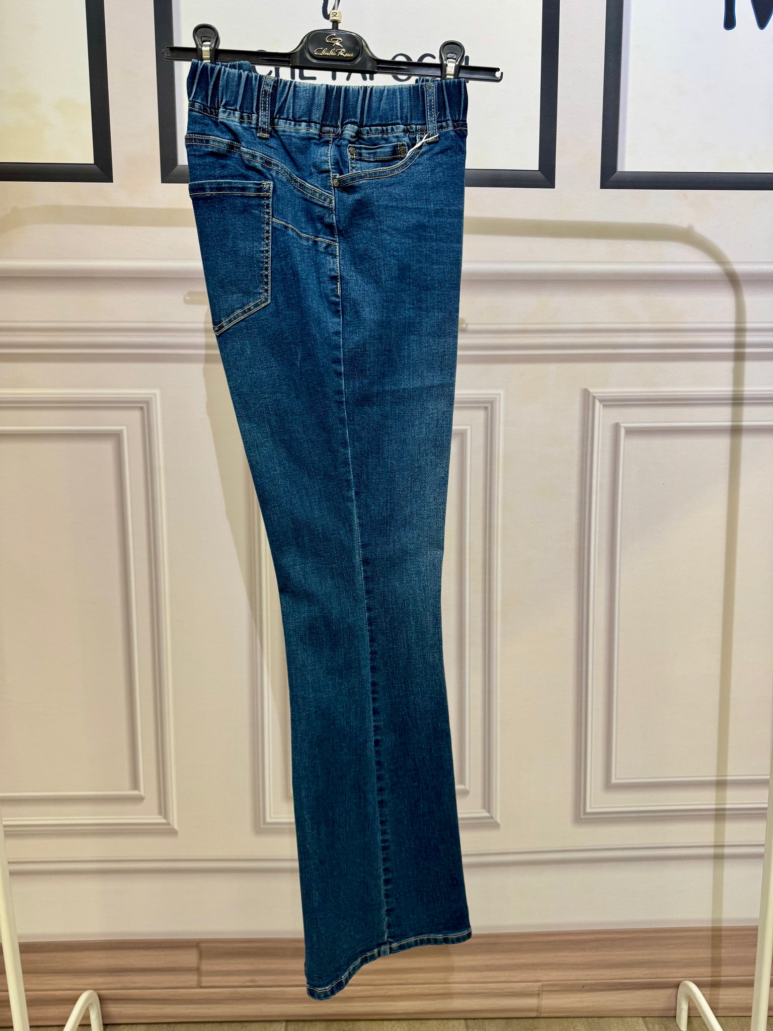 Jeans lavaggio scuro elasticizzato con molla in vita