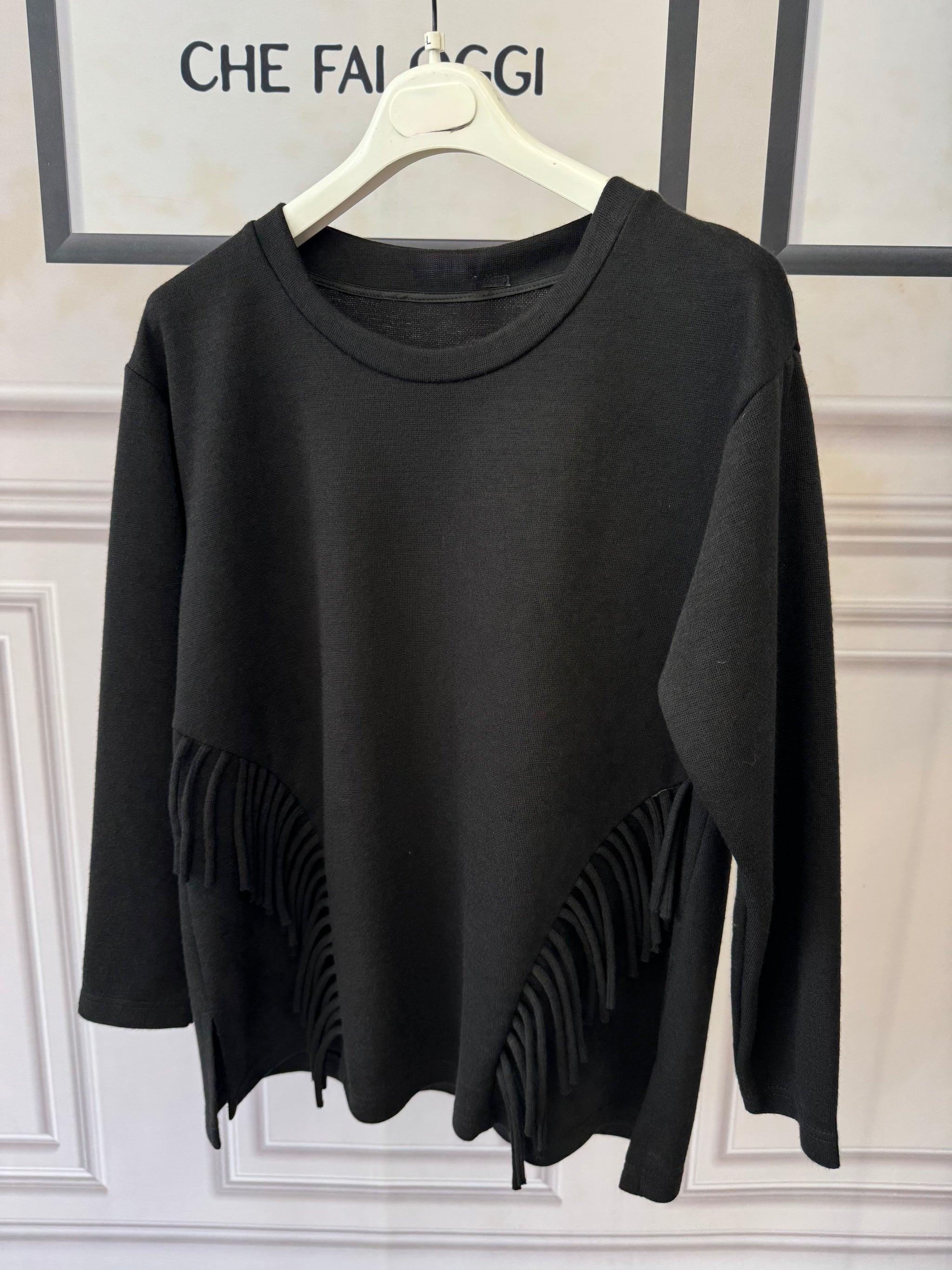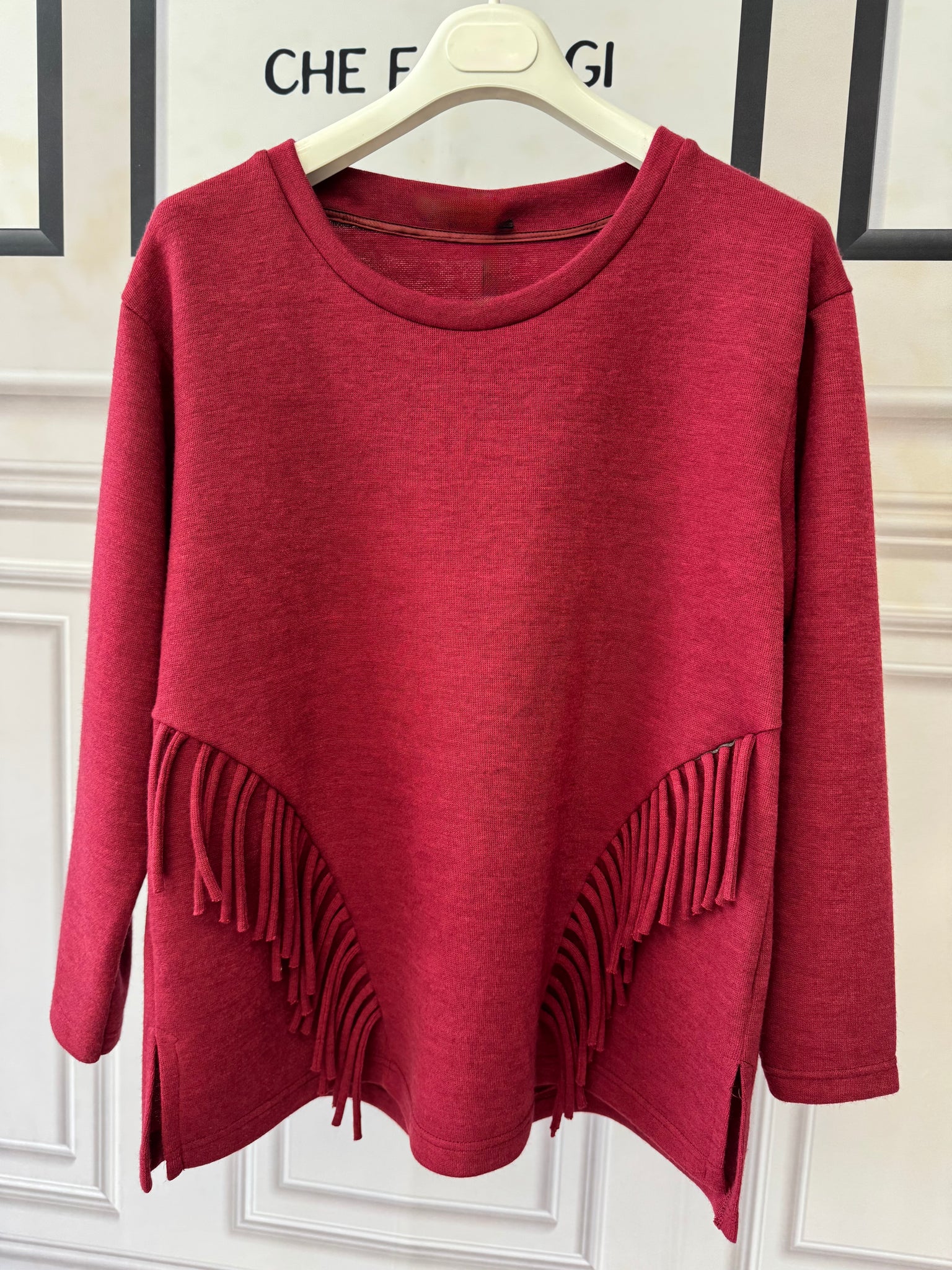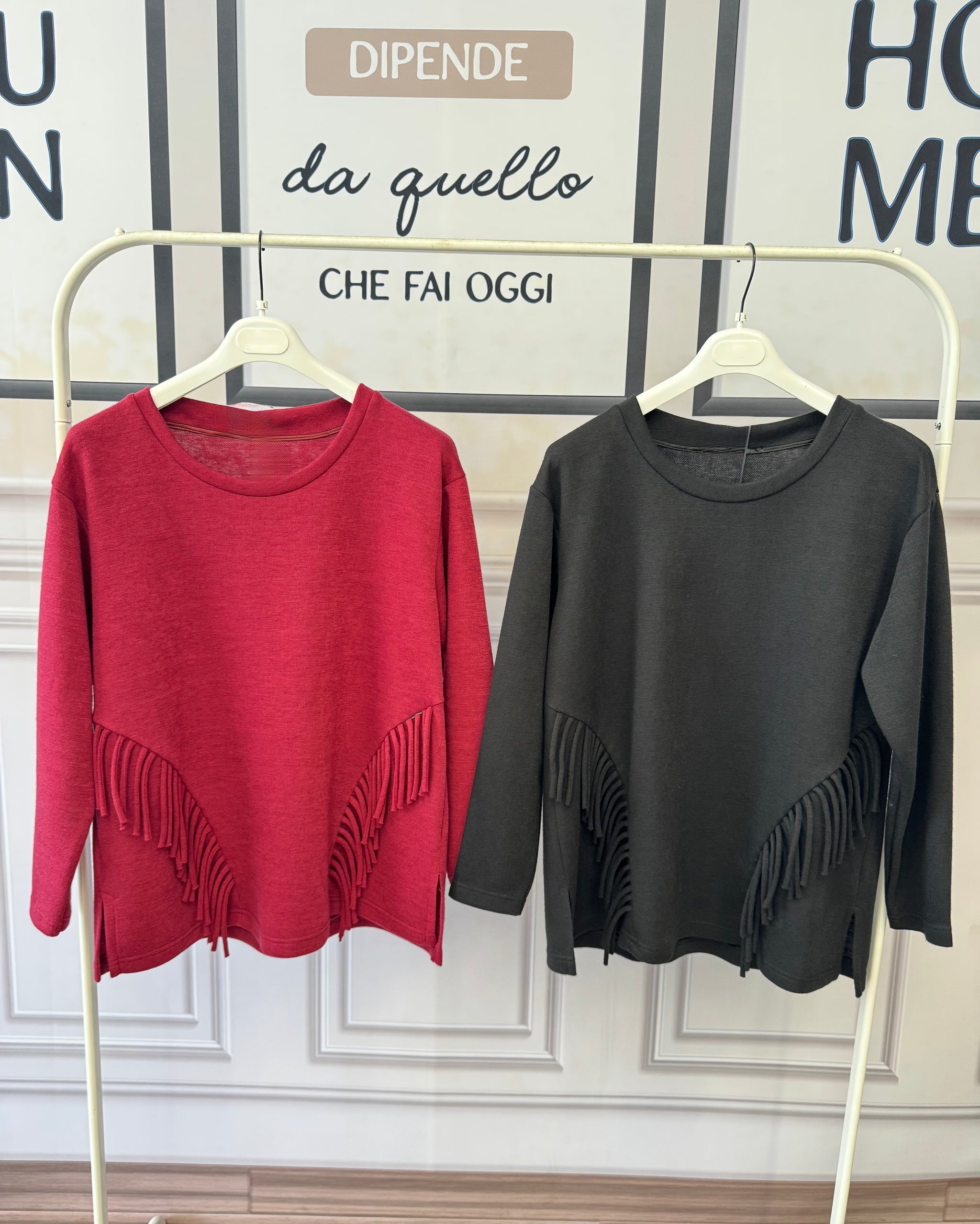 Maglia in lana con righe trasversali con frange, tessuto elasticizzato, dalla L alla 2XL