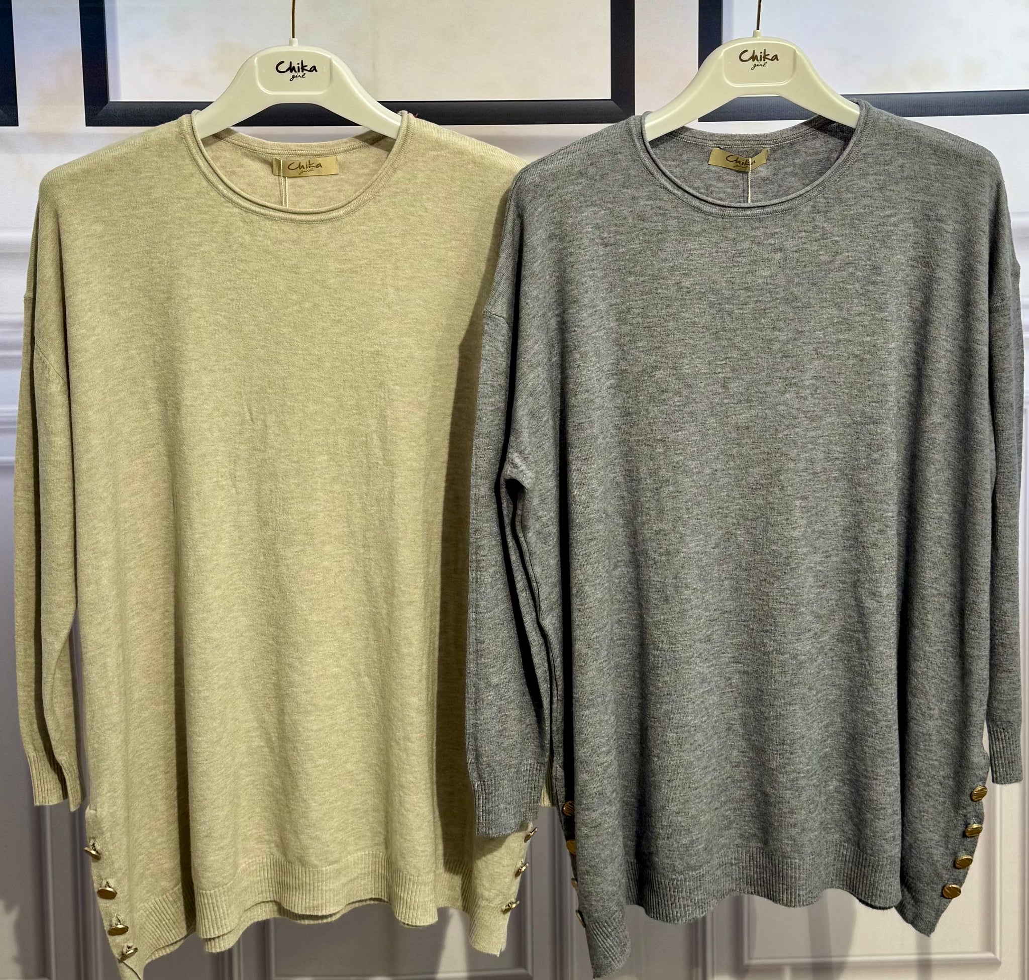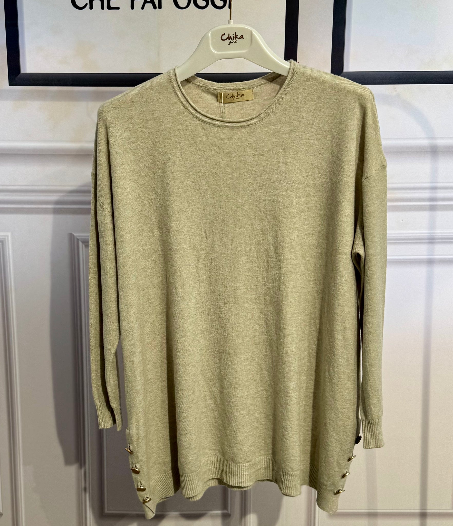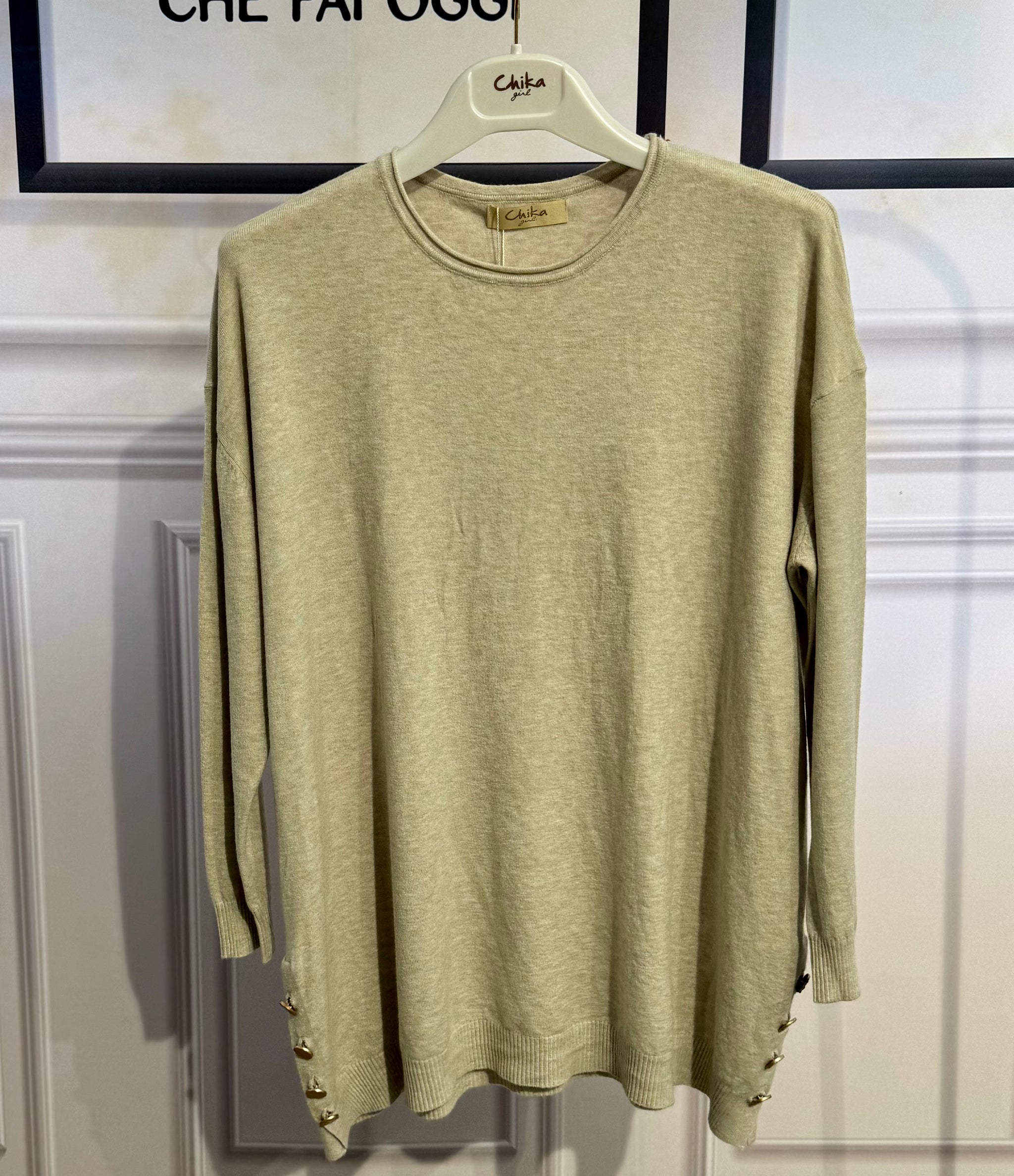 Maglia oversize in lana con bottoncini gioiello sul lato