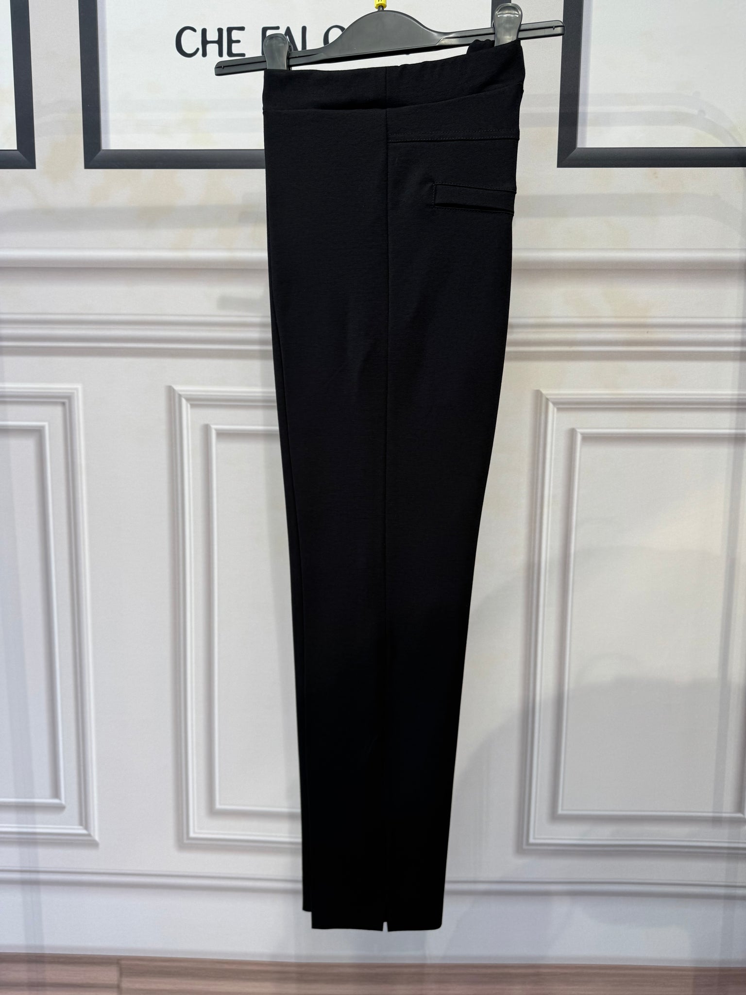 Pantaloni cosciasecca in punto milano, tessuto elasticizzato