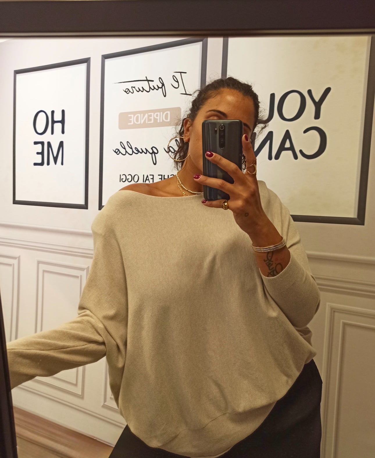 Poncho in tessuto elasticizzato con manica scesa e scollo morbido