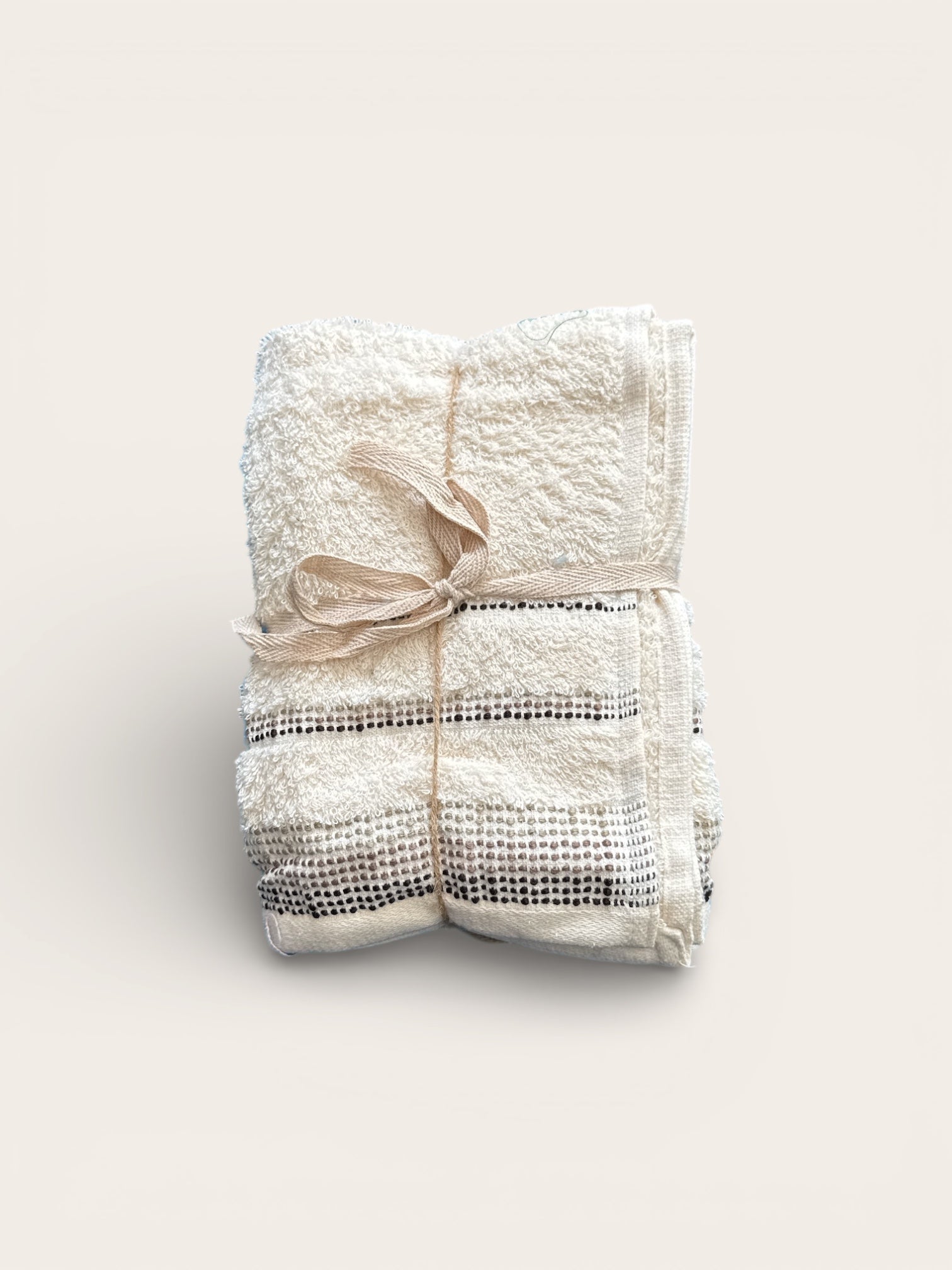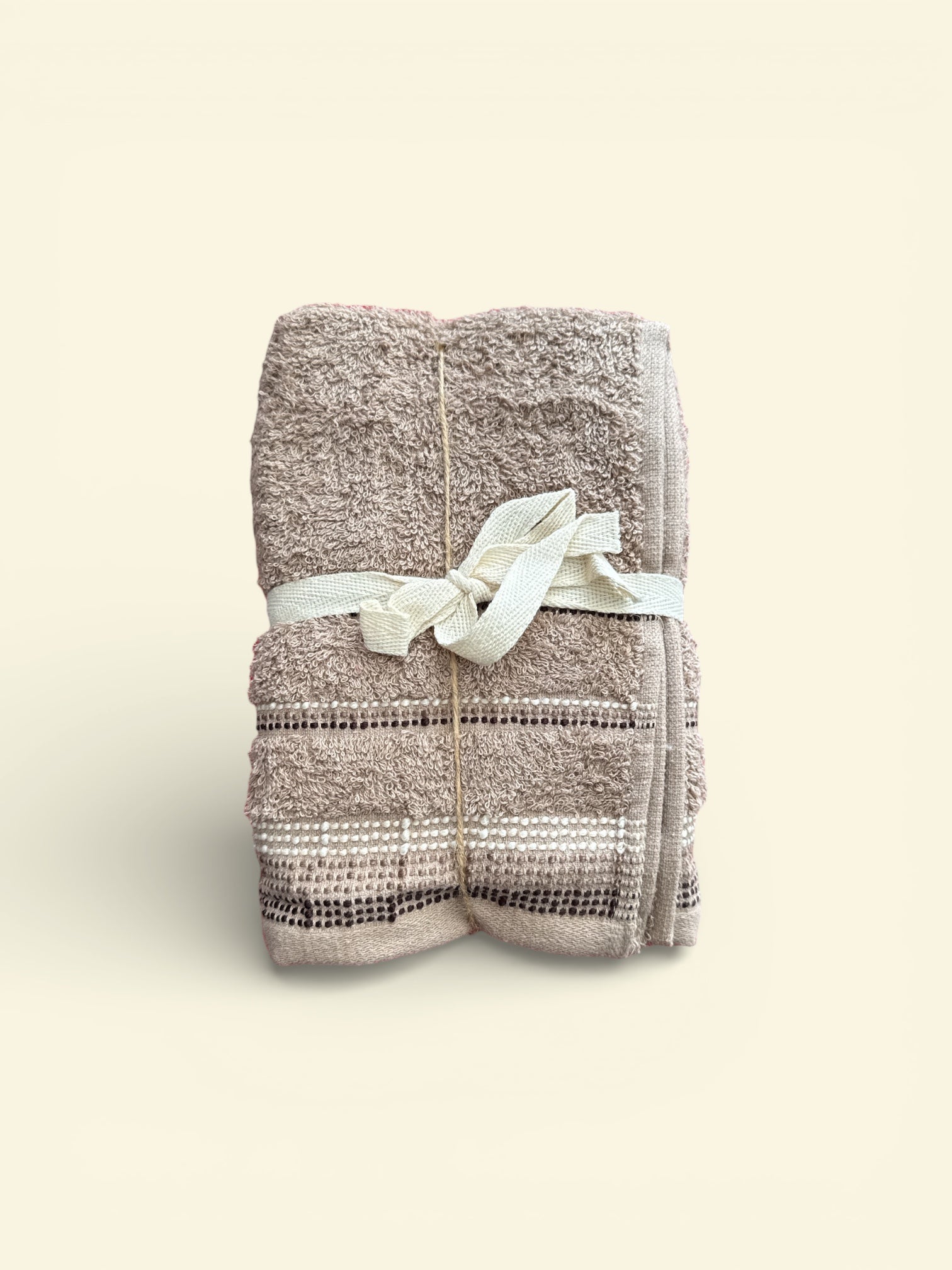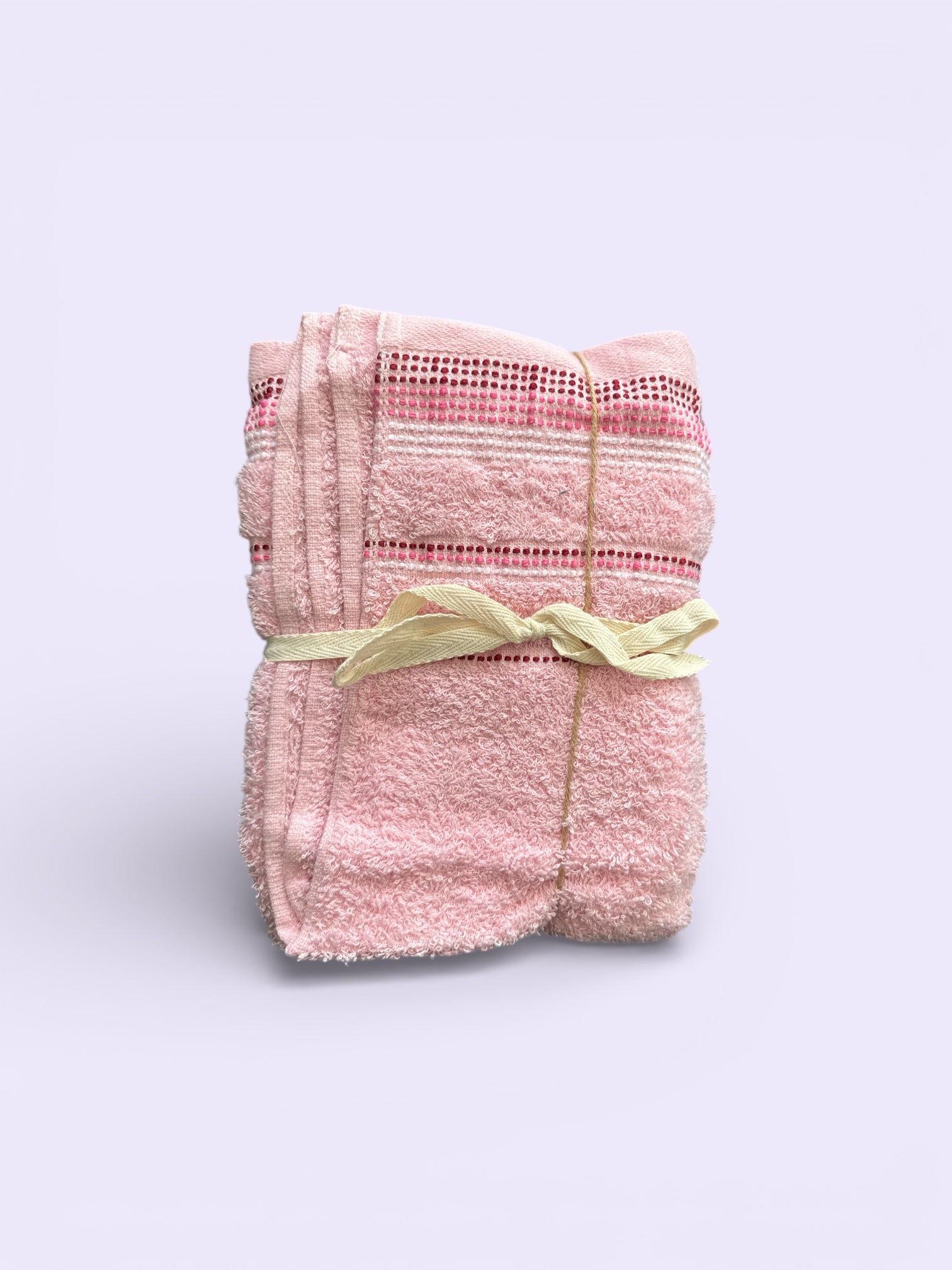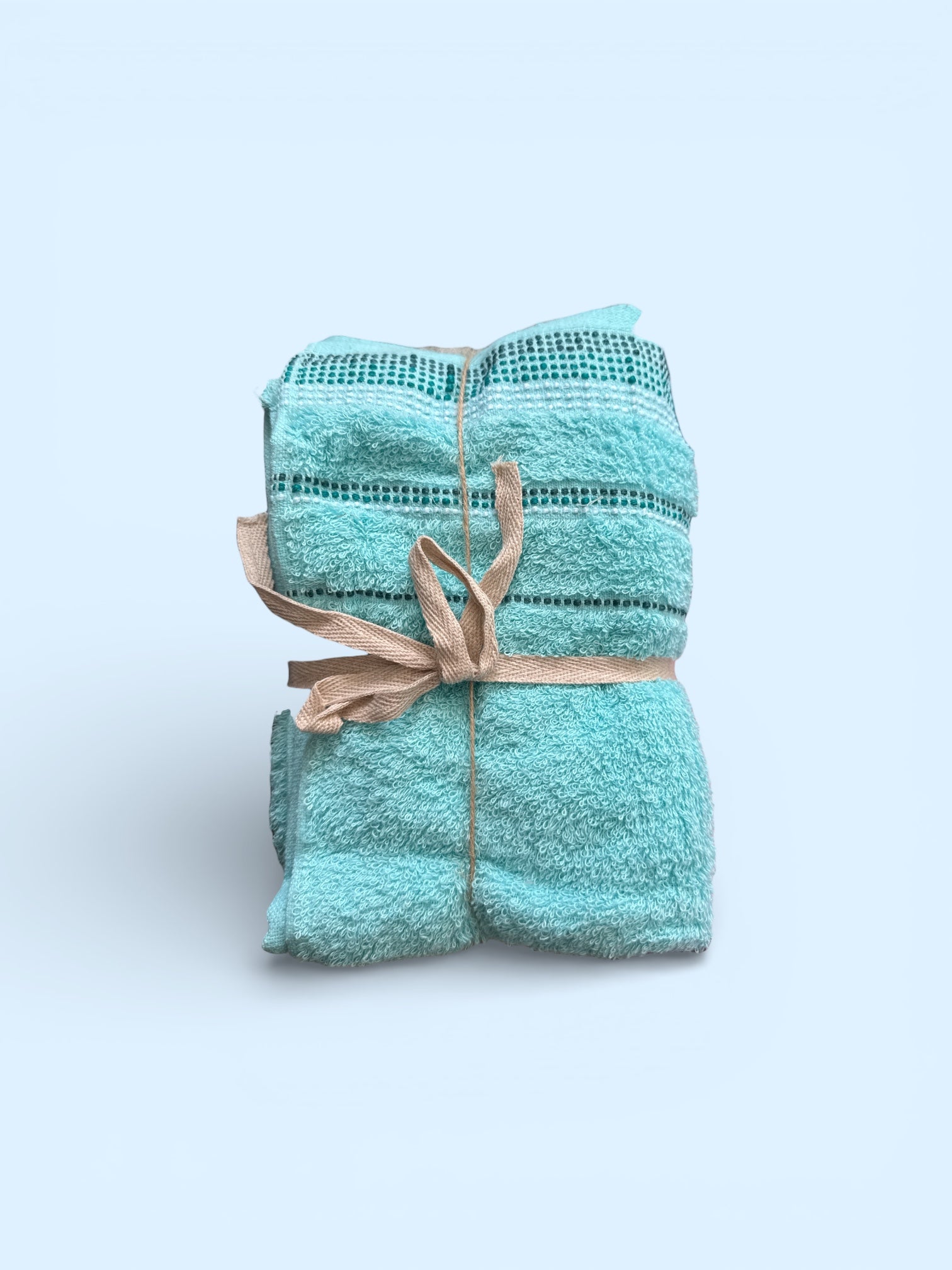 Coppia di asciugamani in morbida spugna, piacevole al tatto e altamente assorbente. Il design è impreziosito da righe di ricami colorati che donano un tocco elegante e vivace, valorizzando il set con stile e personalità. Ideali per l’uso quotidiano, uniscono comfort, qualità e cura dei dettagli, adattandosi facilmente a diversi stili di bagno.