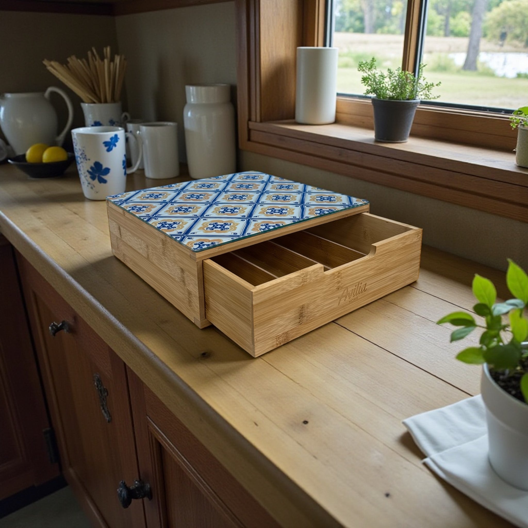 Porta capsule in bambù pratico ed elegante, ideale per organizzare le capsule di caffè mantenendo ordine e stile in cucina. Design naturale e compatto.