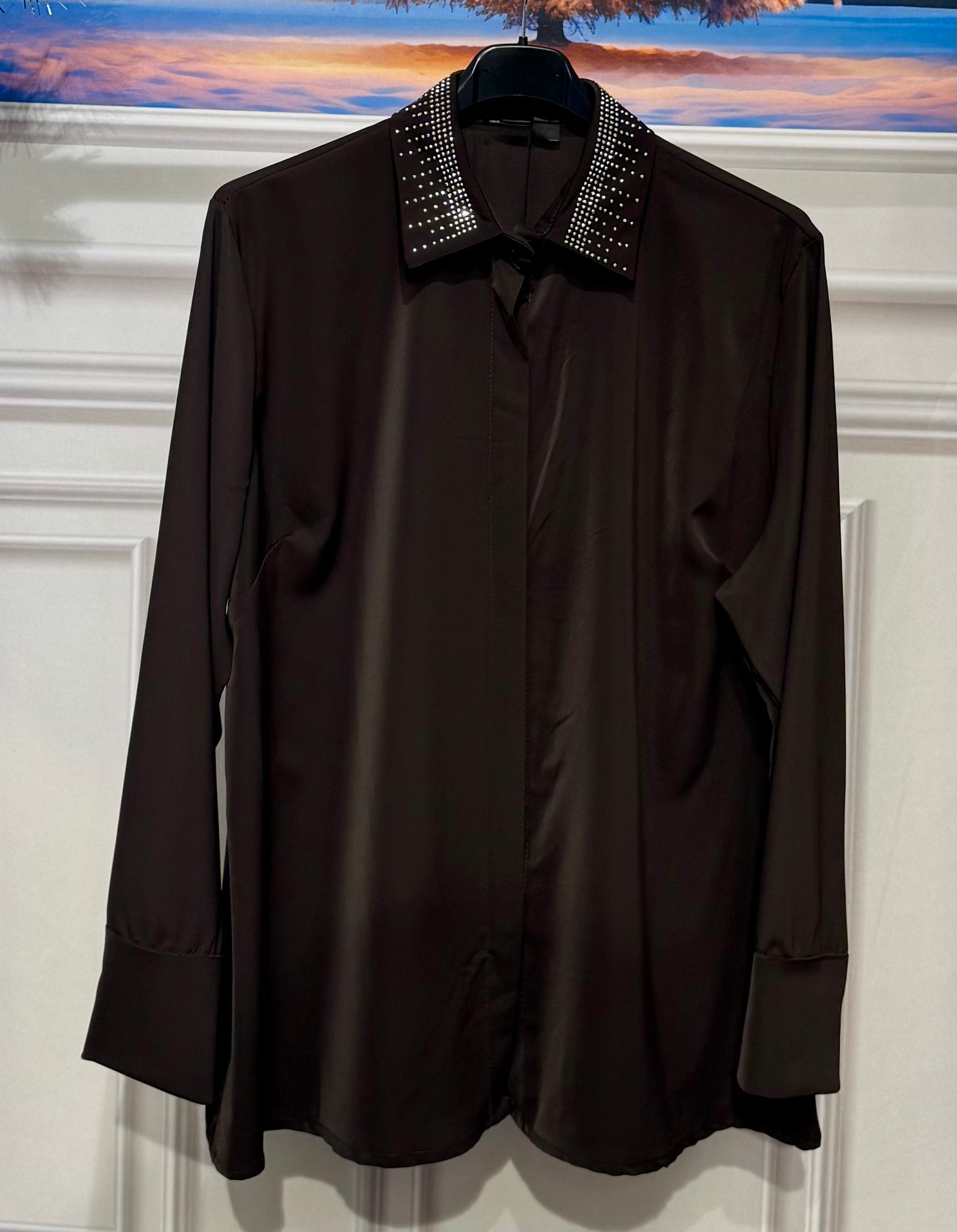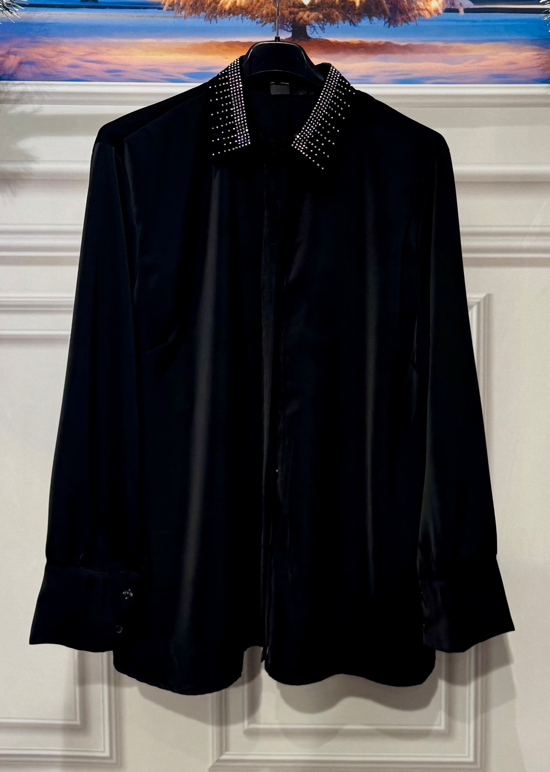 Camicia oversize con collo strass vestibilità 130cm di giro seno