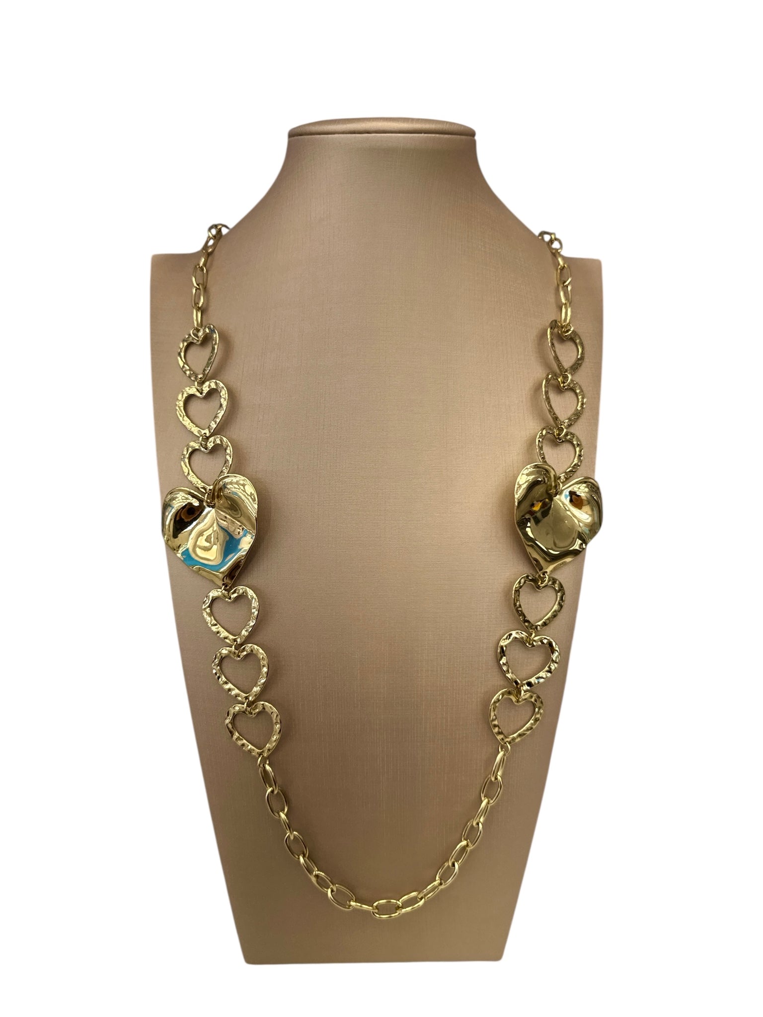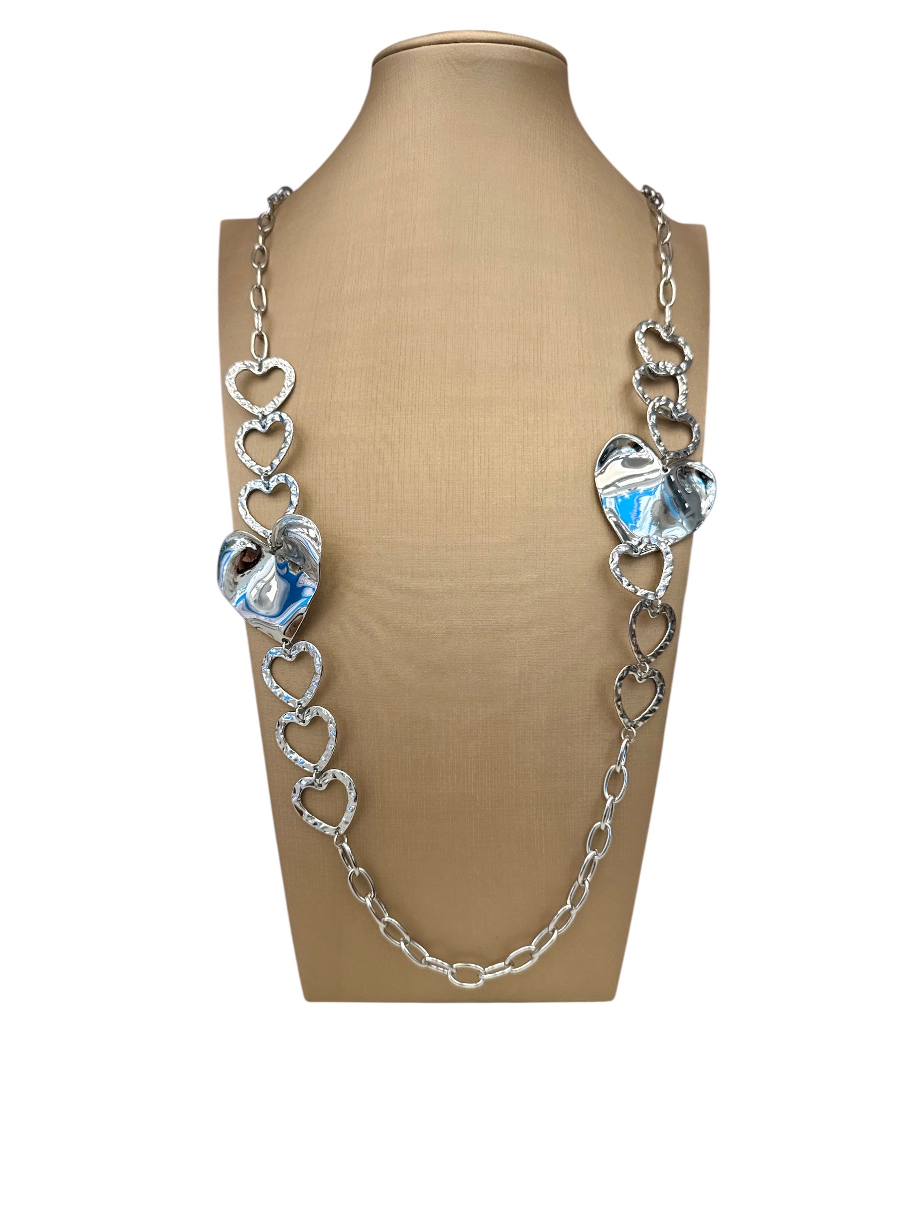 Collana con catena e cuori in varie dimensioni effetto martellato