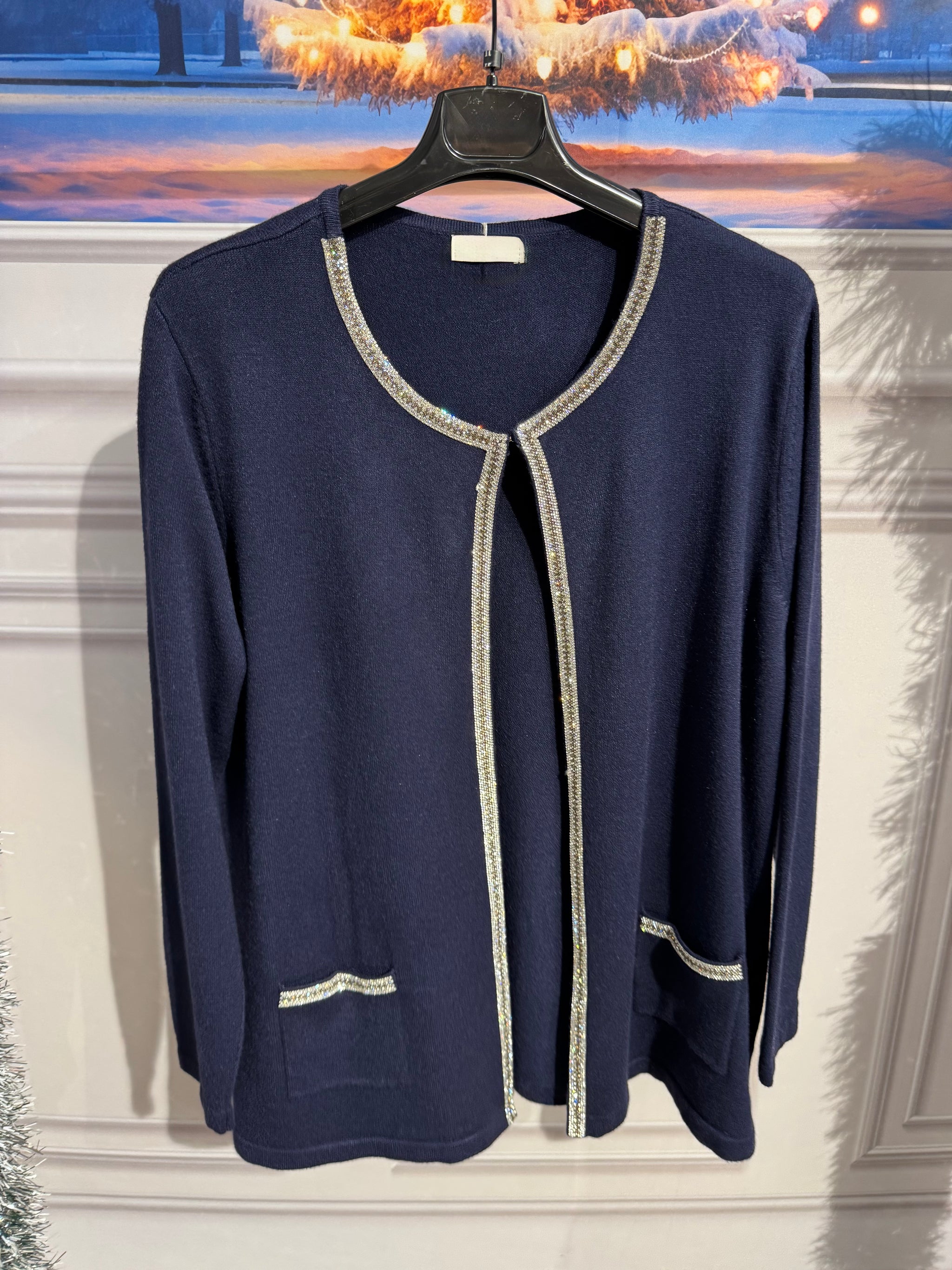 Cardigan aperto in lana pettinata con orlo strassato e tasche vestibilità da 120cm a 159cm di giroseno