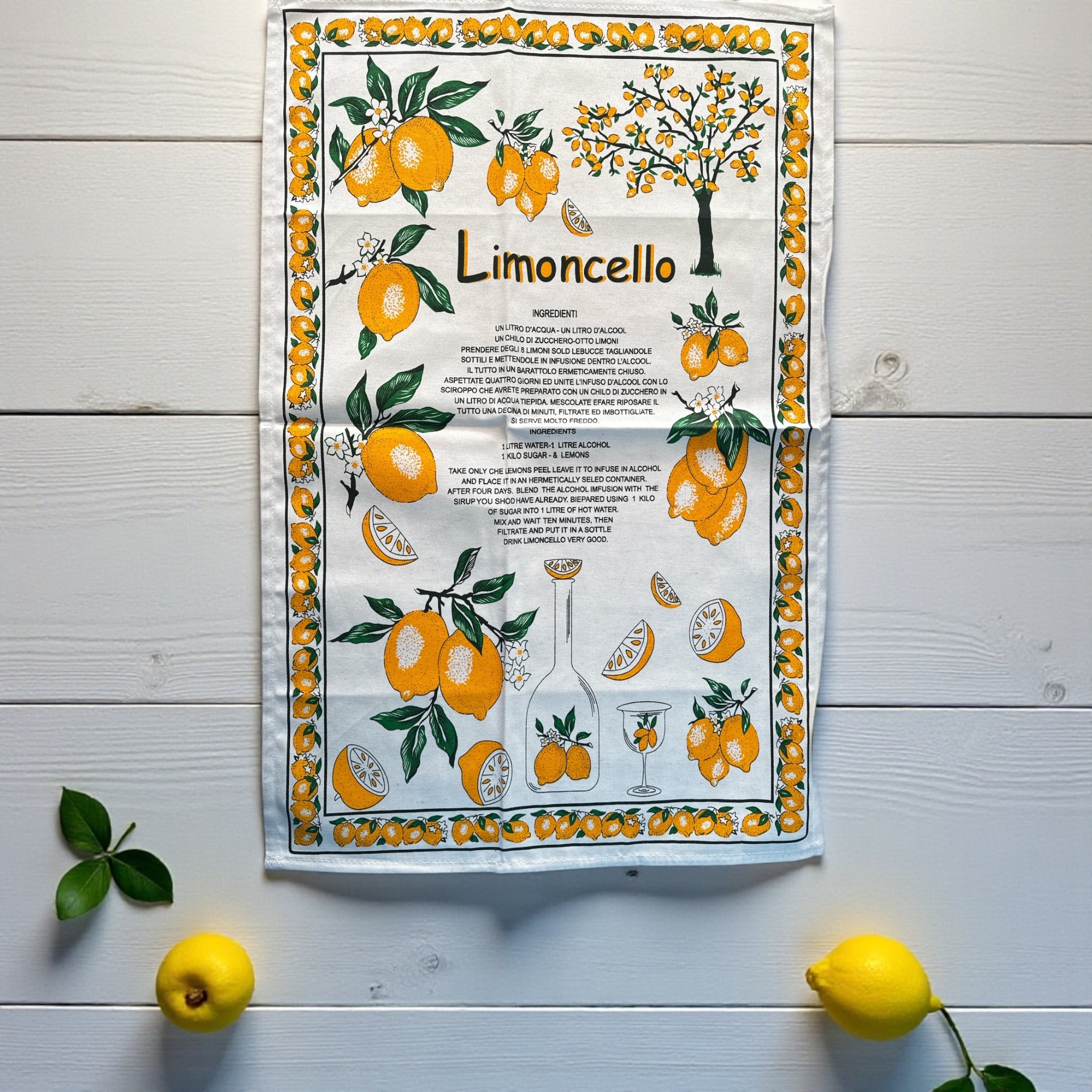 Strofinaccio in twill fantasia limoni e ricetta limoncello in italiano e inglese