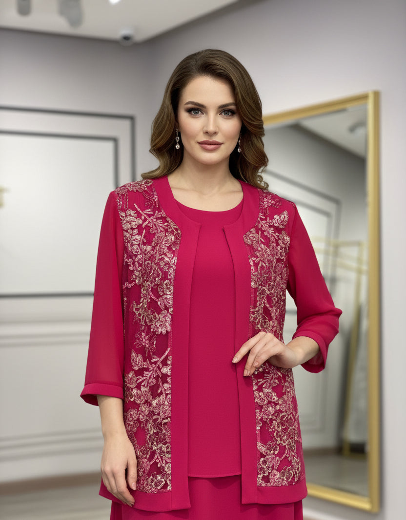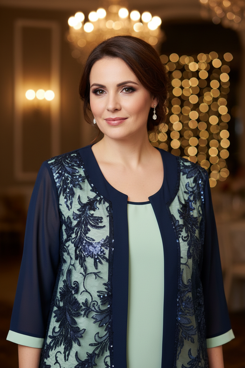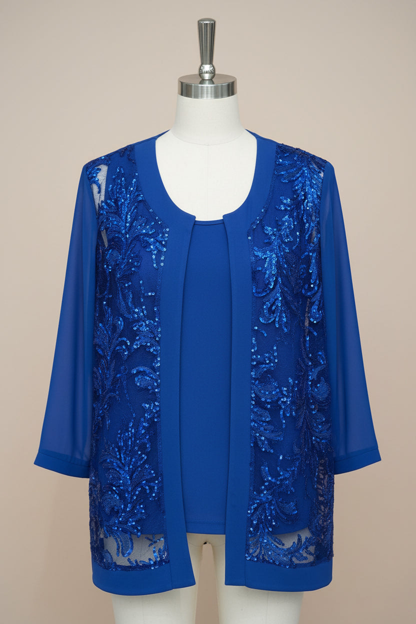 Set elegante di spolverino con canotta, sotto giacca tinrq unita ed elasticizzato, spolverino morbido con lato avanti in pizzo e paillettes