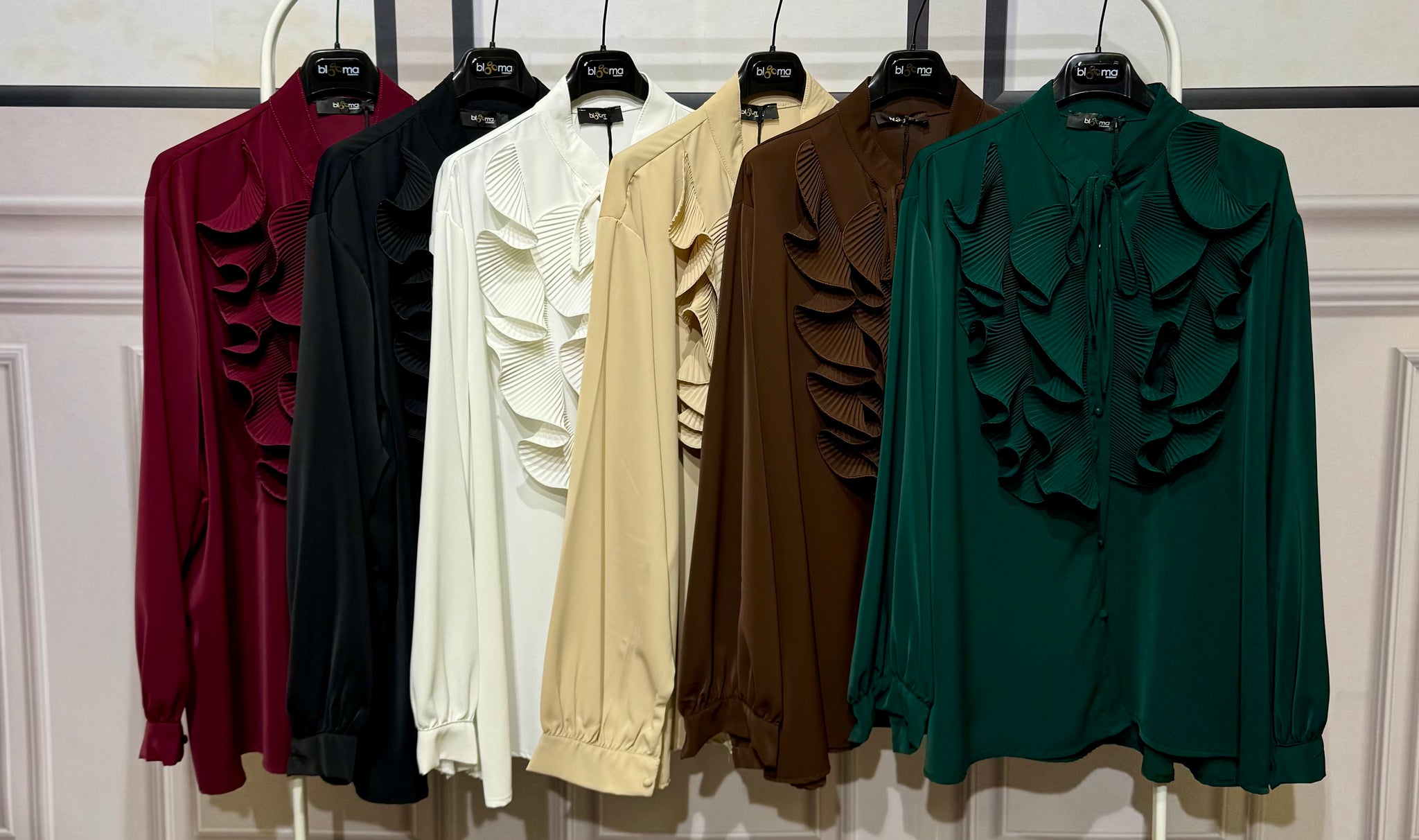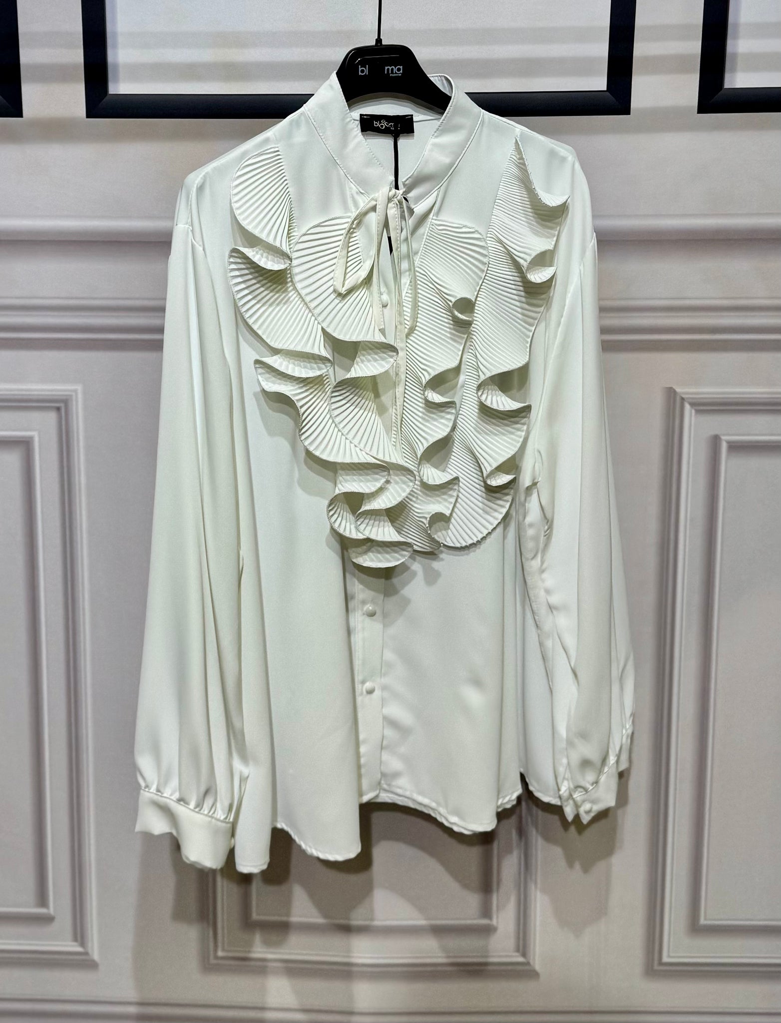 Camicia con volant sul davanti e laccetto sul collo vestibilità fino a 150cm di giro seno