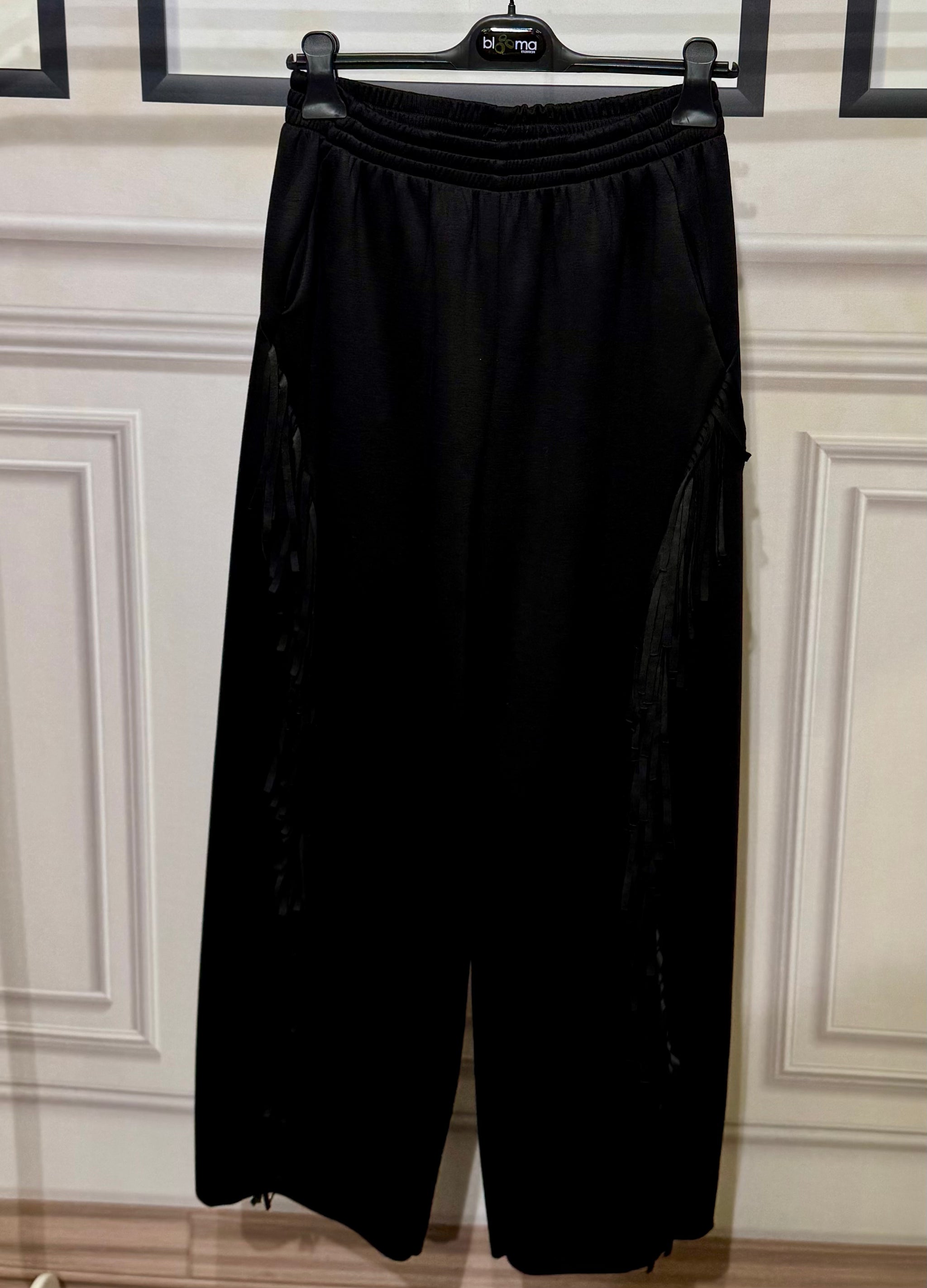 Pantaloni tessuto nuvola elastico in vita gamba larga con frange vestibilità fino a 150cm di giro vita