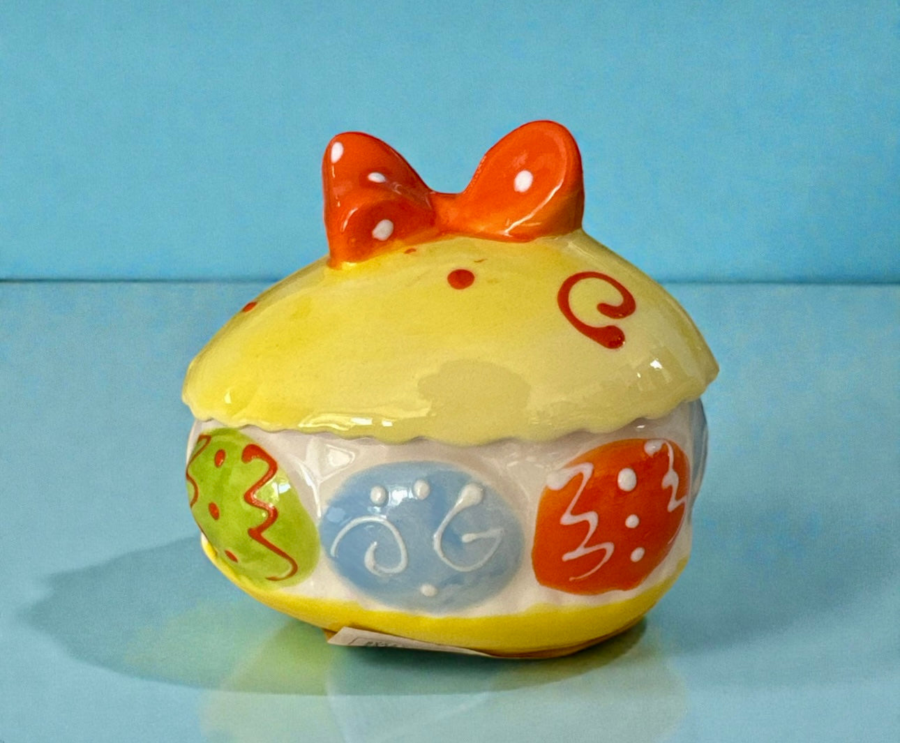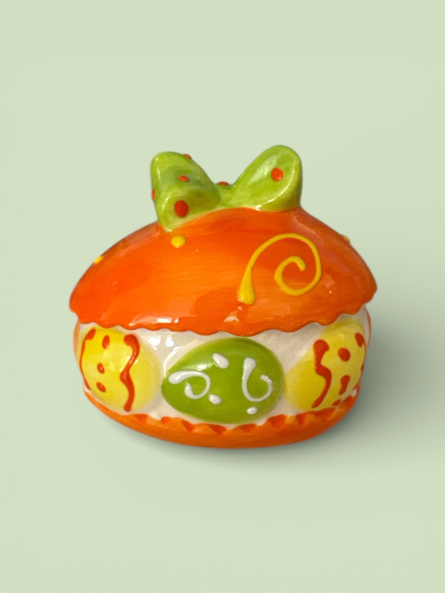 Ovetto contenitivo in ceramica multicolor, dal design allegro e decorativo. La superficie è arricchita da piccoli ovetti in rilievo, distribuiti armoniosamente su tutta la struttura, che creano un piacevole effetto tridimensionale e tattile. Le tonalità vivaci e variate donano luminosità all’oggetto, rendendolo perfetto come complemento d’arredo o come contenitore decorativo per piccoli oggetti o dolci. Ideale per arricchire l’ambiente con un tocco originale e festoso, soprattutto in contesti primaverili o pasqua