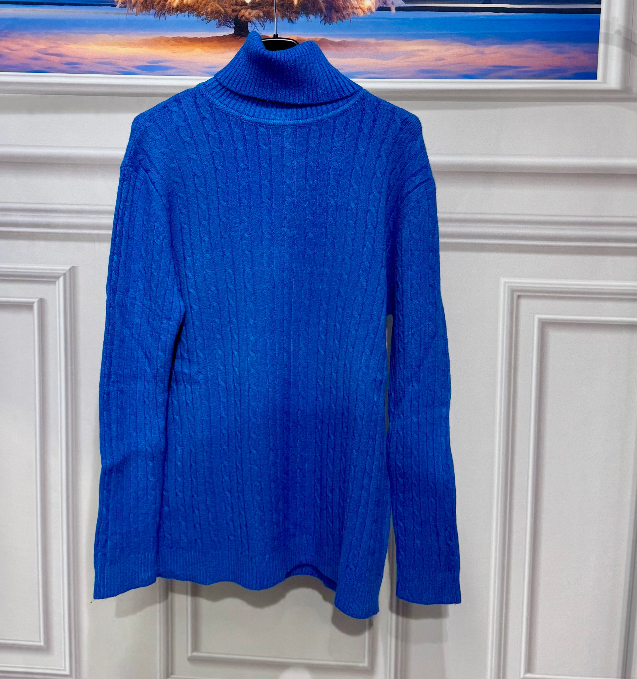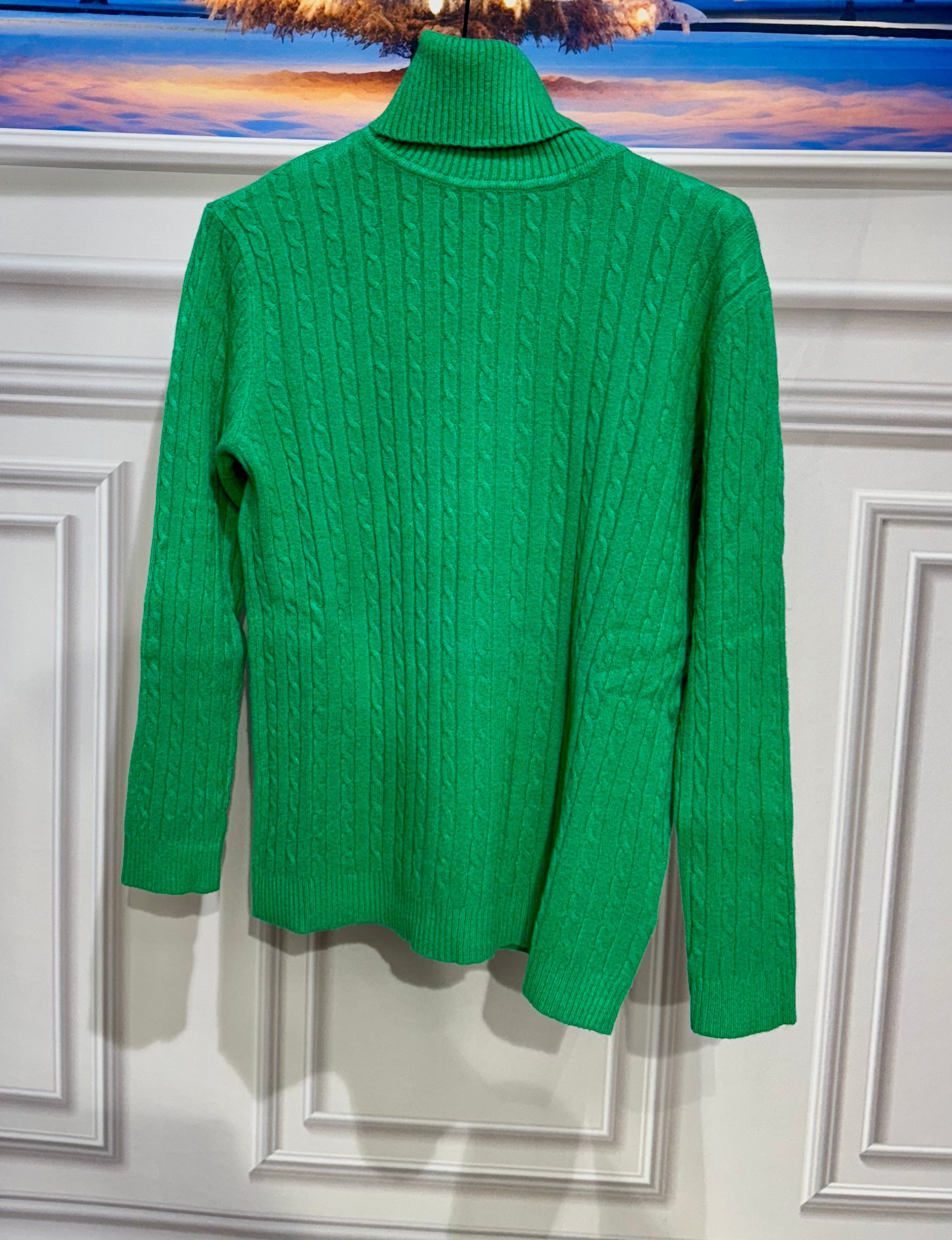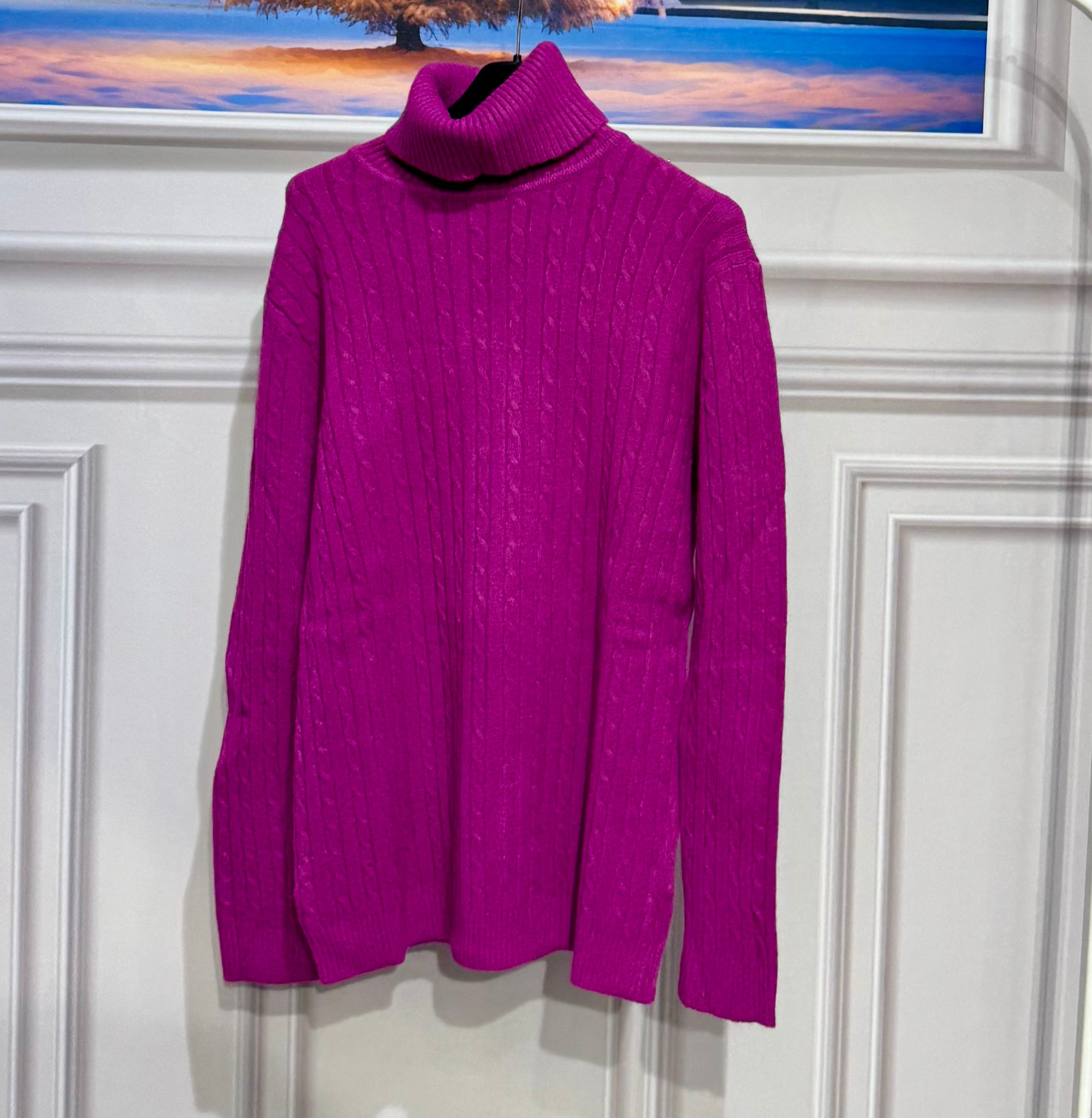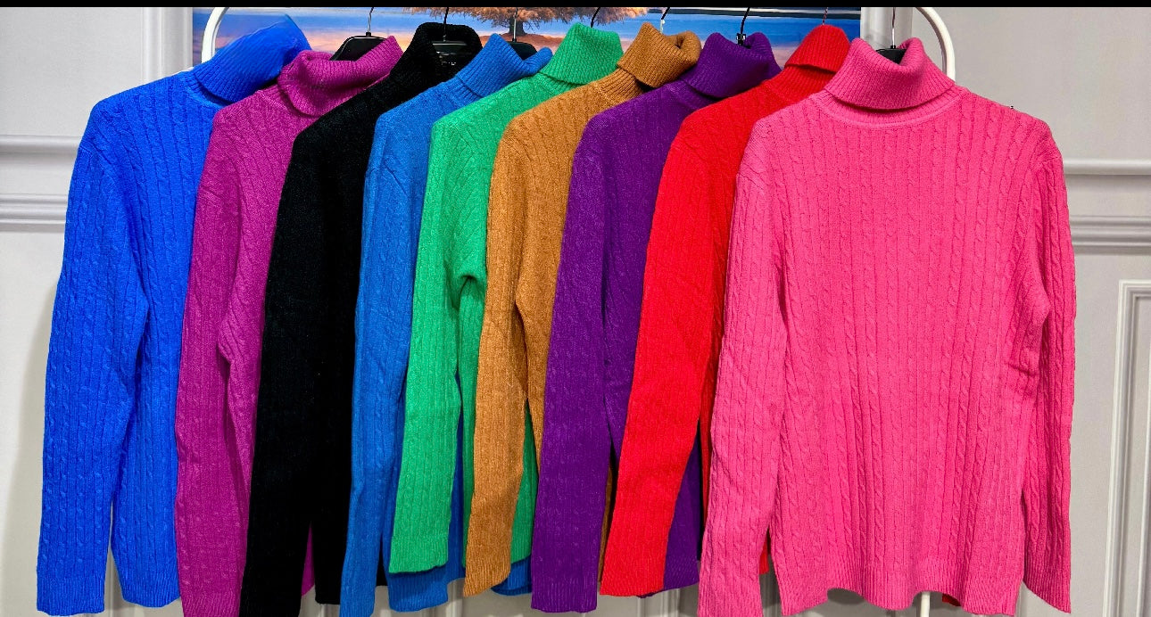 Maglioncino in lana corposa trama intrecciata con collo alto e risvoltabile vestibilitá da 112 a 150cm di giroseno