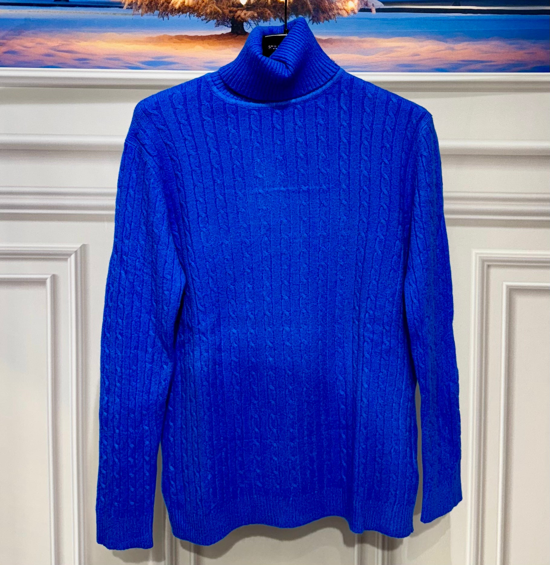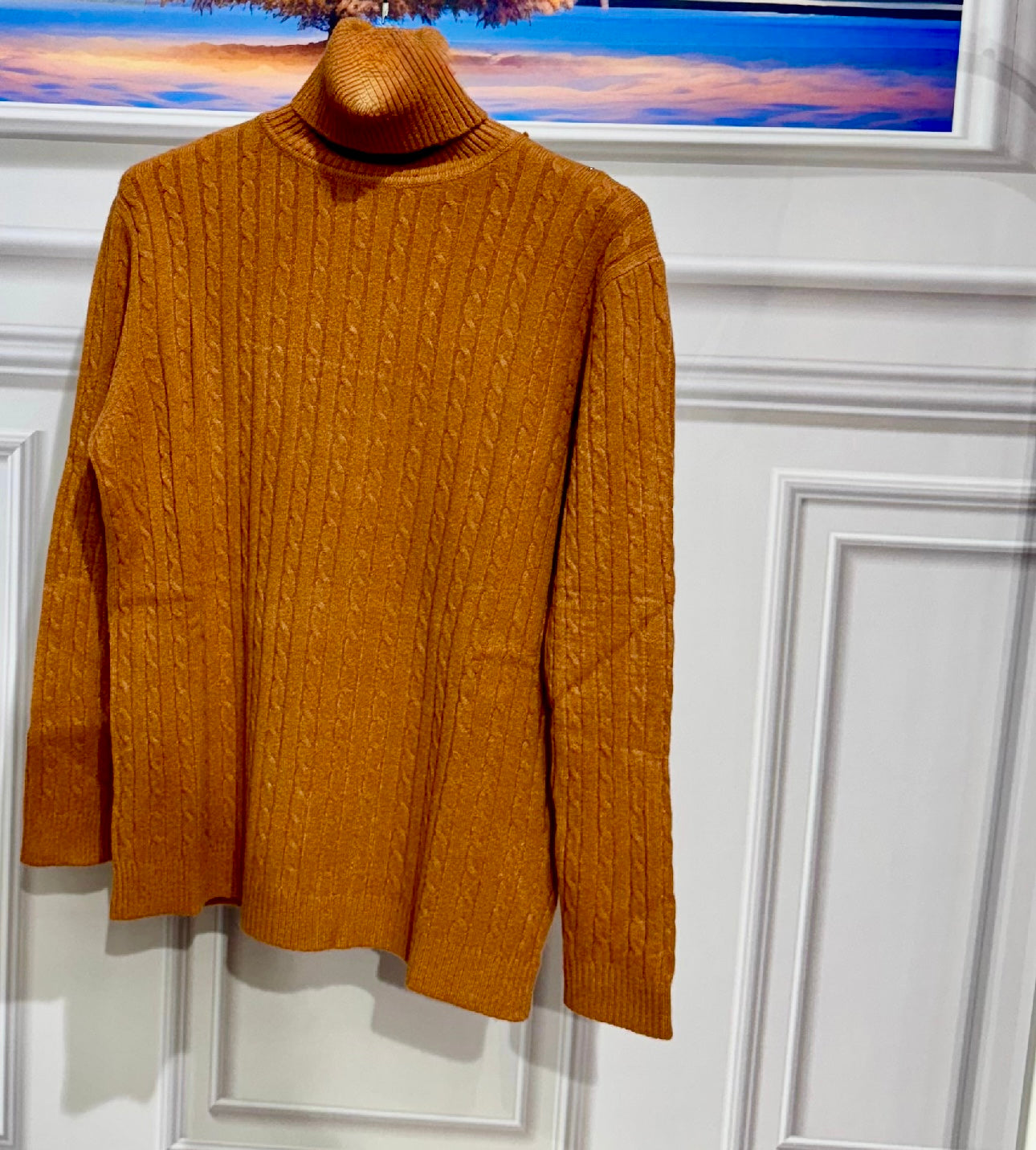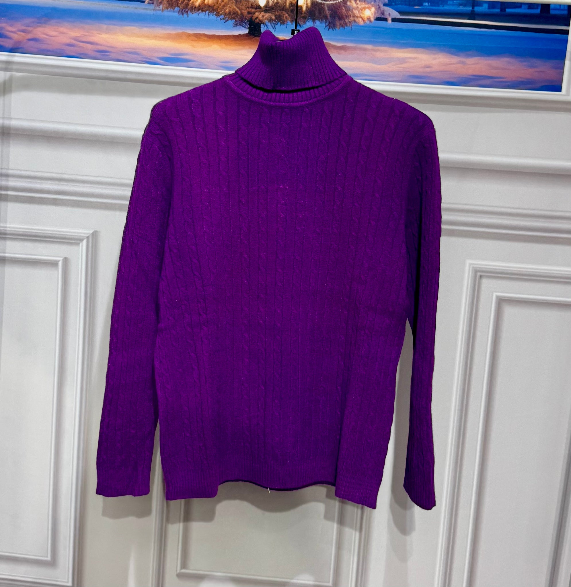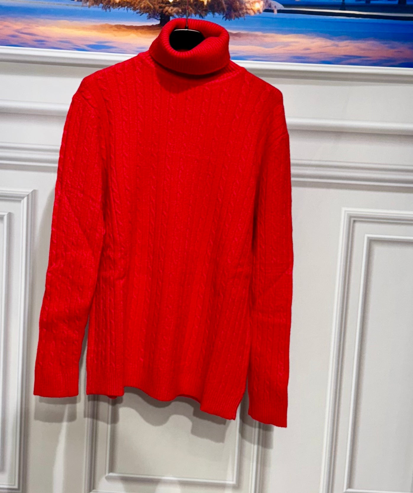 Maglioncino in lana corposa trama intrecciata con collo alto e risvoltabile vestibilitá da 112 a 150cm di giroseno