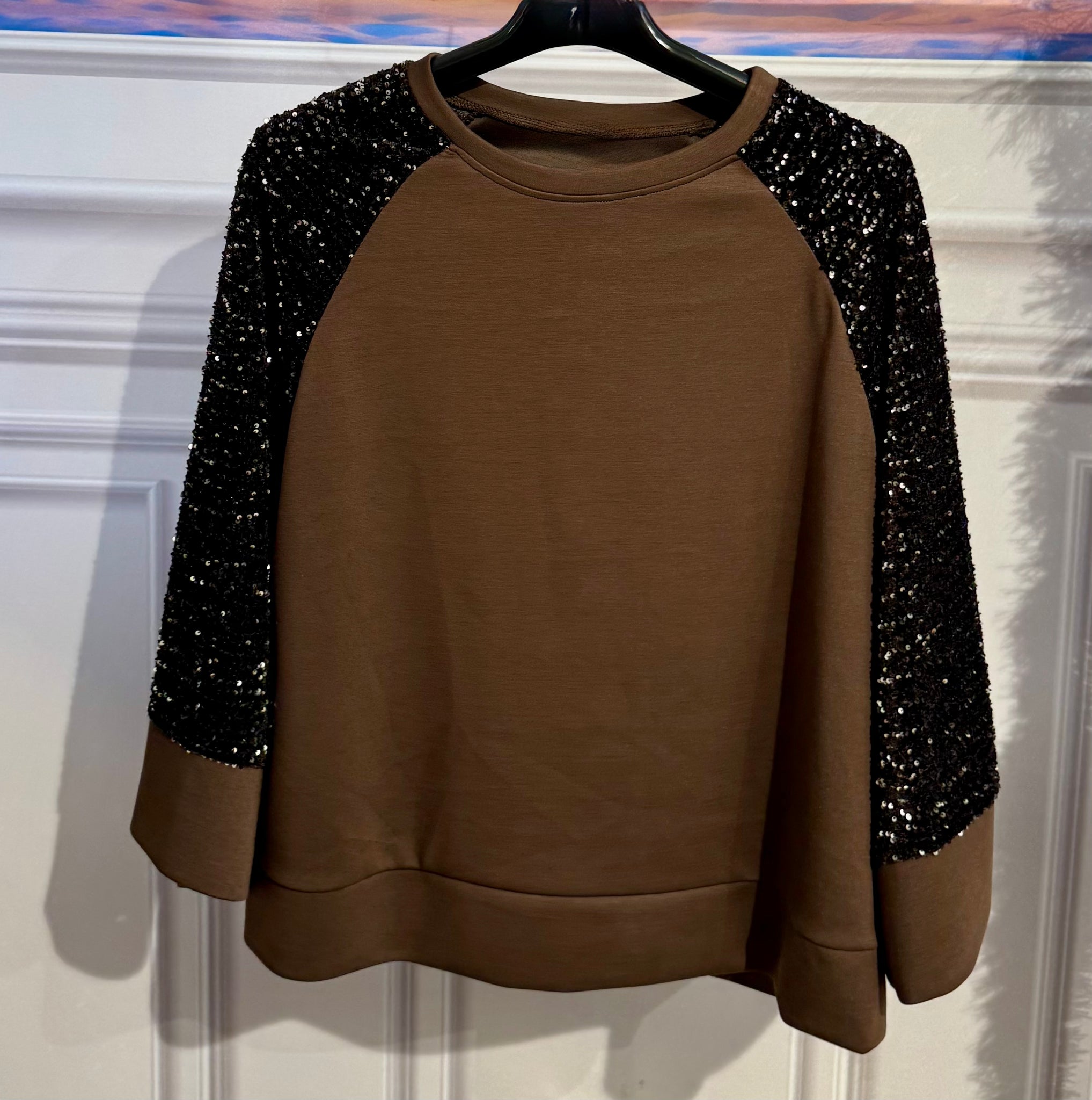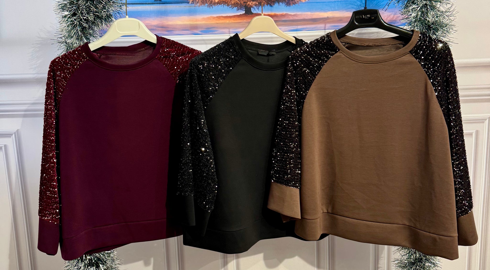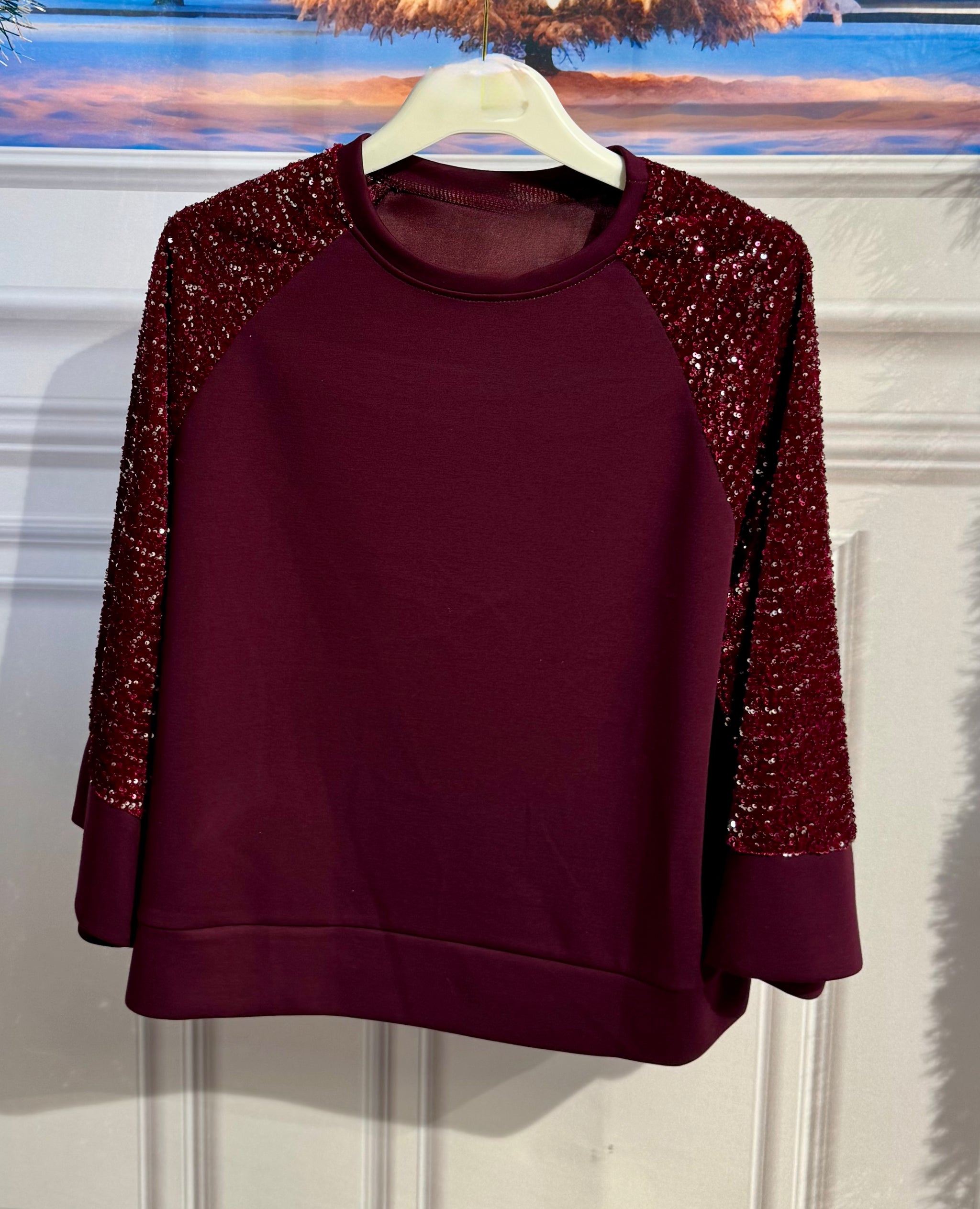 Felpa tessuto nuvola con dettaglio paillettes sul profilo