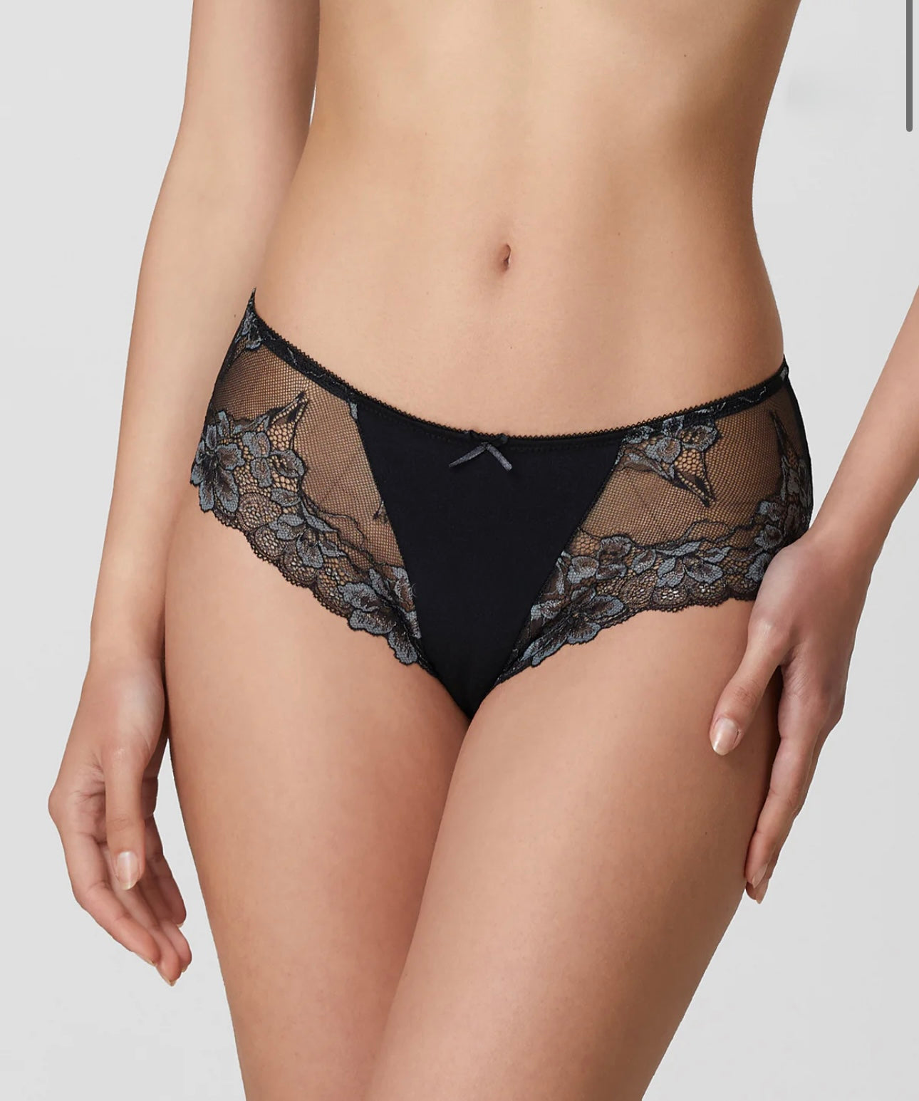 Slip midi in cotone elasticizzato, che coniuga comfort e raffinatezza in un design elegante e femminile. La parte anteriore in cotone liscio assicura una vestibilità delicata sulla pelle, mentre gli inserti in pizzo floreale trasparente sui fianchi, con un raffinato gioco di sgambatura geometrica, aggiungono un tocco di sensualità e leggerezza. Il piccolo fiocchetto centrale completa il look con una nota romantica, rendendo questo capo ideale per chi cerca un intimo sofisticato senza rinunciare al comfort quotidiano.