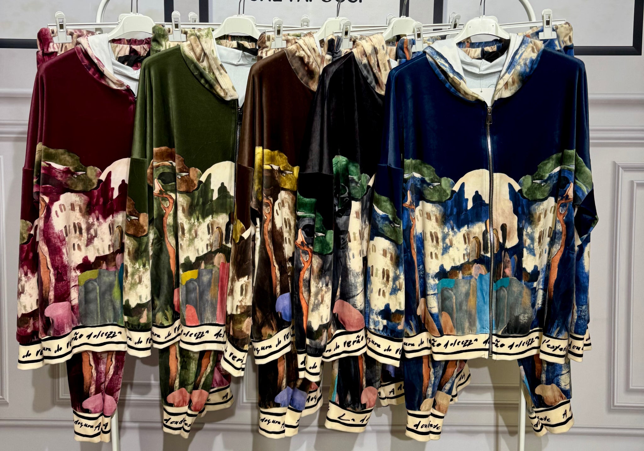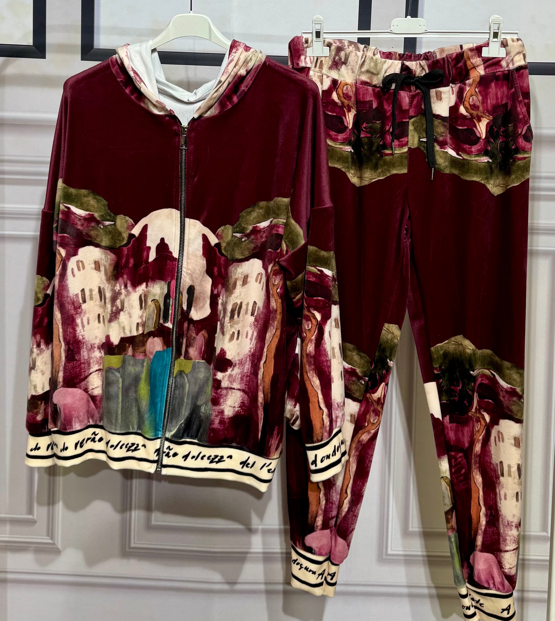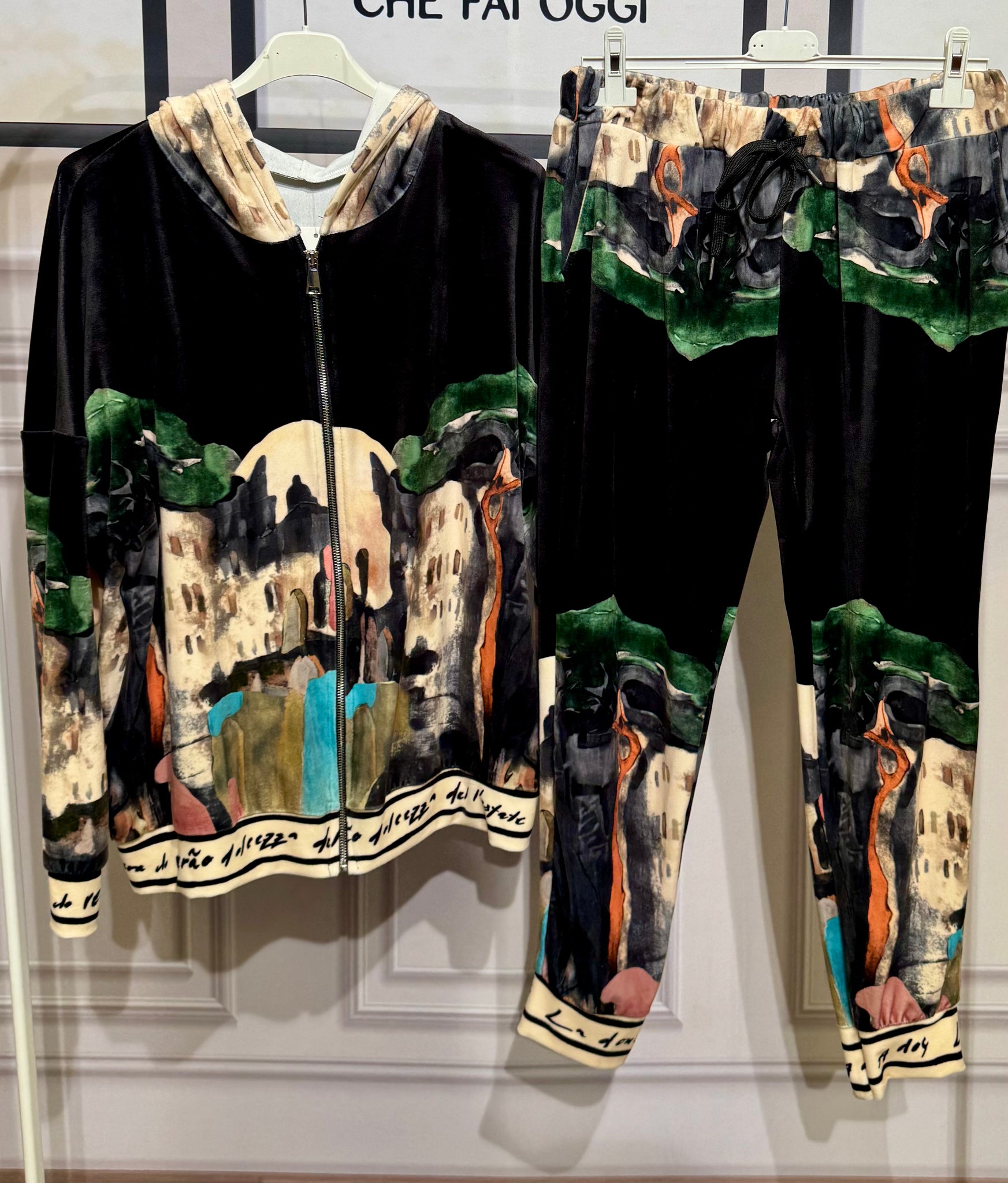 Tuta in ciniglia con felpa con zip e cappuccio e pantaloni con elastico in vita con coulisse