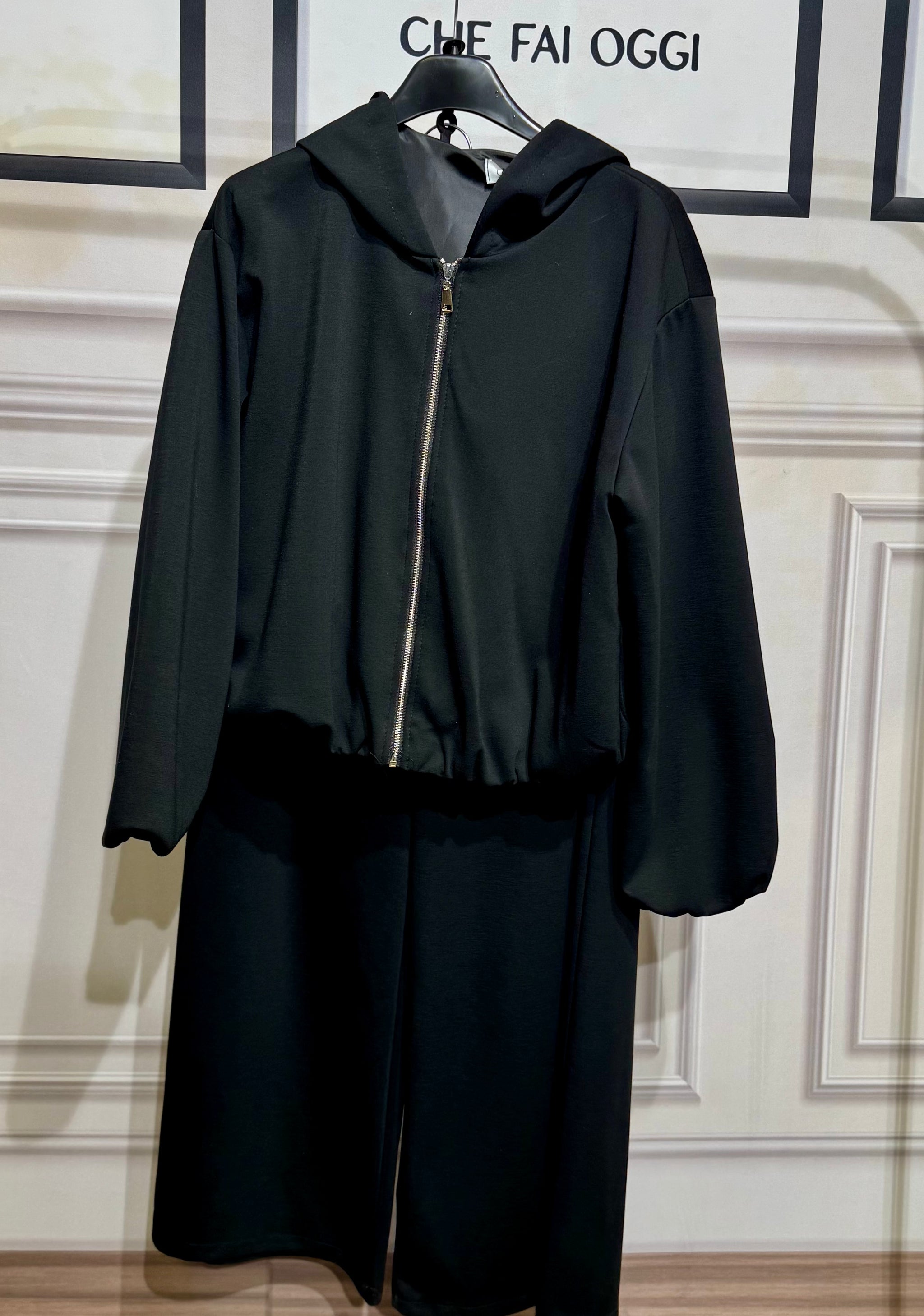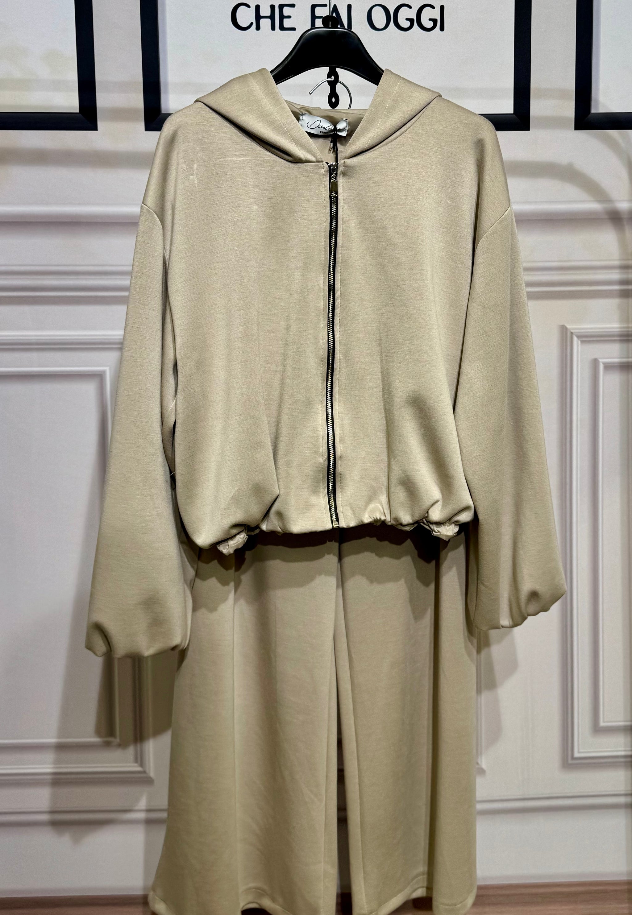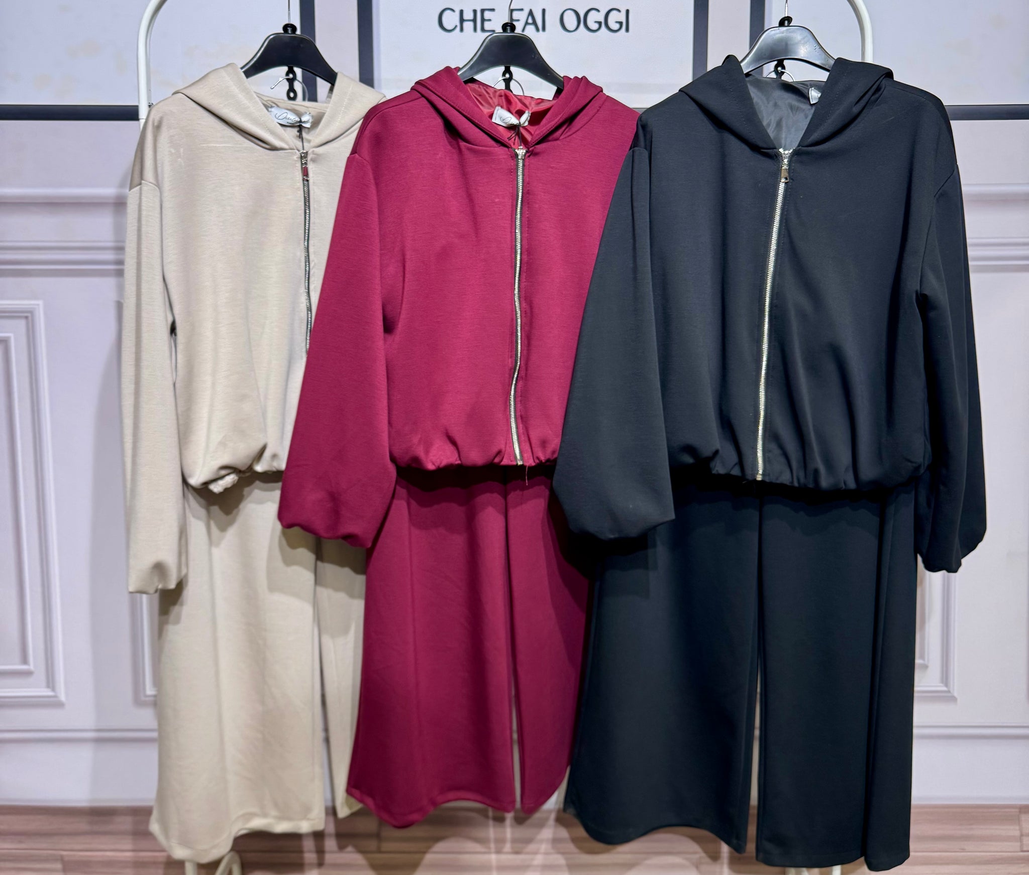 felpa con cappuccio foderata con molla sui polsini e sulla fine