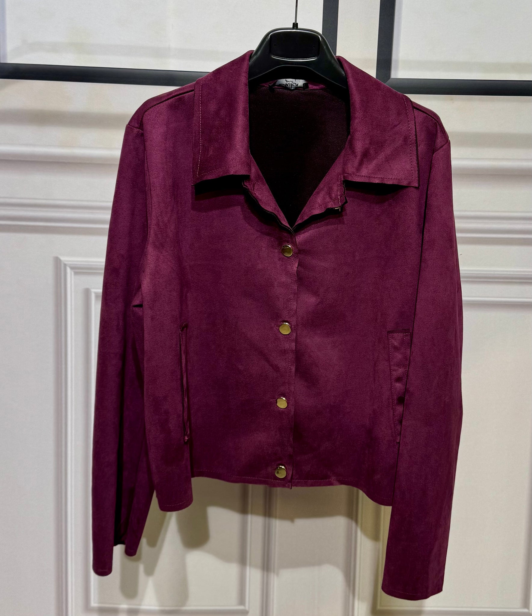 Giacca in eco camoscio collo camicia con bottoni oro vestibilità fino a 120cm di giroseno