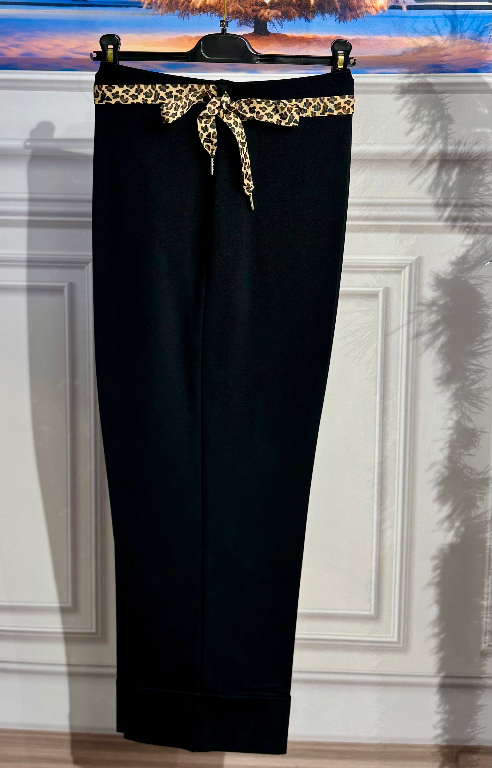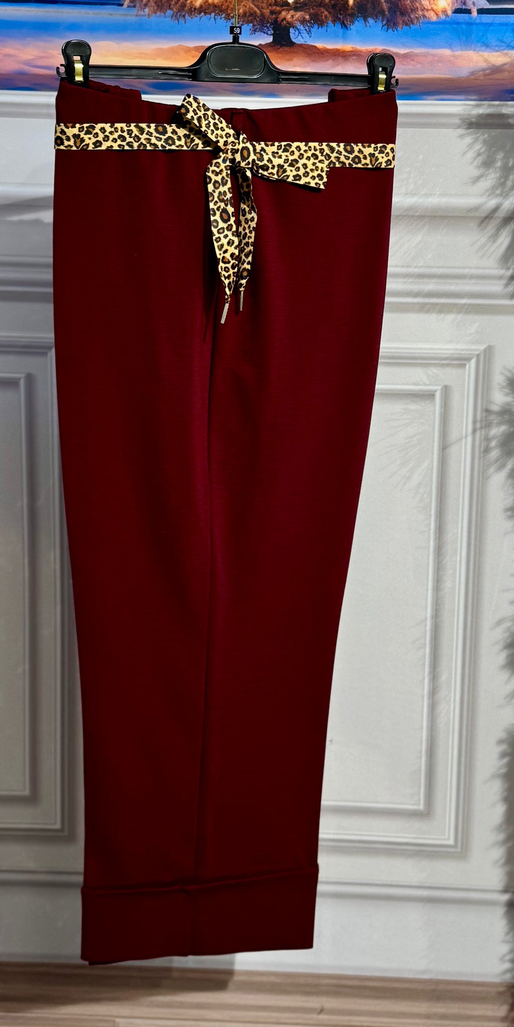 Pantaloni cosciasecca in punto milano elasticizzati elastico in vita con piegone e cinturino leopardato