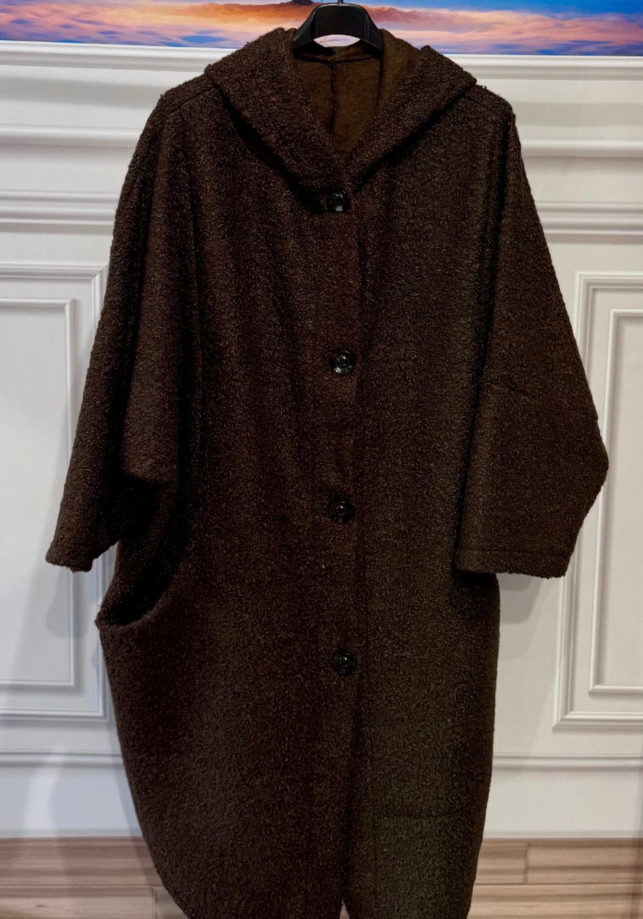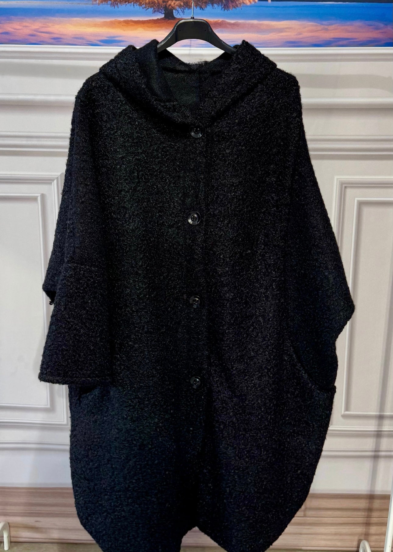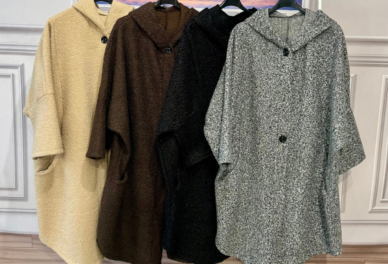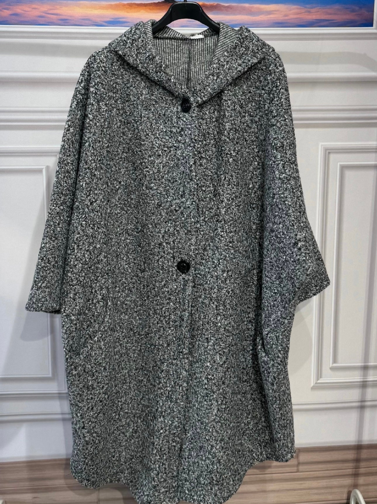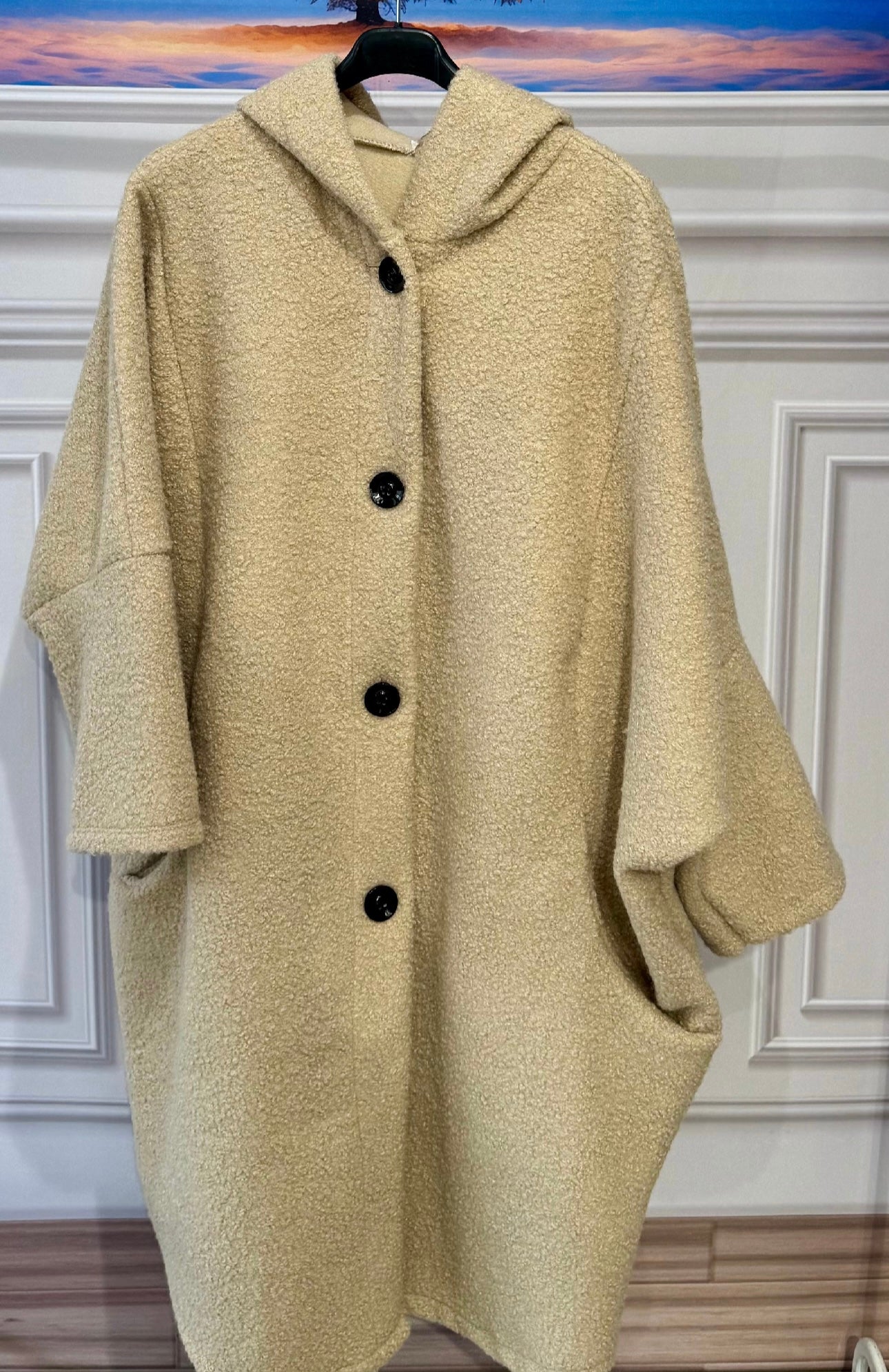 Cappottino in bouclé oversize con tasche e cappuccio vestibilità 2m di giroseno