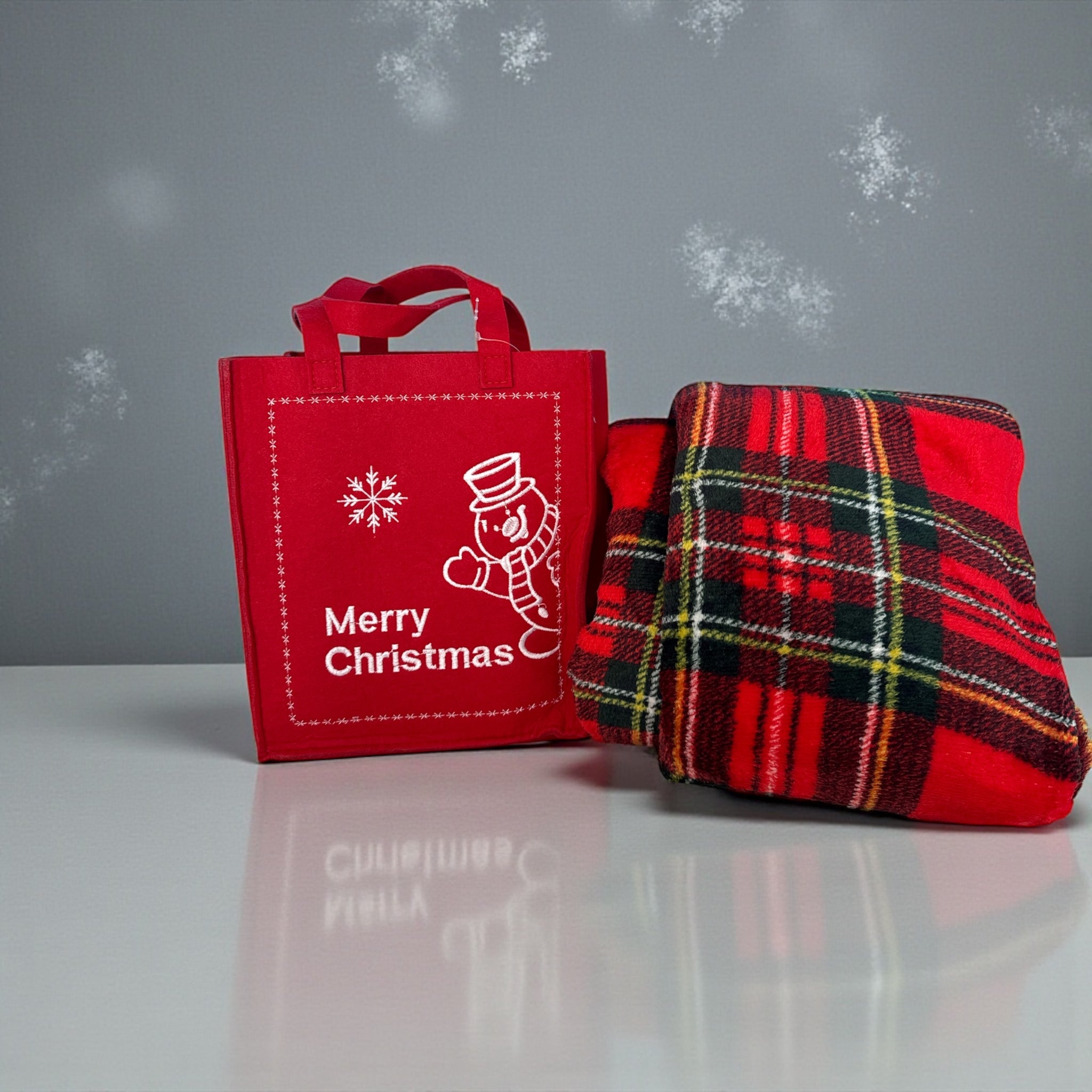 Borsettina con fantasia natalizia e plaid matrimoniale fantasia scozzese in morbido coral
