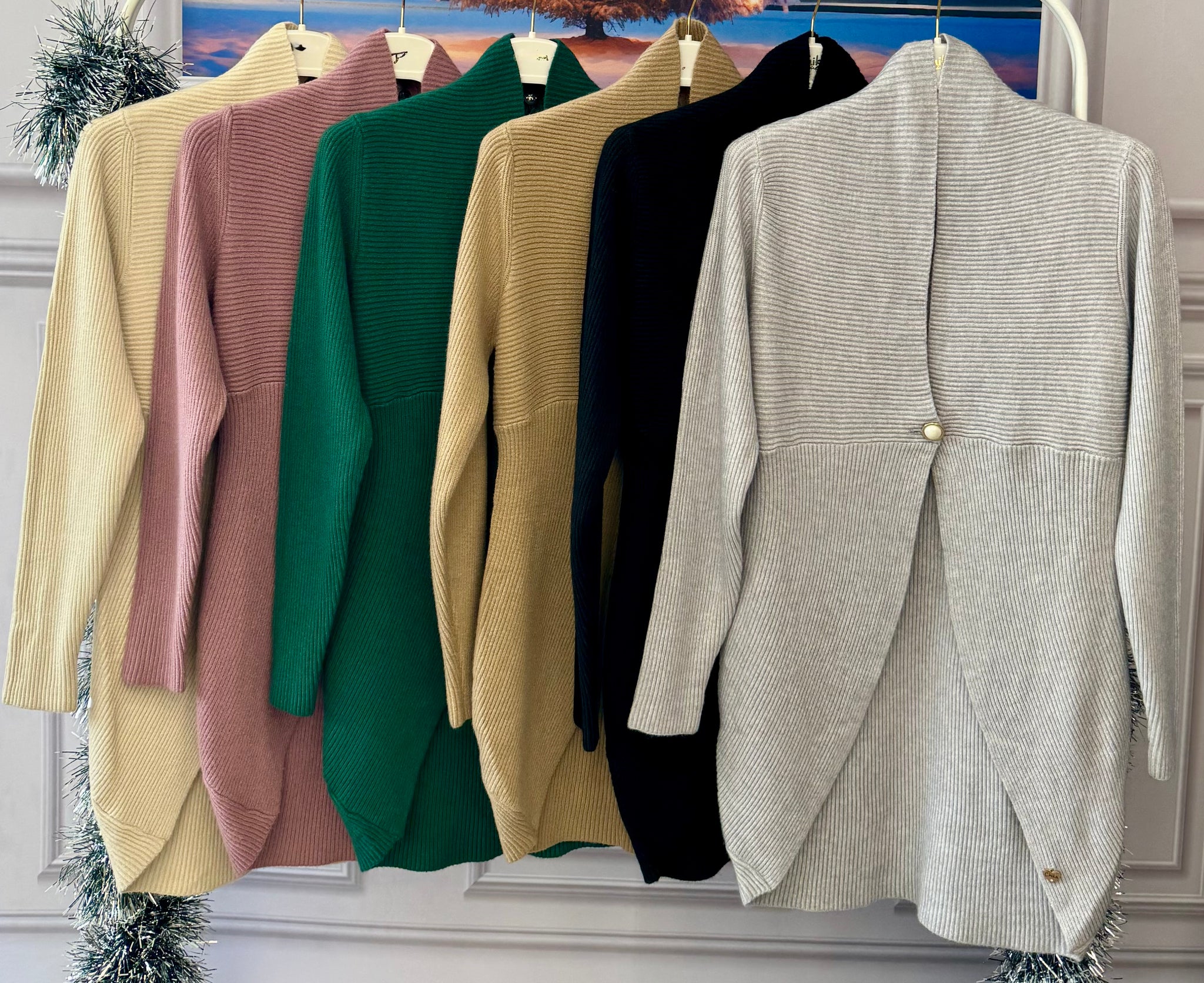 Cardigan in lana a costine con bottone gioiello e ricambio bottone