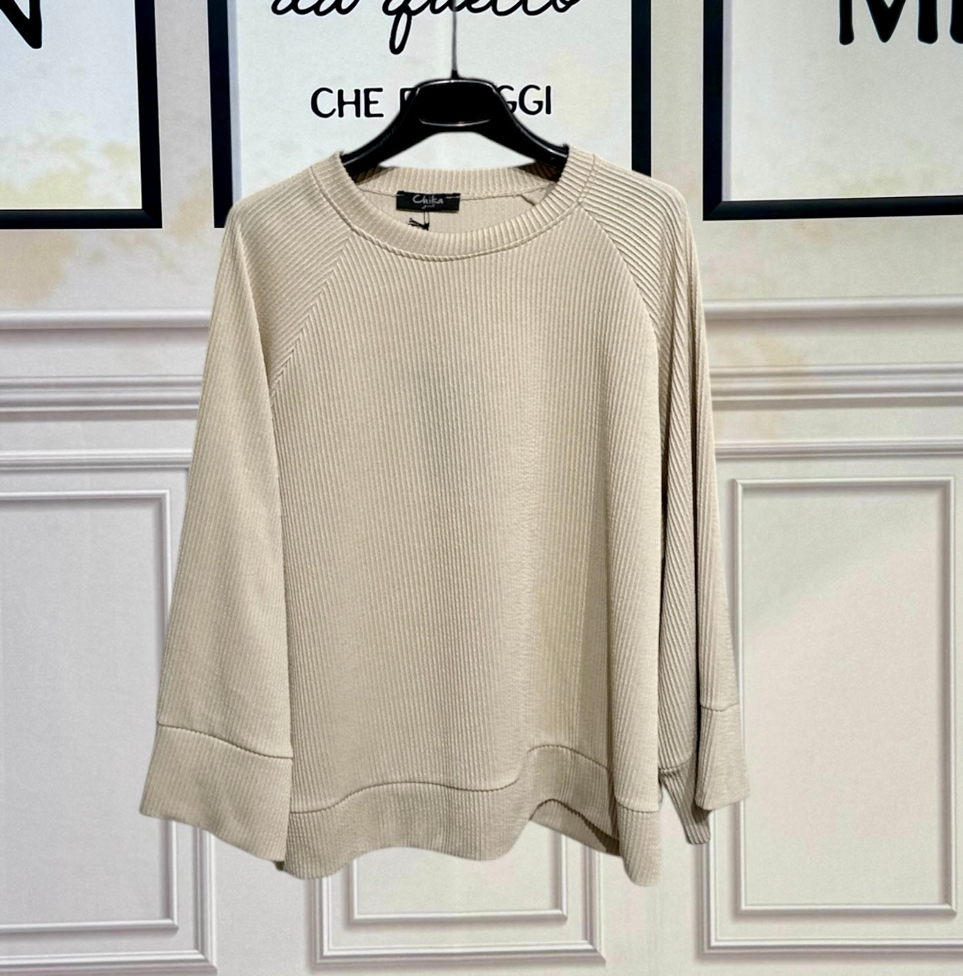 Felpa realizzata in morbido tessuto elasticizzato, confortevole e piacevole al tatto. La particolare trama a righe a rilievo dona movimento e carattere al capo, creando un raffinato gioco di texture che valorizza anche i look più essenziali. La vestibilità è comoda e avvolgente, ideale per accompagnare i movimenti con naturalezza durante tutta la giornata. Perfetta da abbinare a jeans o pantaloni sportivi per uno stile casual contemporaneo, senza rinunciare a un tocco di ricercatezza. Vestibilità da 120cm a 160cm di giroseno