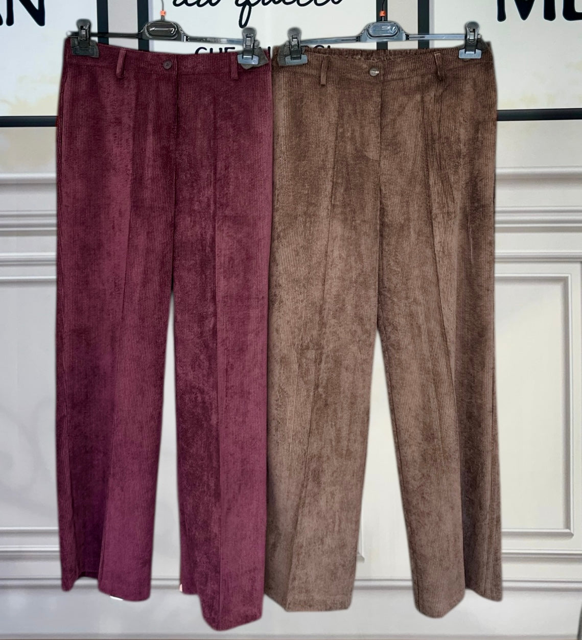 Eleganza e comfort si incontrano in questi pantaloni in velluto millerighe, morbidi al tatto e dalla texture raffinata. La gamba larga valorizza ogni silhouette, garantendo libertà di movimento e uno stile fluido.