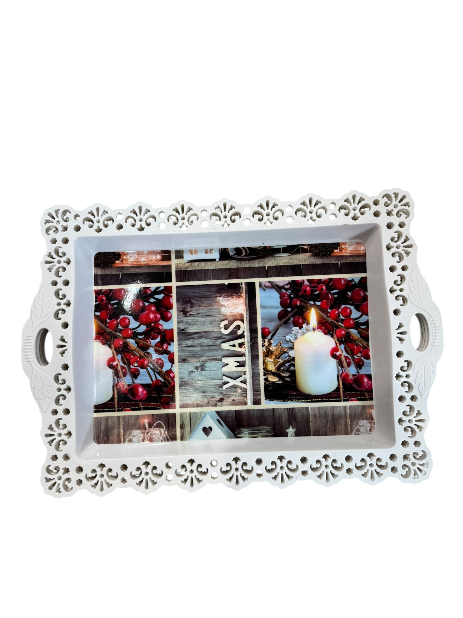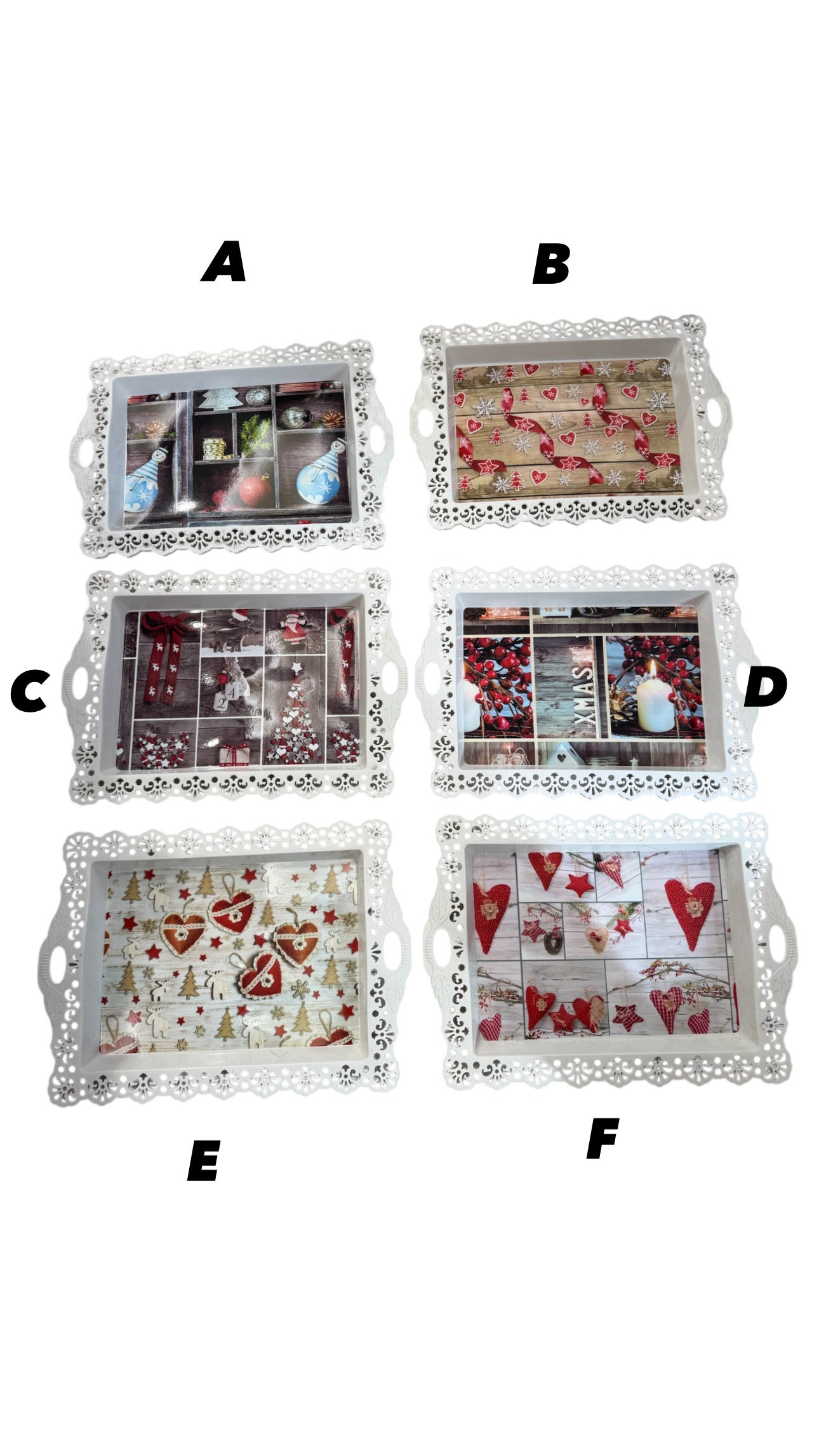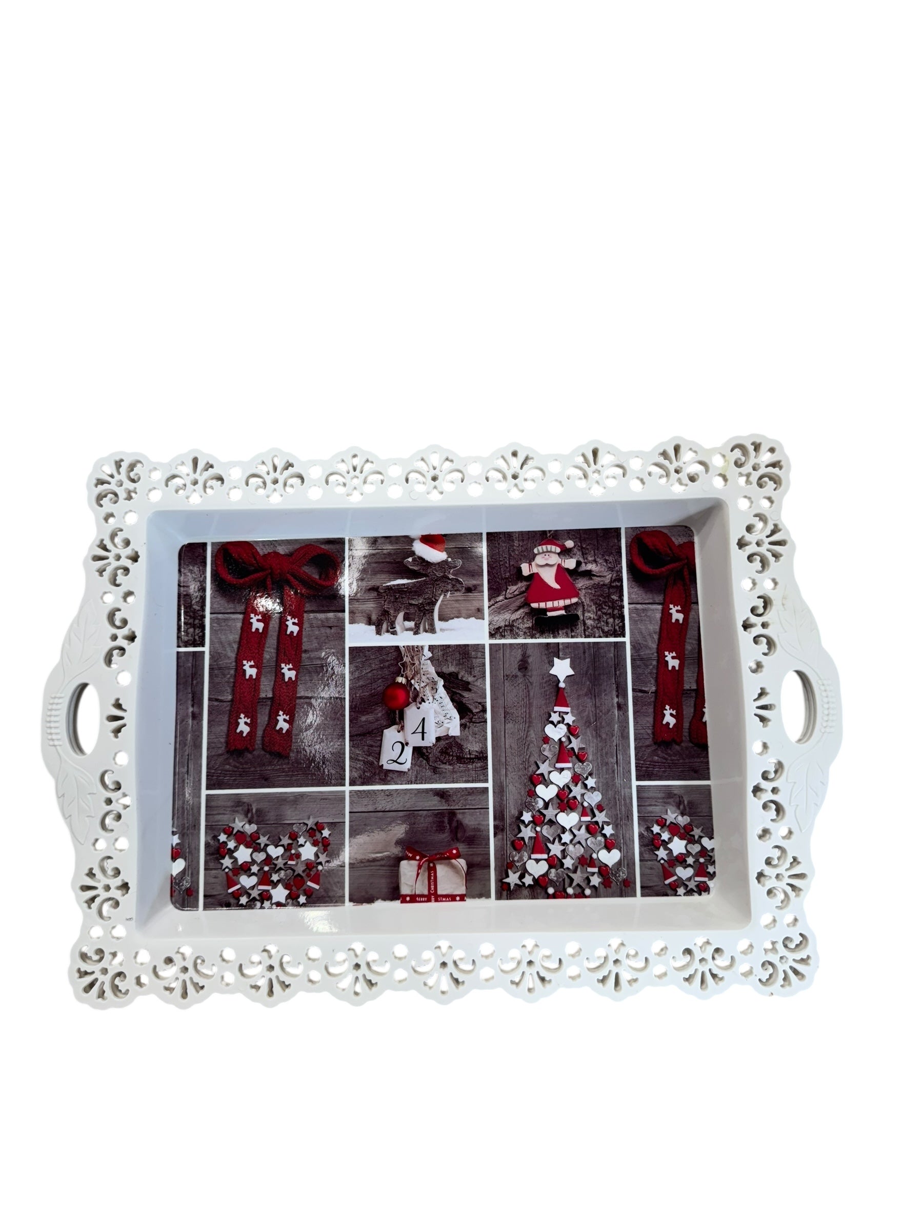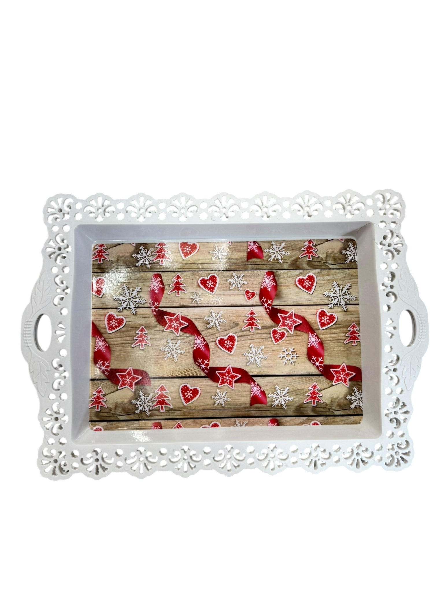 Vassoio natalizio in varie fantasie e forme, con bordo bianco e manici