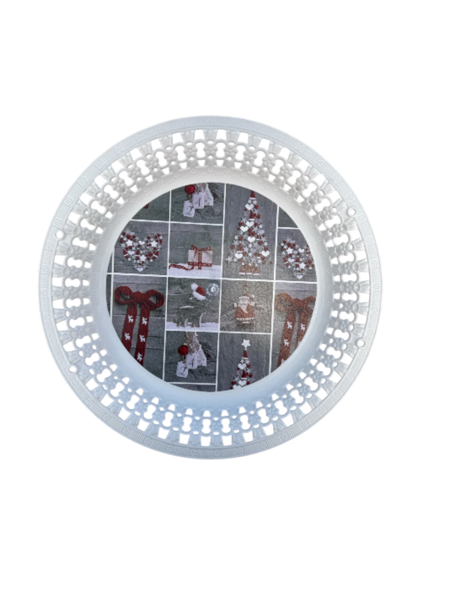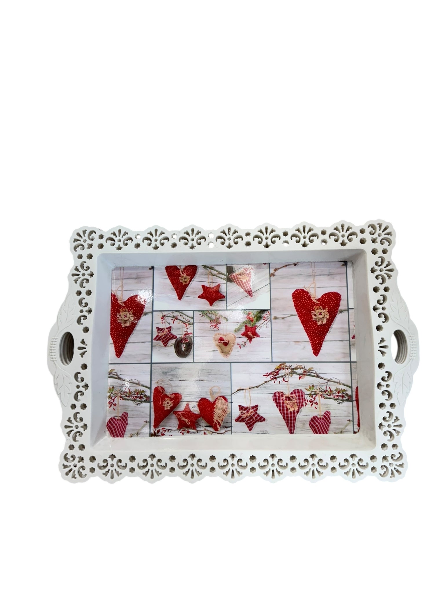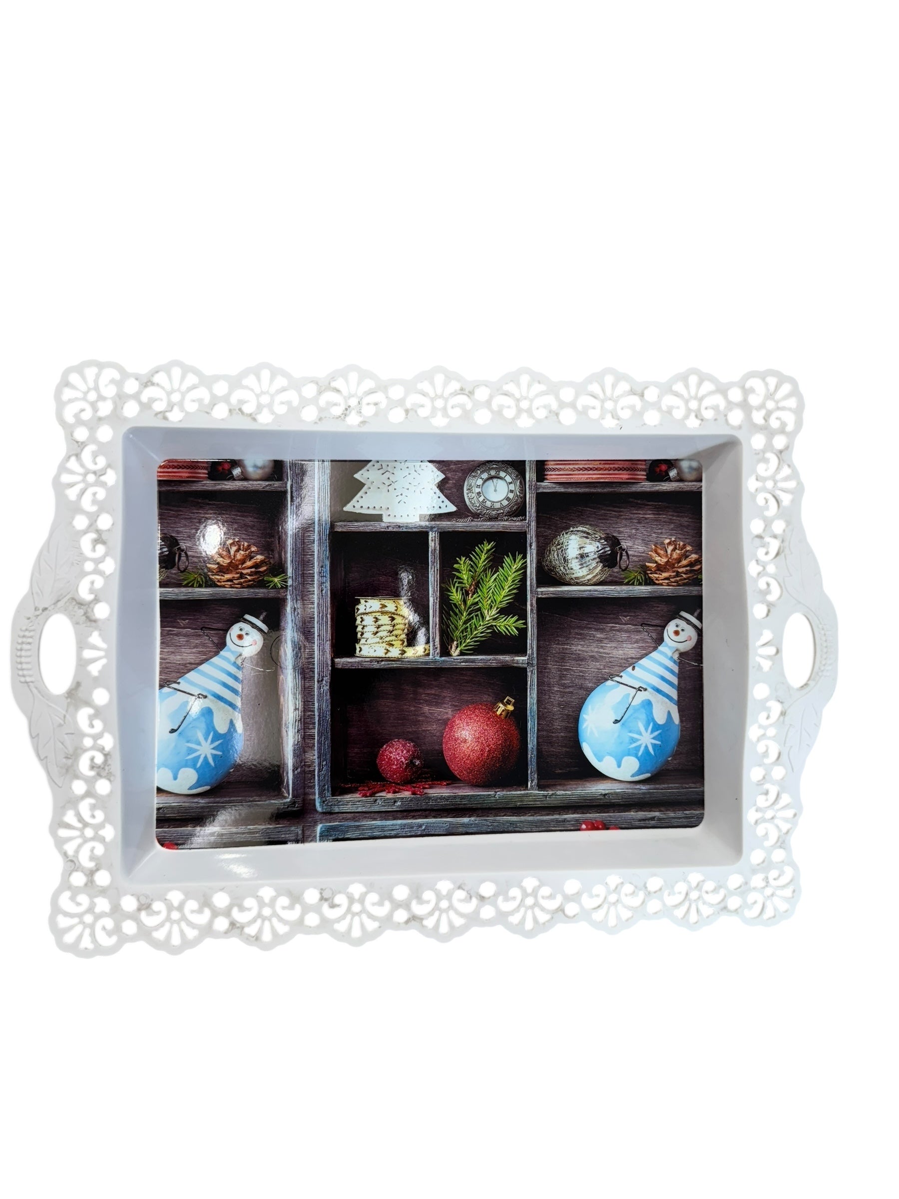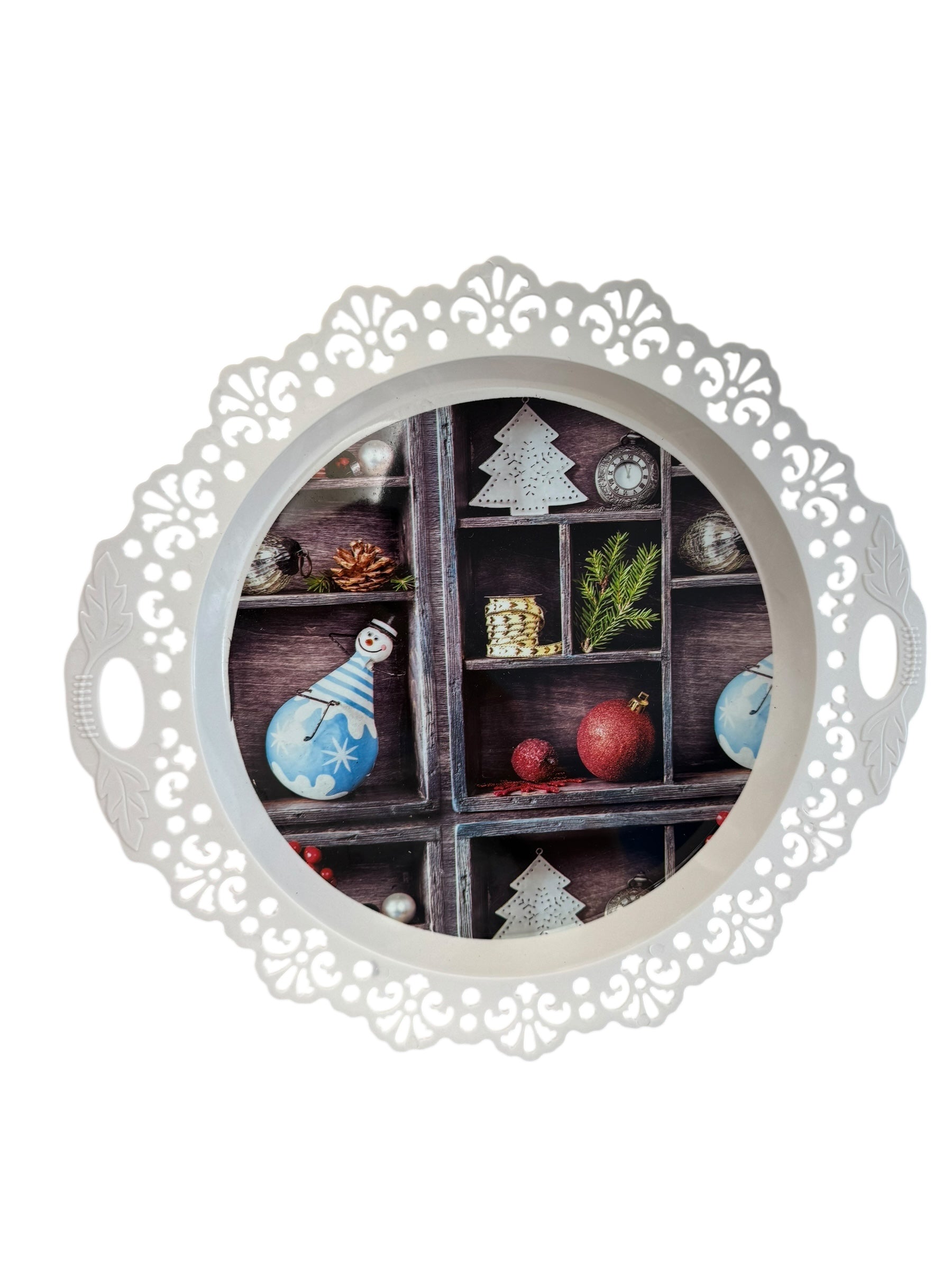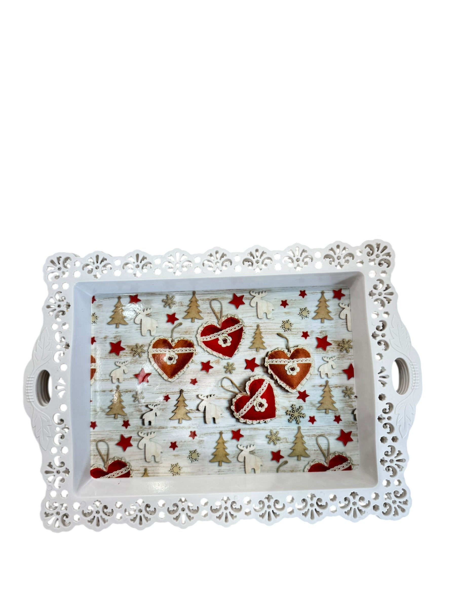 Vassoio natalizio in varie fantasie e forme, con bordo bianco e manici
